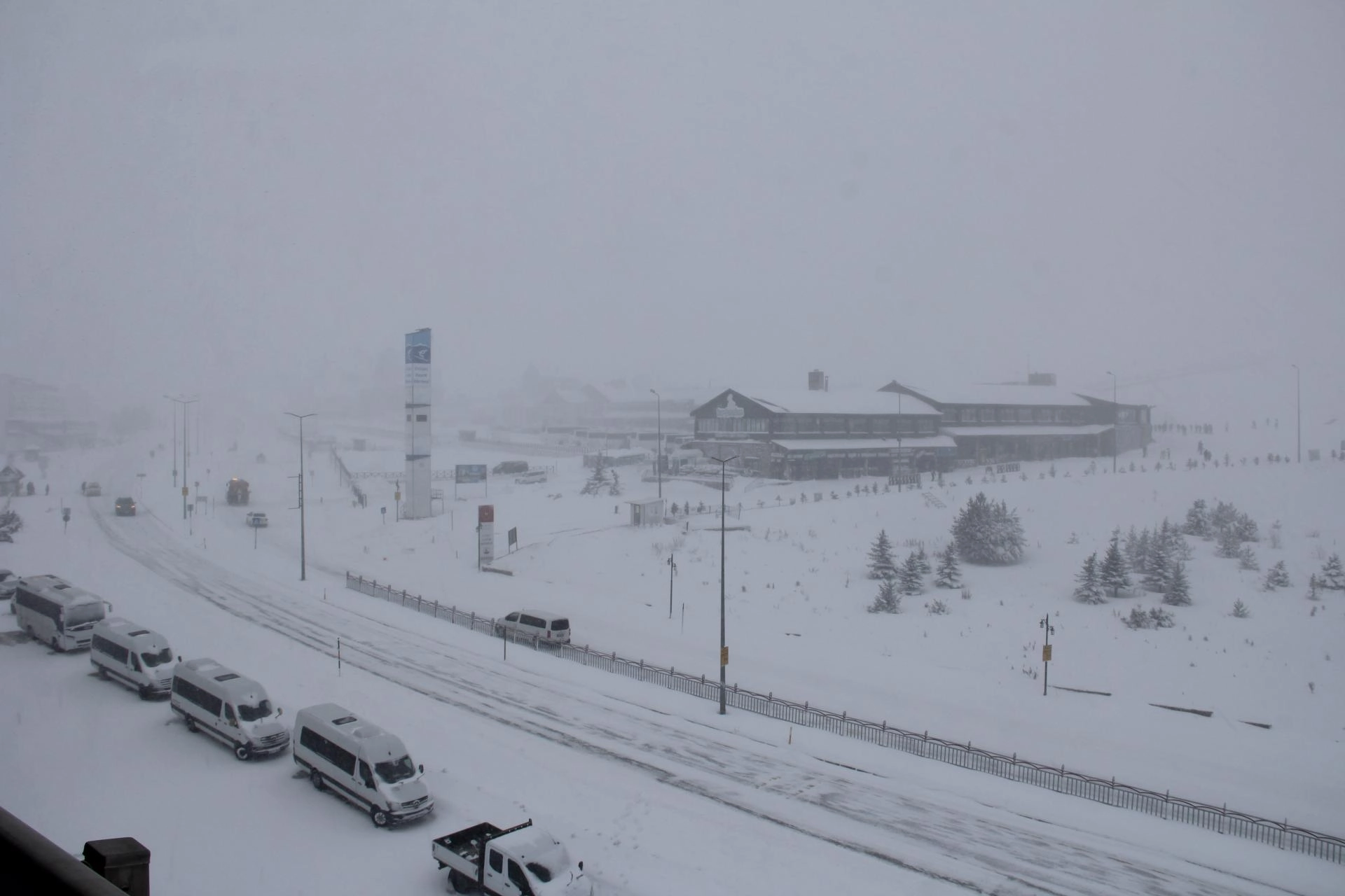 Kayak merkezinde tesislerin bulunduğu 2 bin 200 rakımdaki Tekir bölgesi, Hacılar Kapı ve Develi Kapı'da gece başlayan kar yağışı devam ediyor.