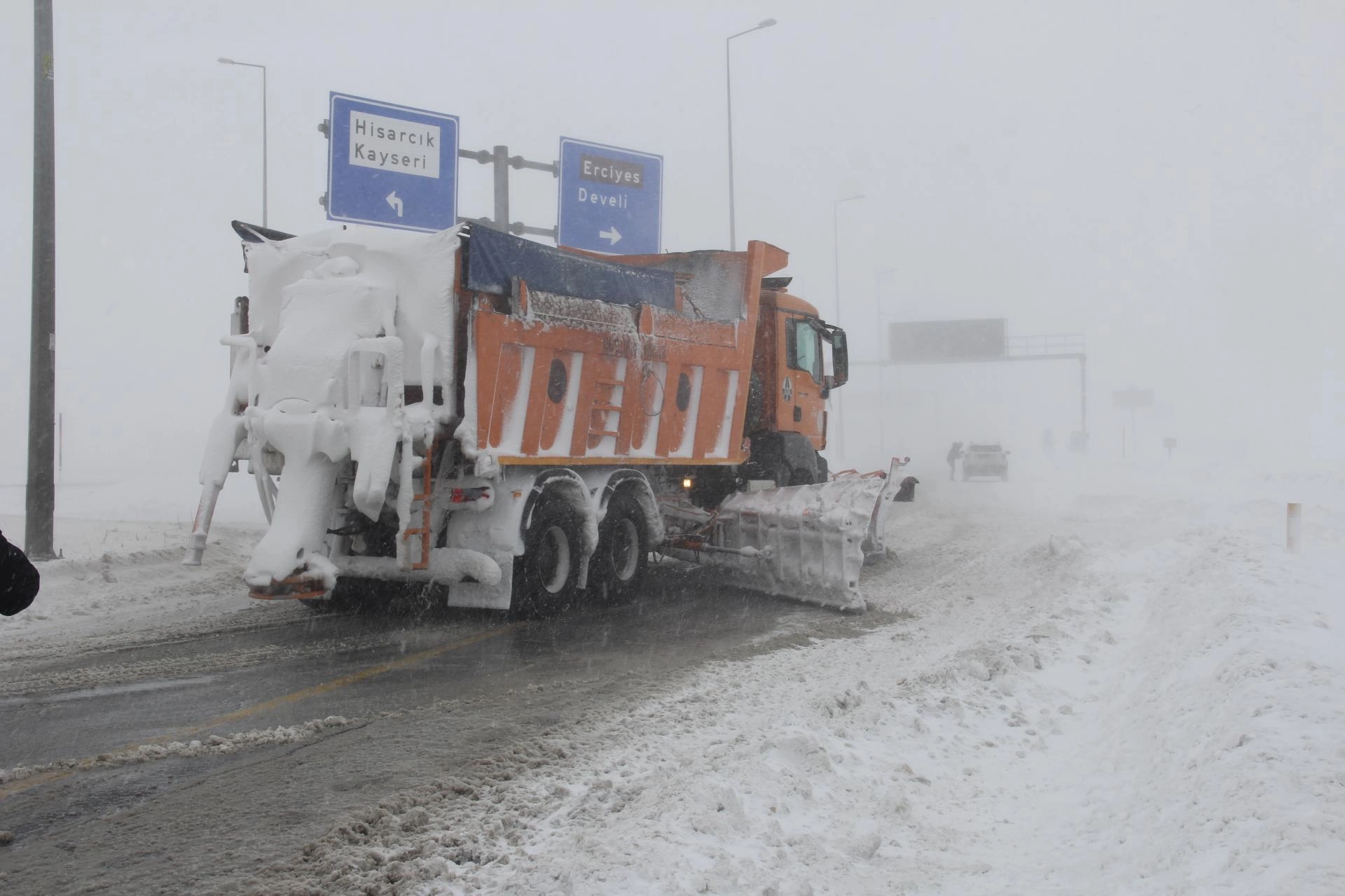 Yer yer tipi ve sisin etkili olduğu Erciyes'te kar kalınlığı 80 santimetreye ulaşırken, Büyükşehir Belediyesi ve Karayolları ekipleri yolları açık tutmak için çalışmalarını aralıksız sürdürüyor.
