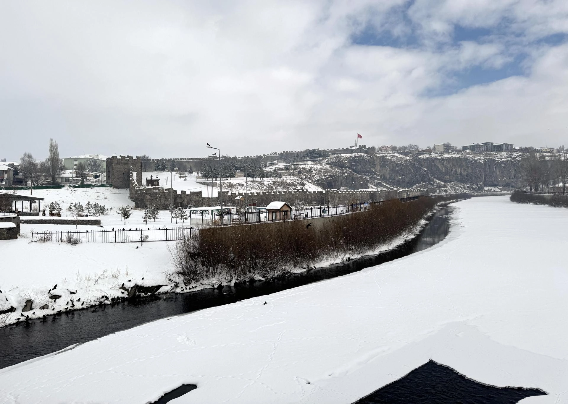 Erzurum'da, önceki günlerde yağan karın ardından soğuk hava etkisini sürdürüyor.