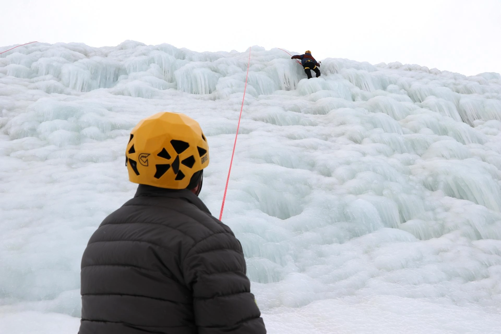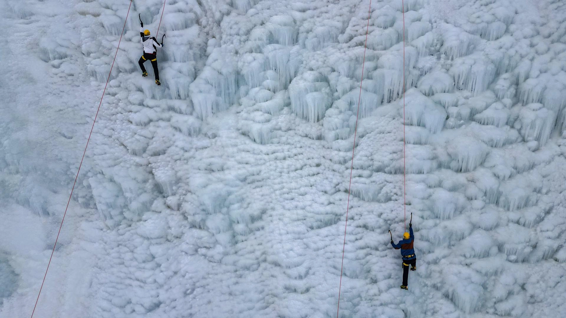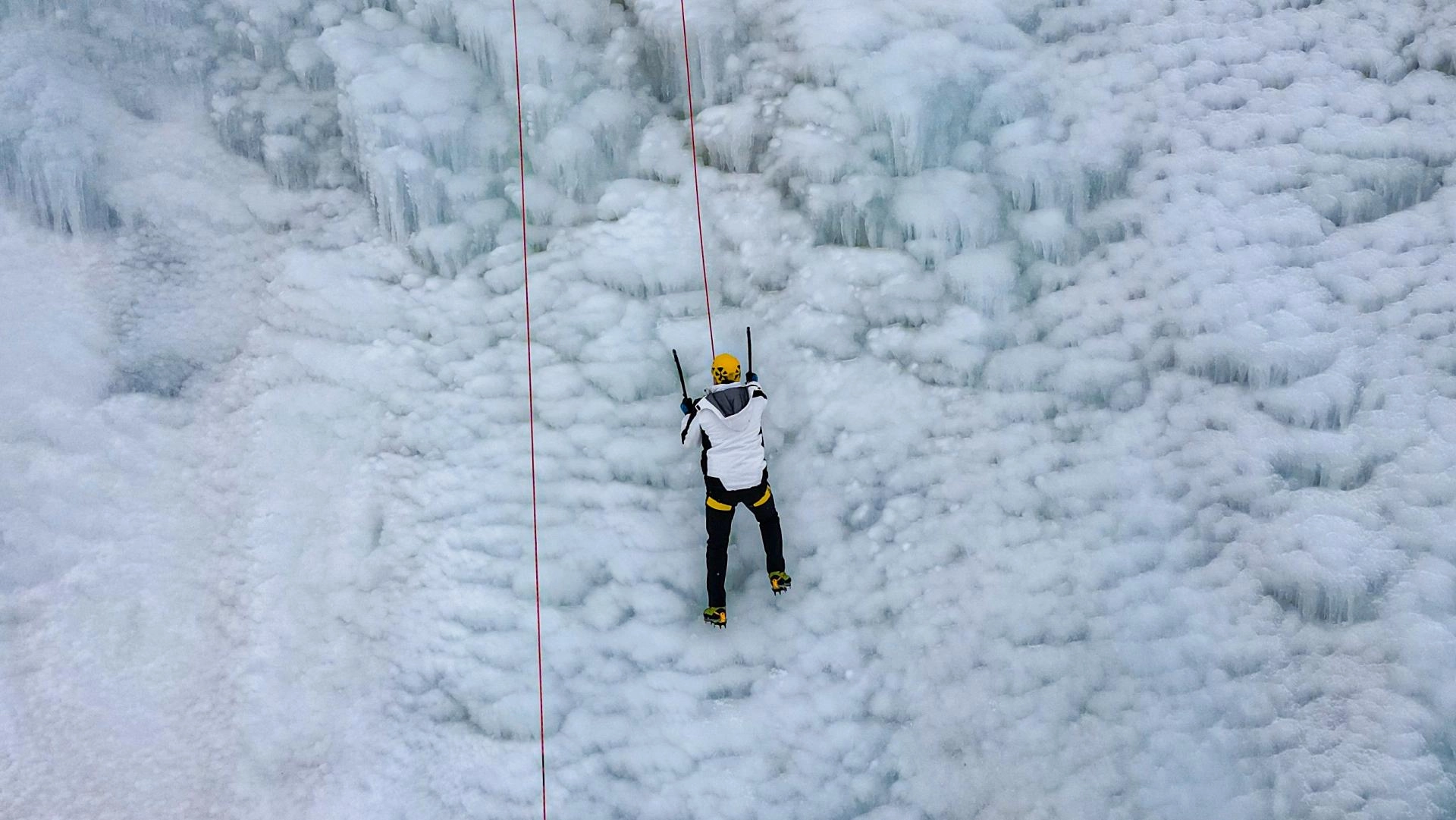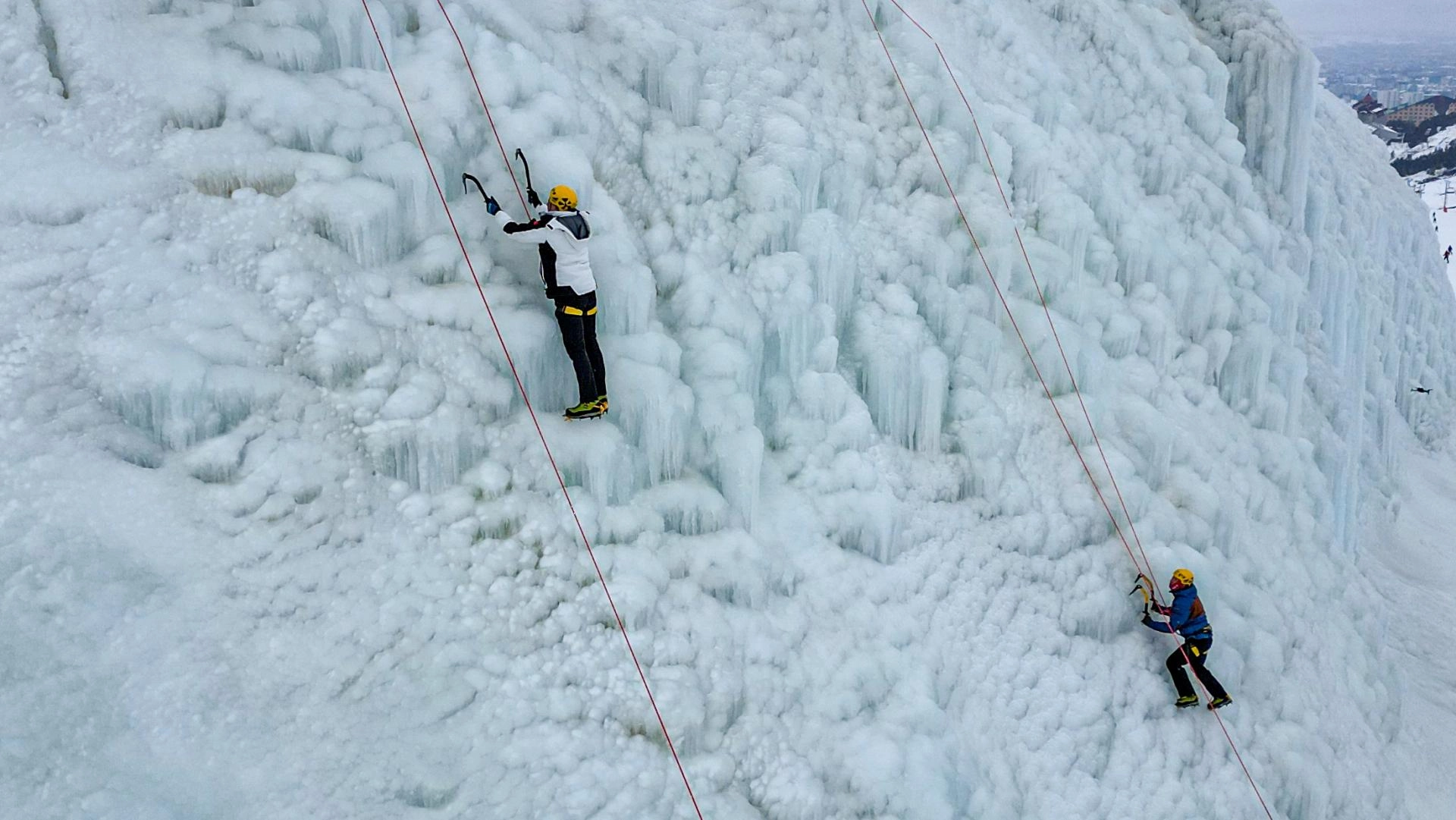 Daha sonra Erzurum Valisi Çiftçi ve İl Jandarma Komutanı Albay Hakan Uğurlu, tırmanış ekipmanlarıyla yapay buz duvarına tırmanarak adrenalin ve heyecanı dolu anlar yaşadı.