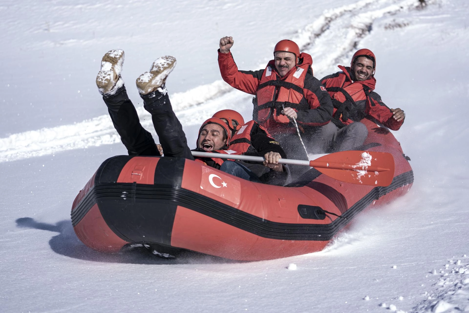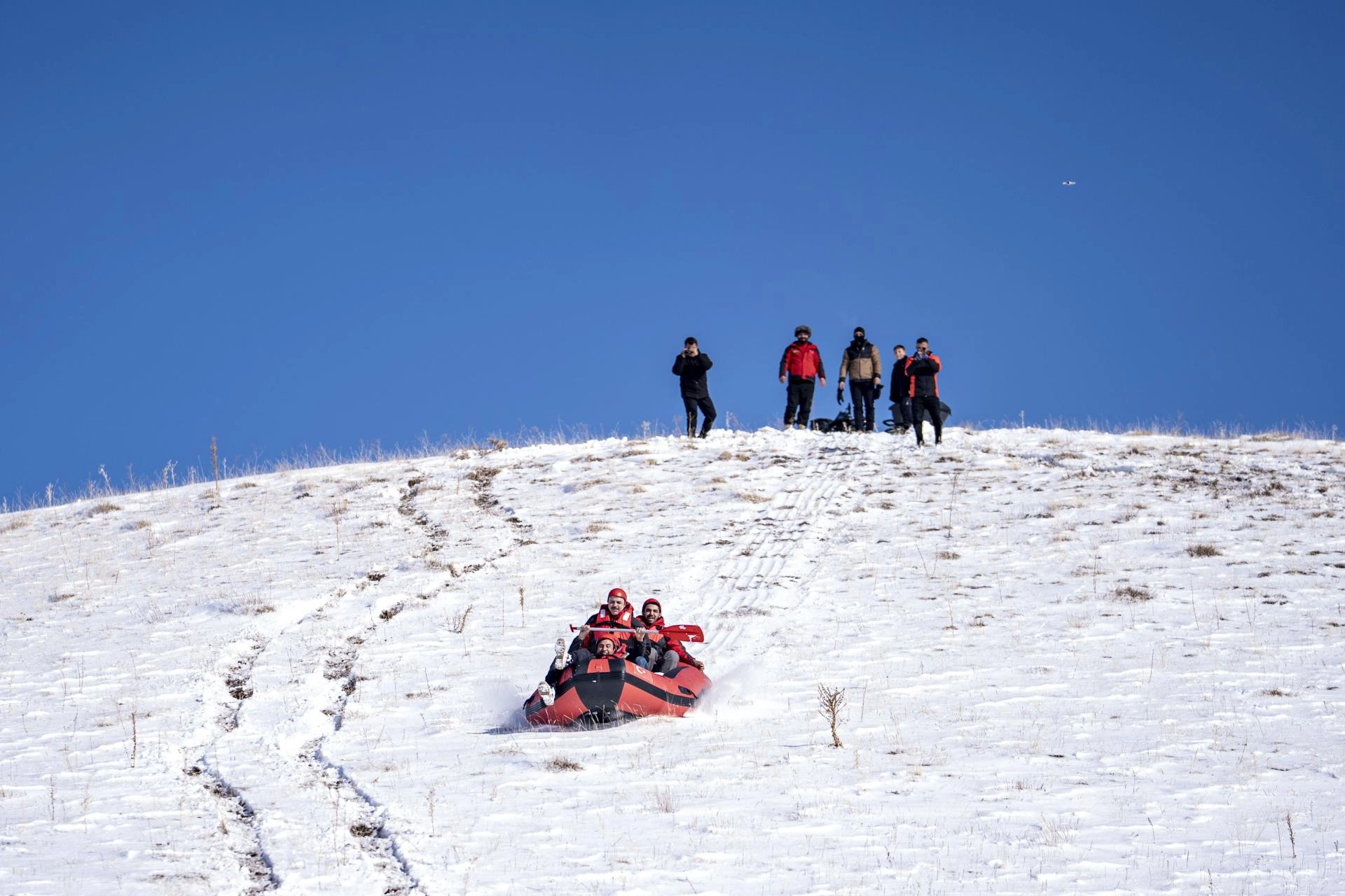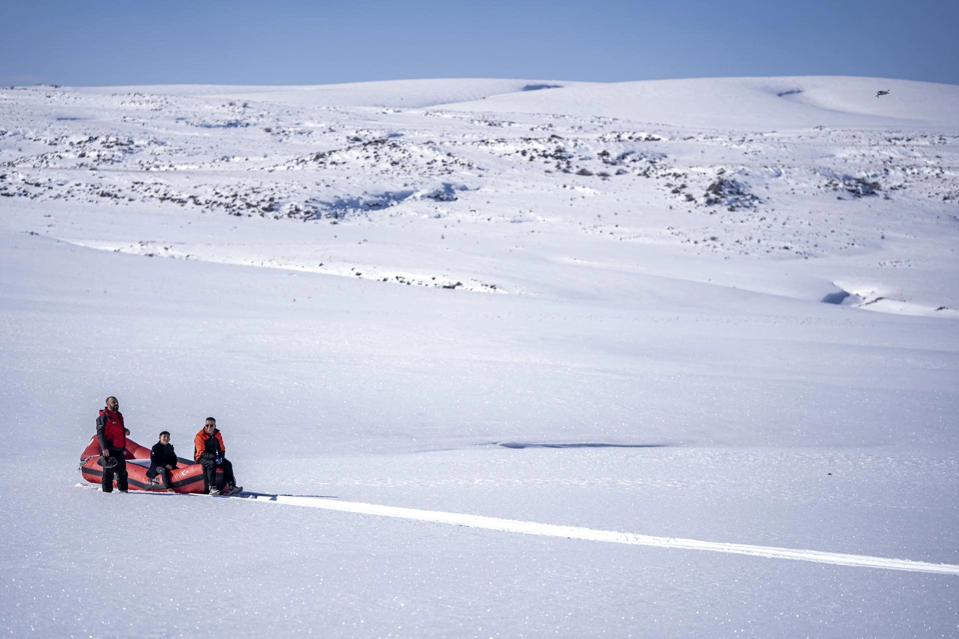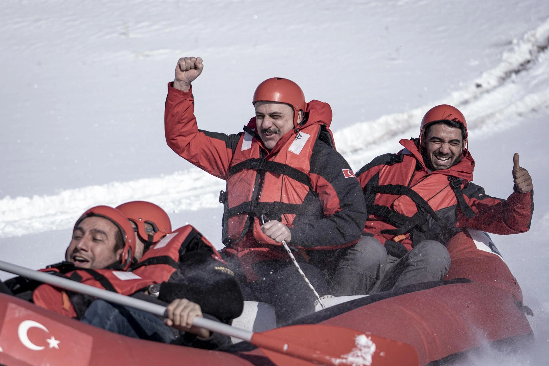 "Burada botlarla tepeye çıkıyoruz. Ardından botla buz tutmuş göl yüzeyine doğru kar raftingi yapıyoruz. Amacımızı Erzurum'da sadece kayak sporunun değil, her türlü kış sporunun yapılabildiğini göstermek. Doğada keyifli güzel bir gün geçirmek istedik. Böylece ilimizin tanıtımına katkıda bulunmak istiyoruz."