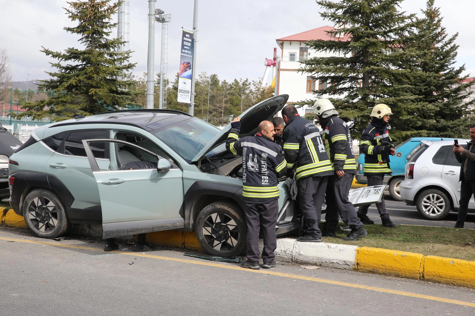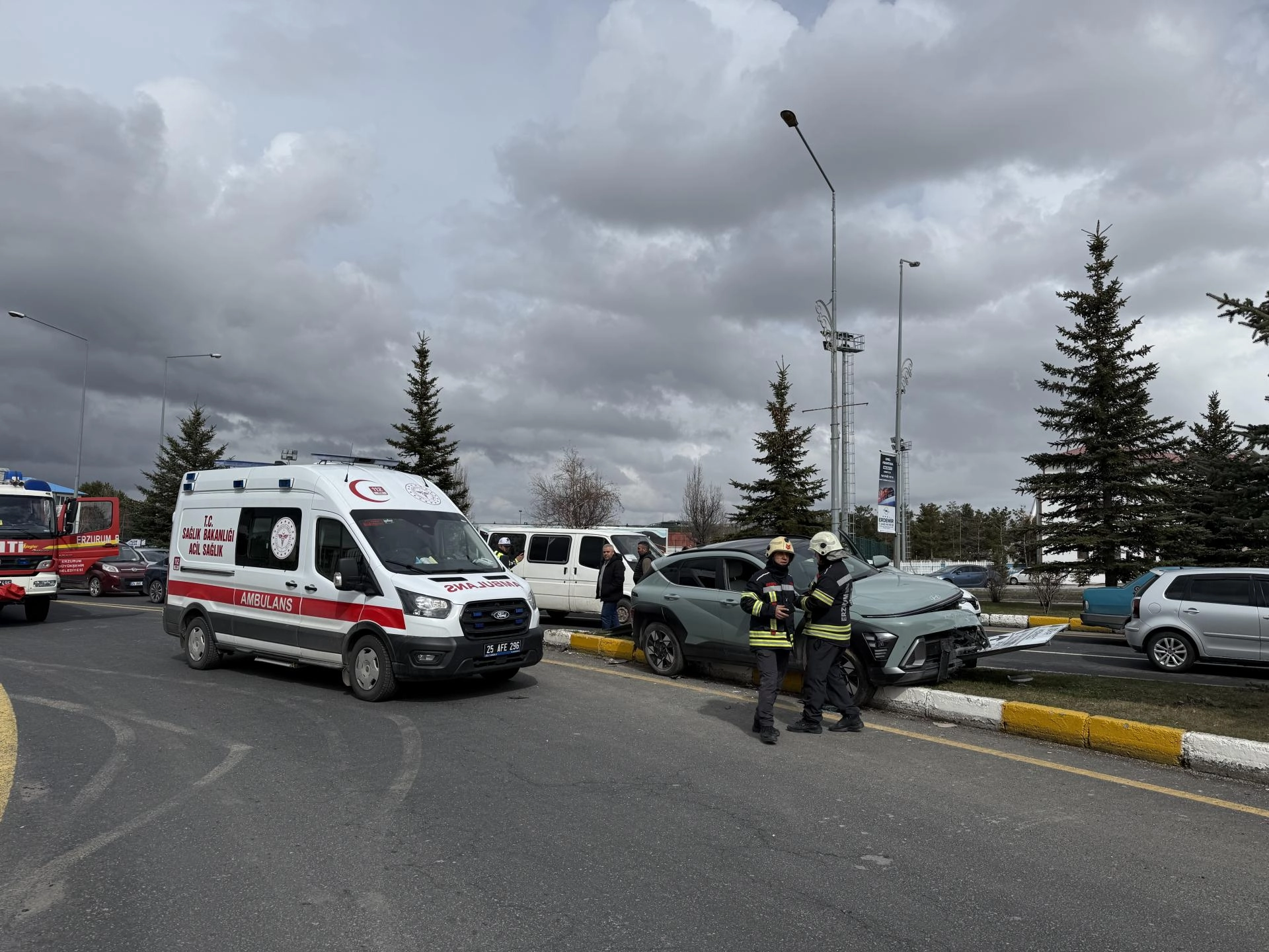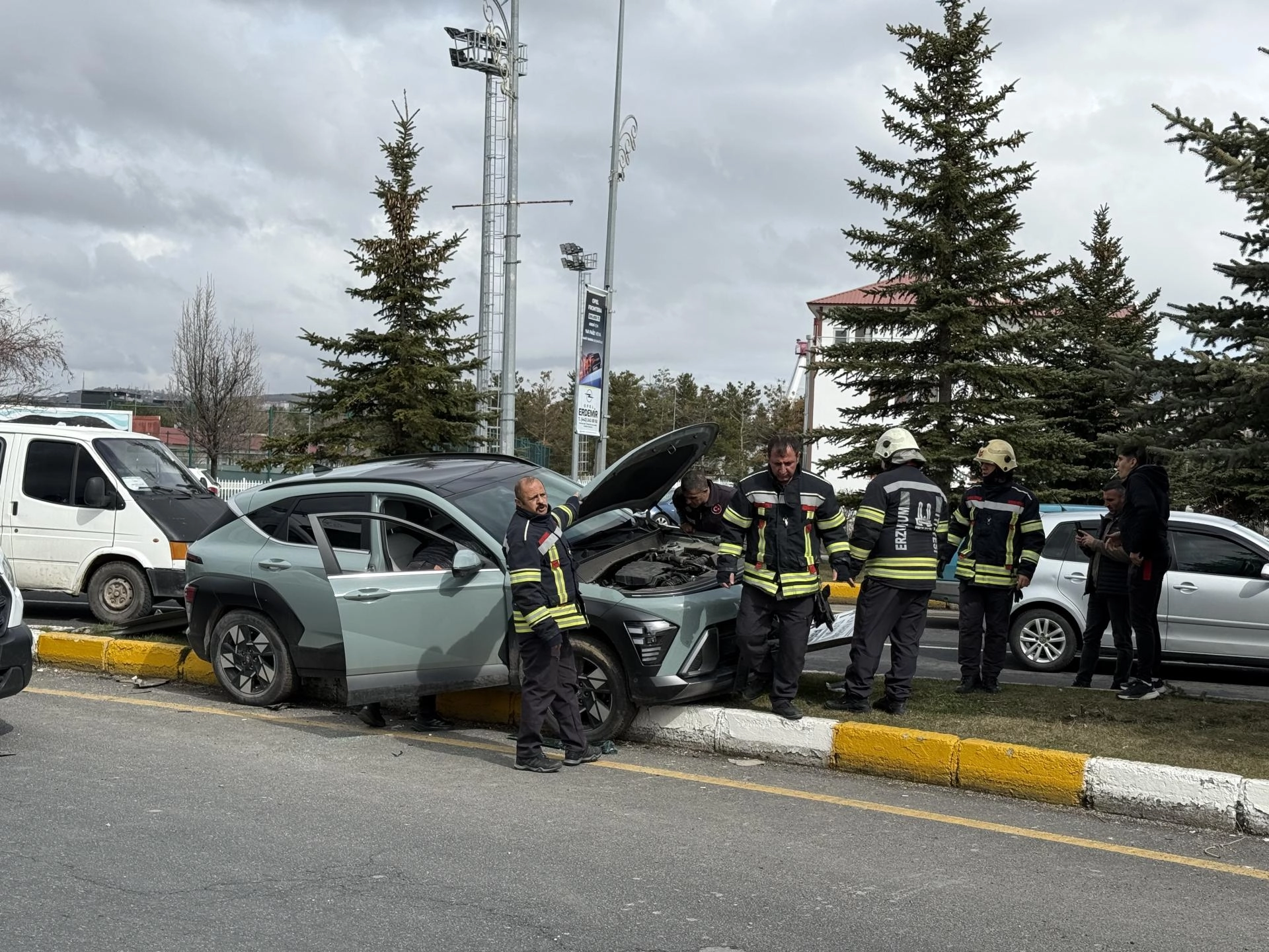 Yakutiye ilçesinde S.Y. yönetimindeki 34 UB 9998 plakalı otomobil, havaalanı yolundan şehir merkezi istikametine seyir halindeyken refüje çıktı.