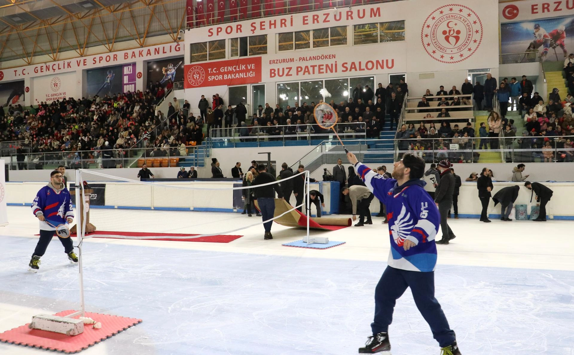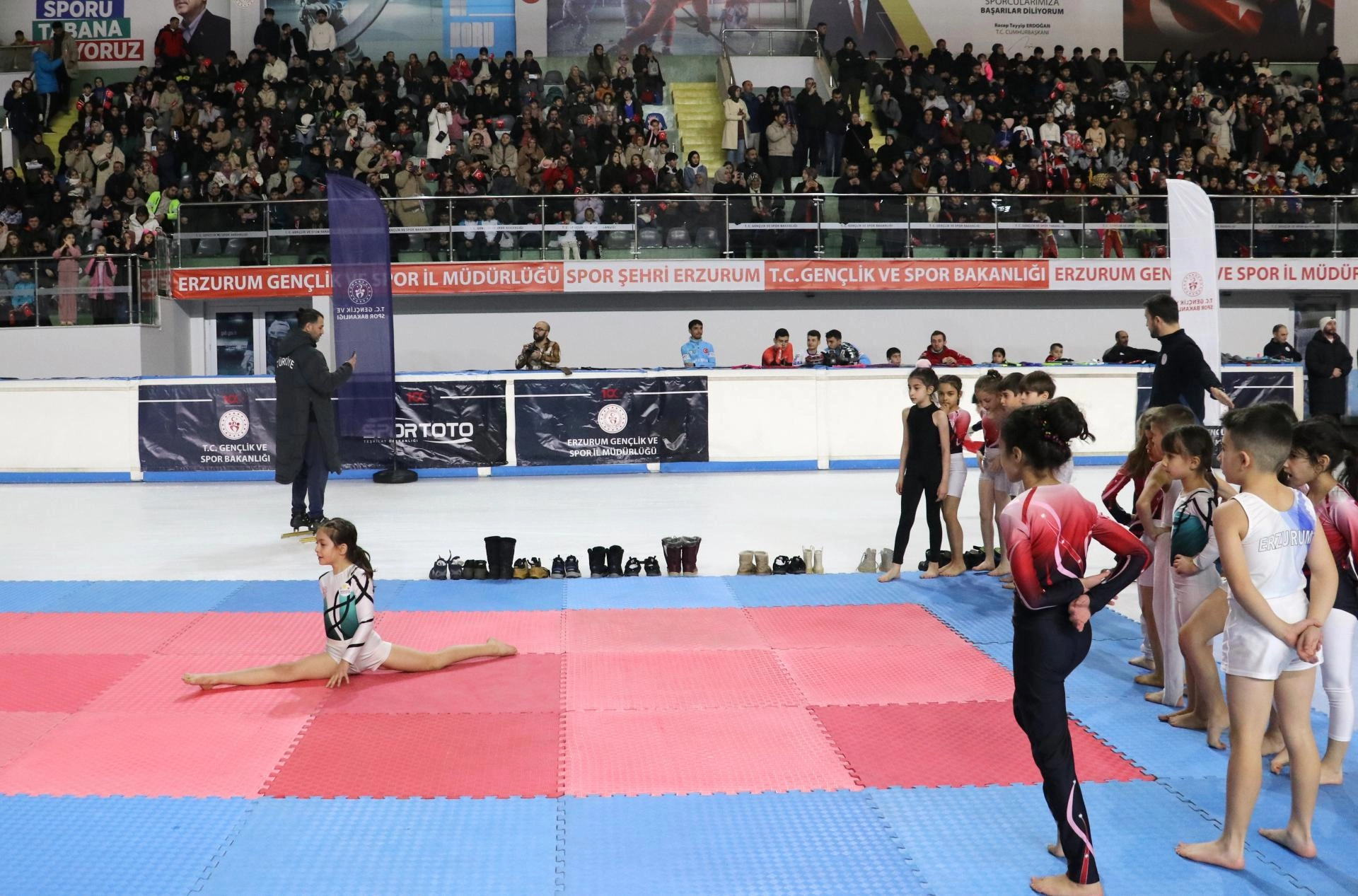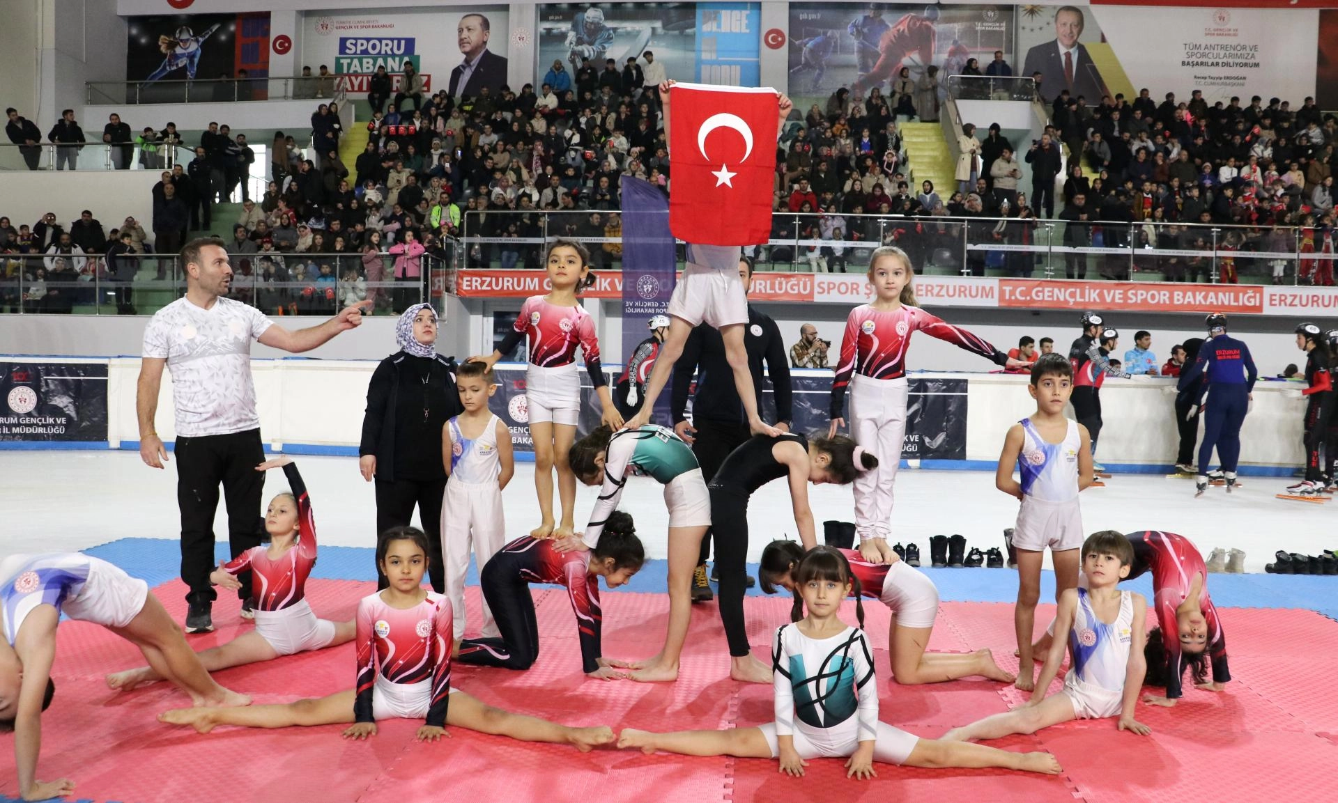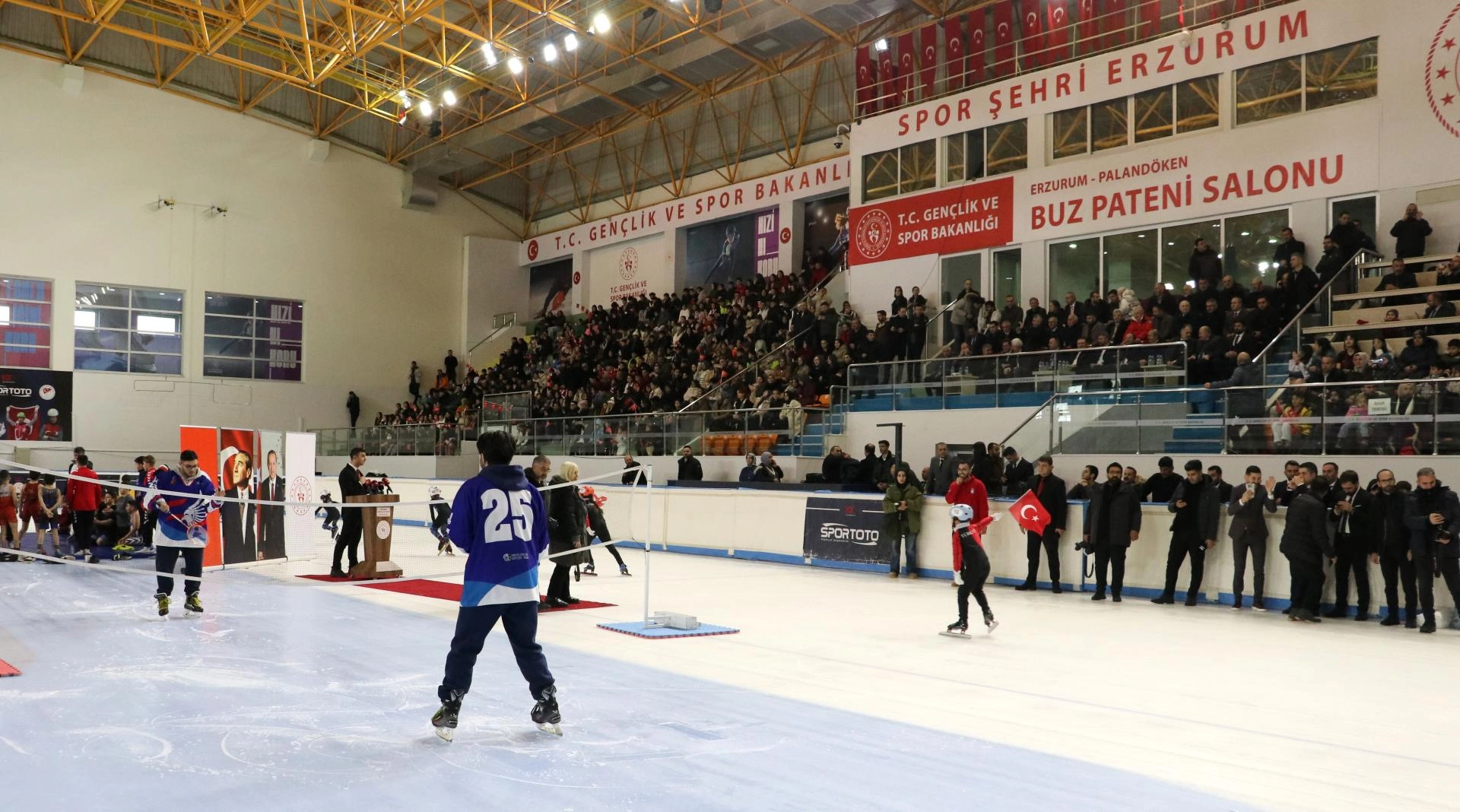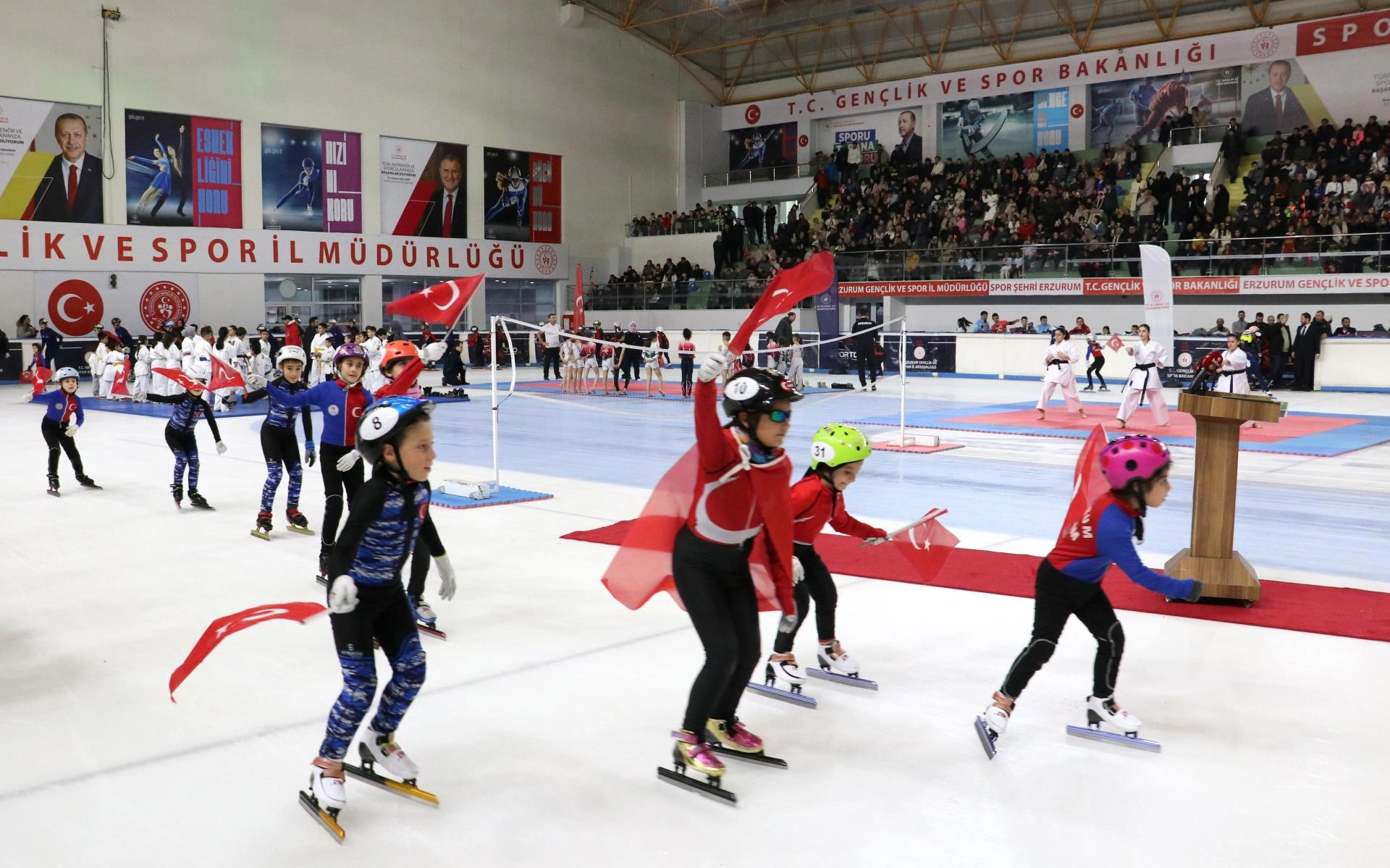 Palandöken Buz Pateni Salonu'nda düzenlenen açılış, saygı duruşunda bulunulması ve İstiklal Marşı'nın okunmasıyla başladı.