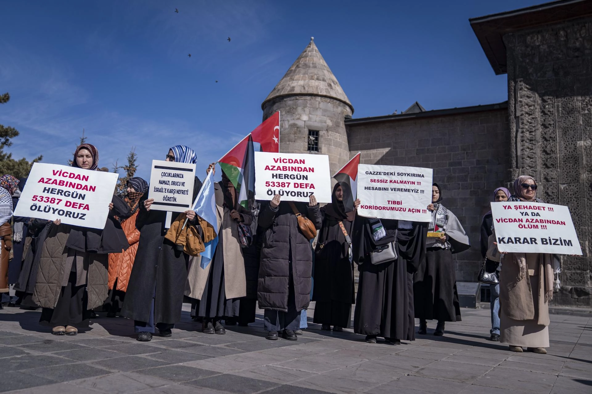 ERZURUM (AA) - Erzurum'da sağlık çalışanları, İsrail'in Gazze'ye yönelik saldırılarını protesto etmek ve yaşanan zulme dikkati çekmek amacıyla başlattıkları sessiz yürüyüşlerini 119. haftada da devam ettirdi.