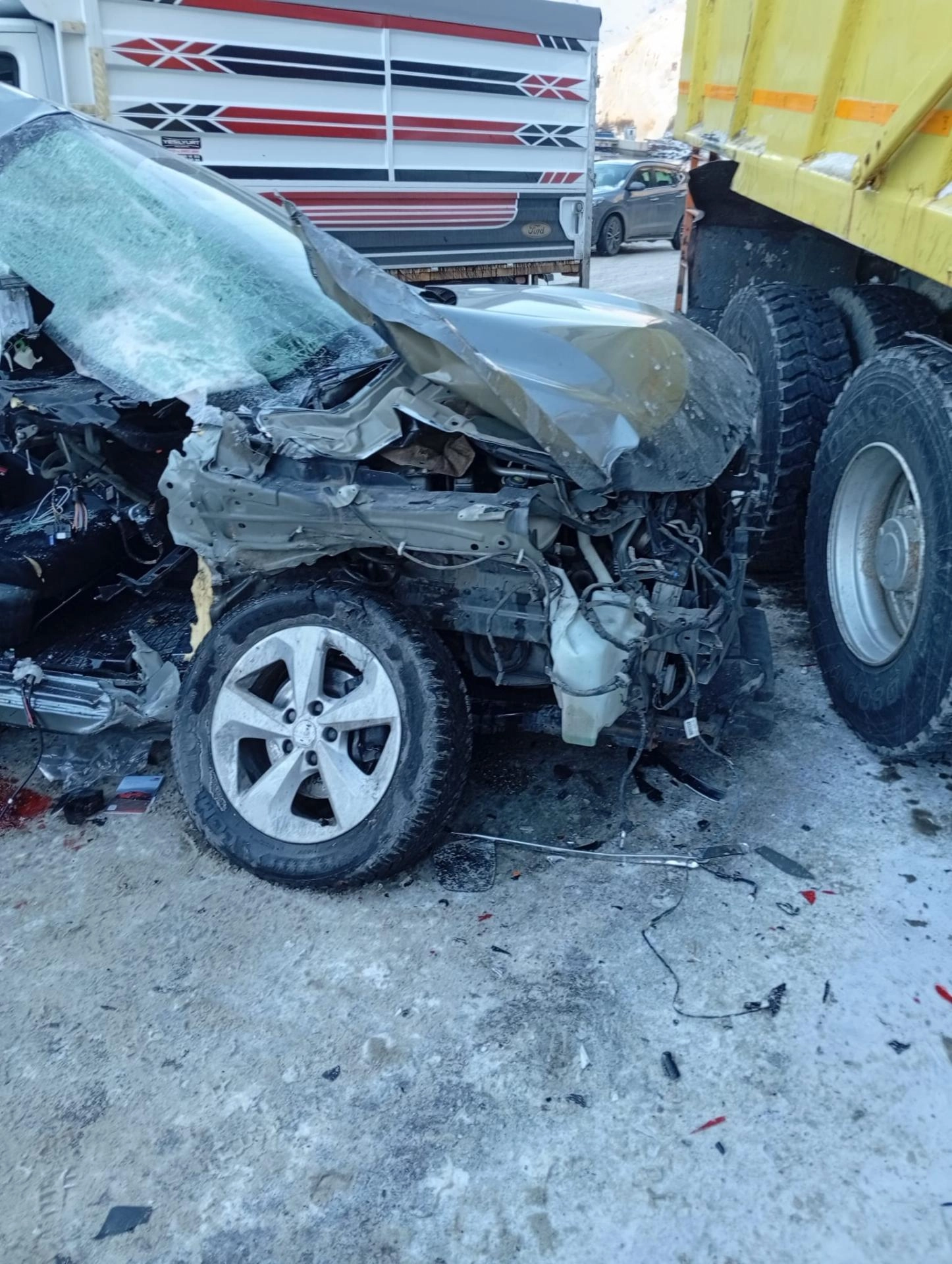 M.D. (24) idaresindeki 06 P 7056 plakalı SUV tipi araç, Hoş Mahallesi mevkisinde Z.A'nın (33) kullandığı 33 AUN 758 plakalı tırla çarpıştı.