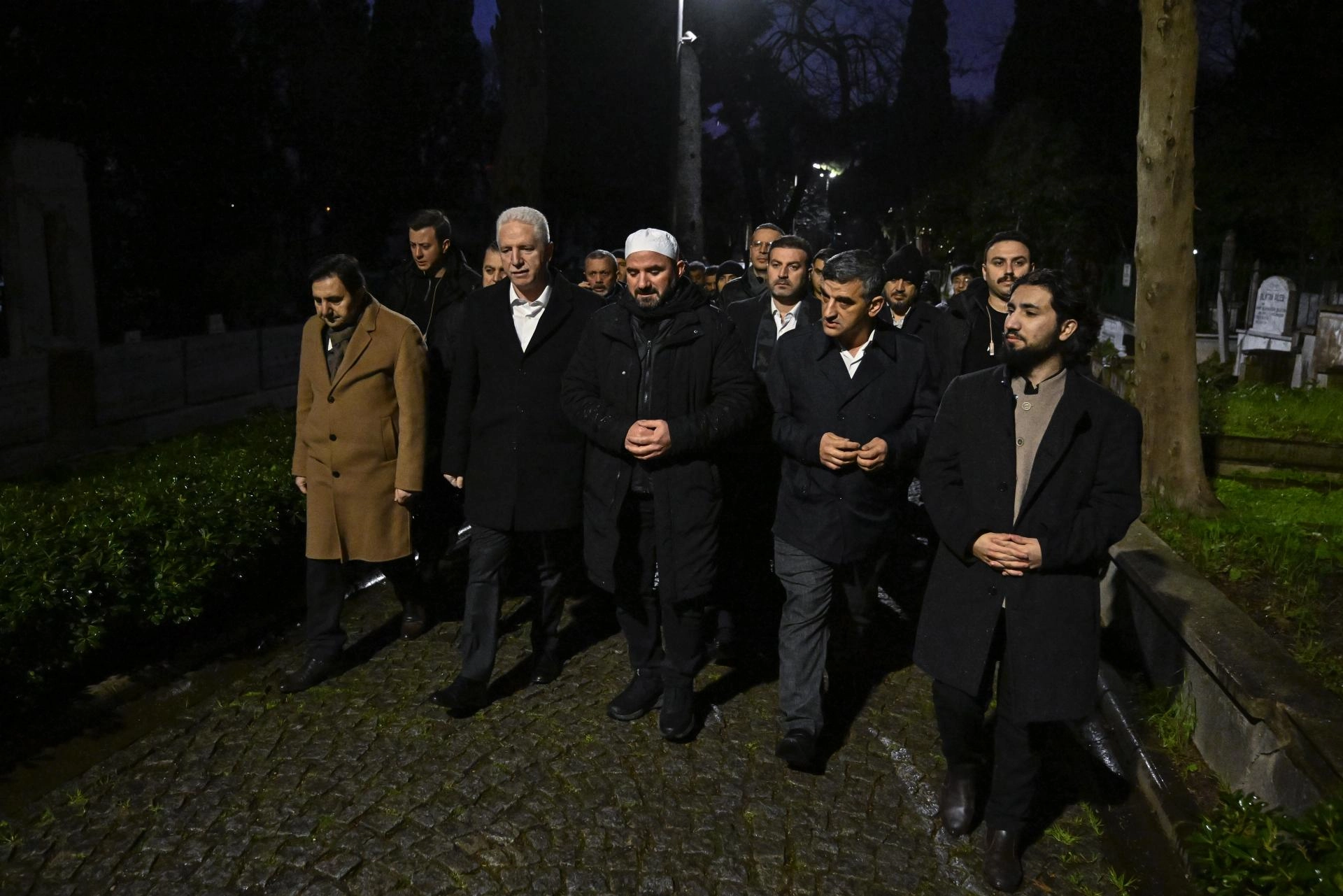 Namazın ardından grup, Erbakan'ın Zeytinburnu Merkezefendi Mezarlığı'ndaki kabri başında Kur'an-ı Kerim okuyup dua etti.