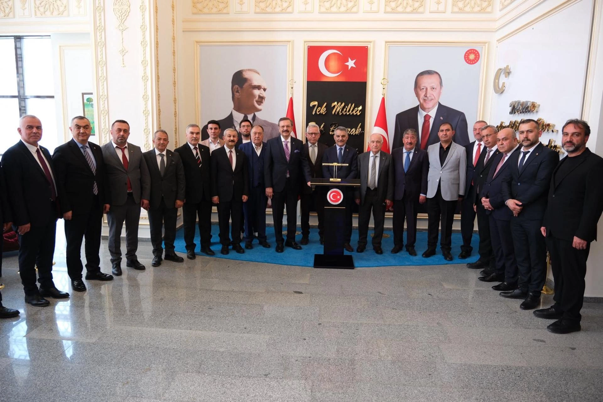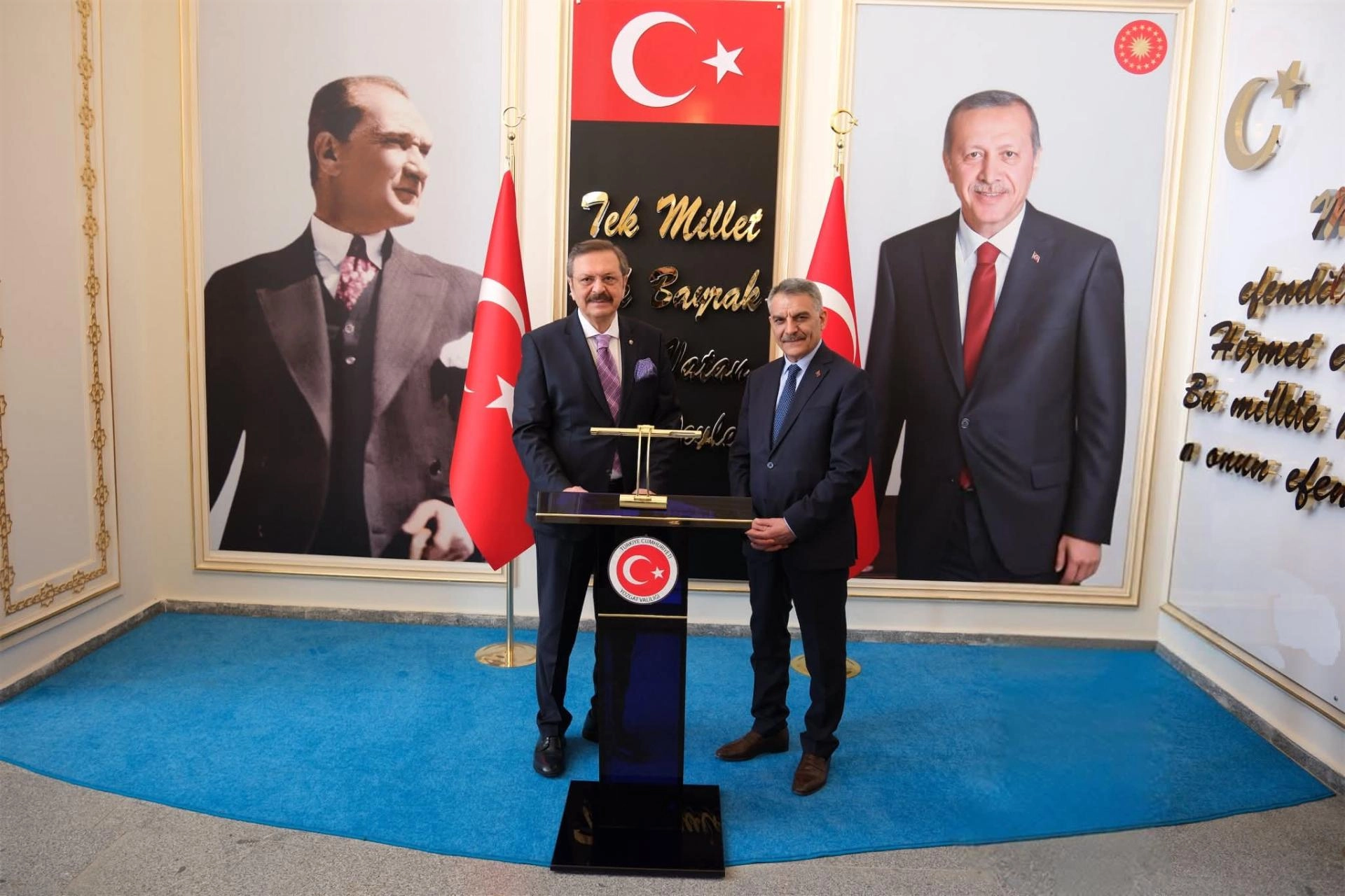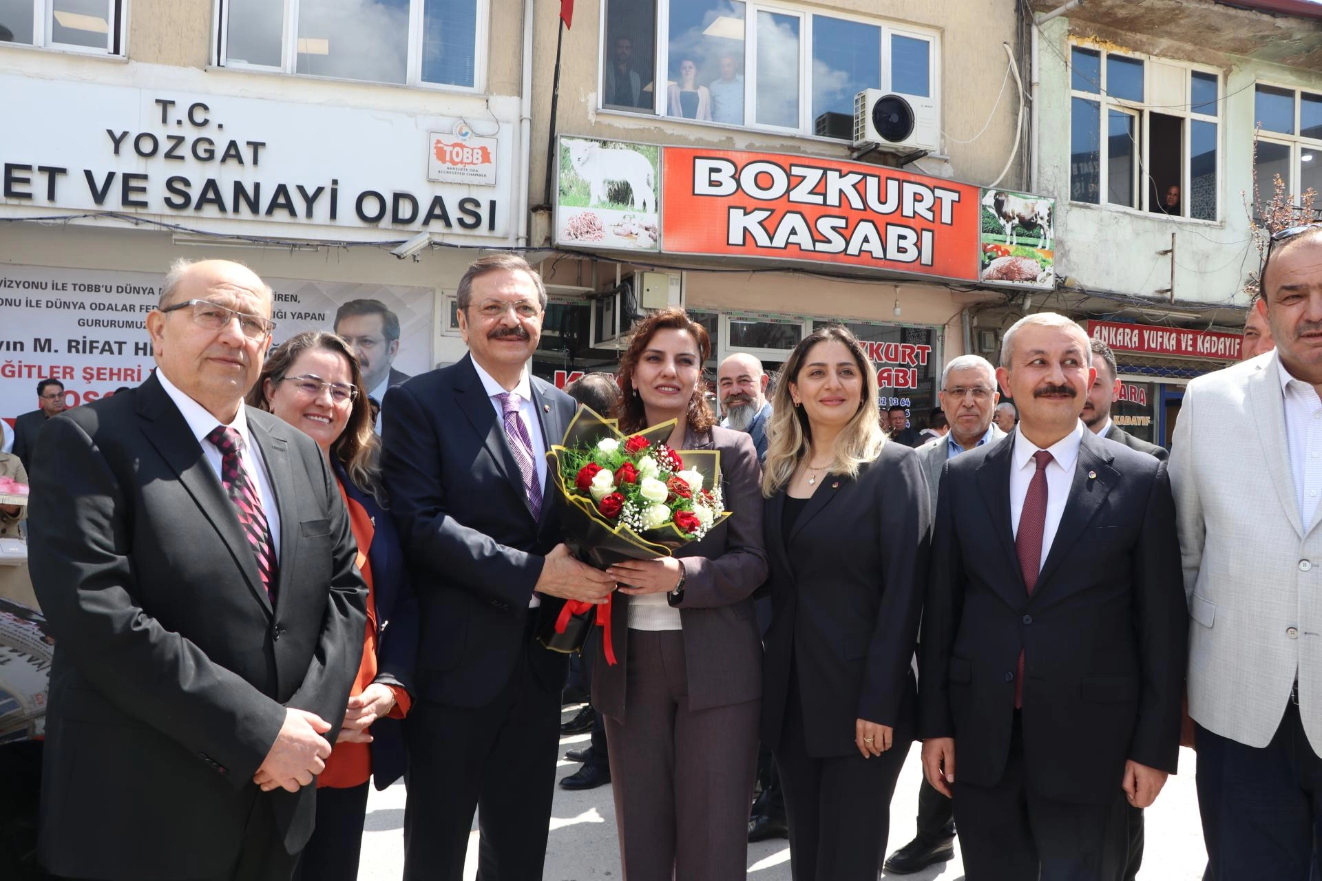 Yozgat Valiliği ile Yozgat Ticaret Borsası'nı ziyaret eden Çiçek ve Hisarcıklıoğlu, Yozgat Ticaret ve Sanayi Odasında iş insanlarıyla bir araya geldi.