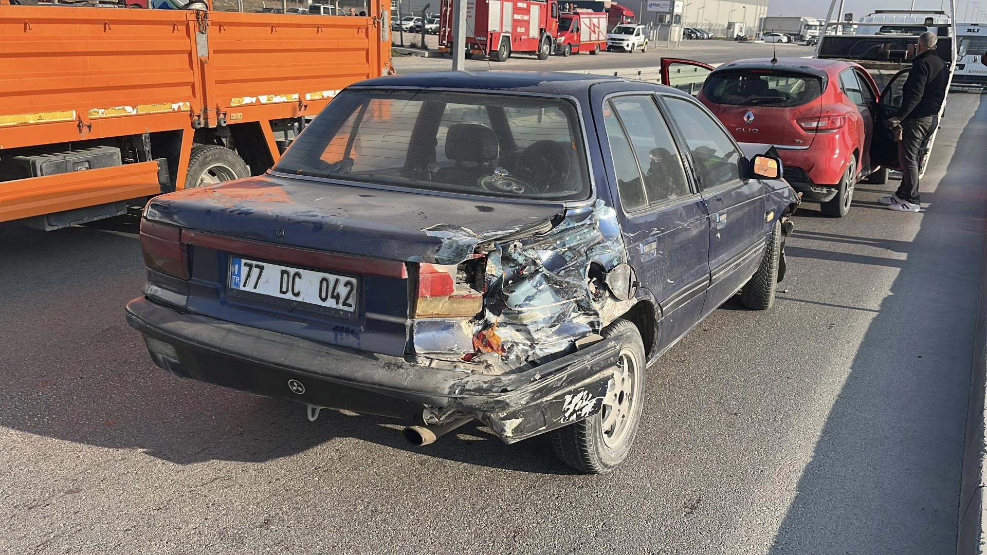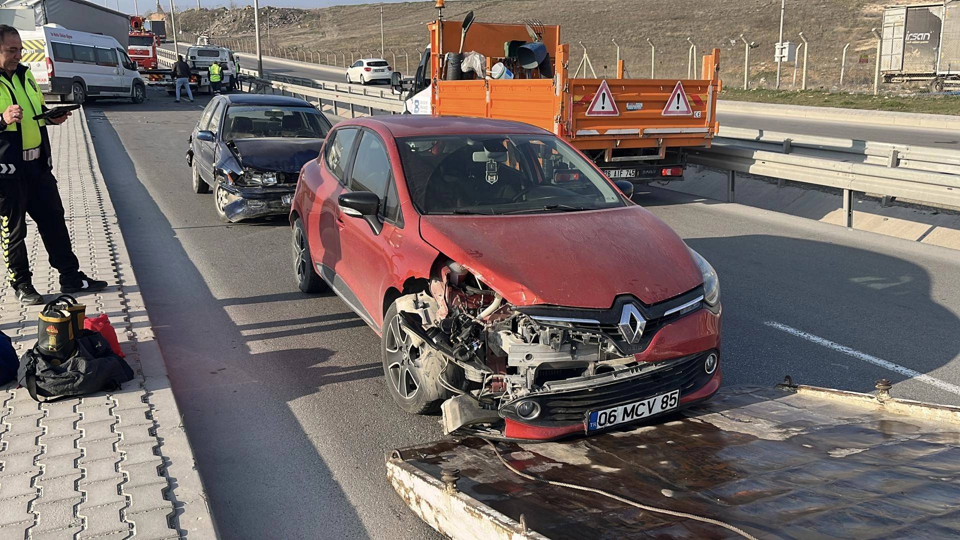 F.K. idaresindeki 06 EYH 931 plakalı tır, Organize Sanayi Bölgesi Firuz Kanatlı Bulvarı'nda, önünde seyir halinde bulunan 2 işçi servisine ve 2 otomobile çarptı.