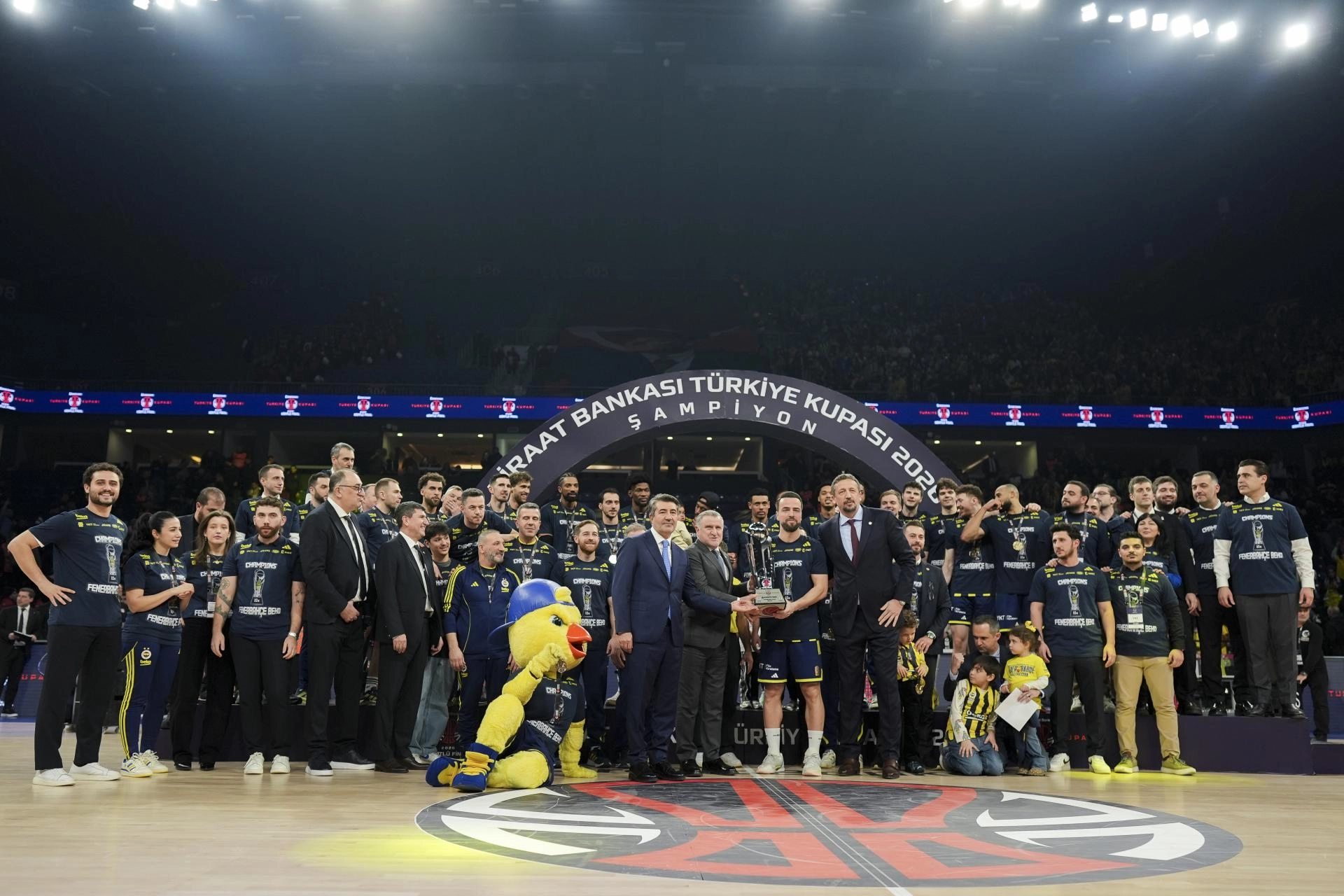 Deneyimli oyuncu, jest yaparak kupayı Tarık Biberovic'e verdi. Tarık'ın kupaya havaya kaldırmasının ardından oyuncular büyük sevinç yaşadı. Sarı-lacivertli basketbolcular, şampiyonluğu taraftarıyla kutladı.