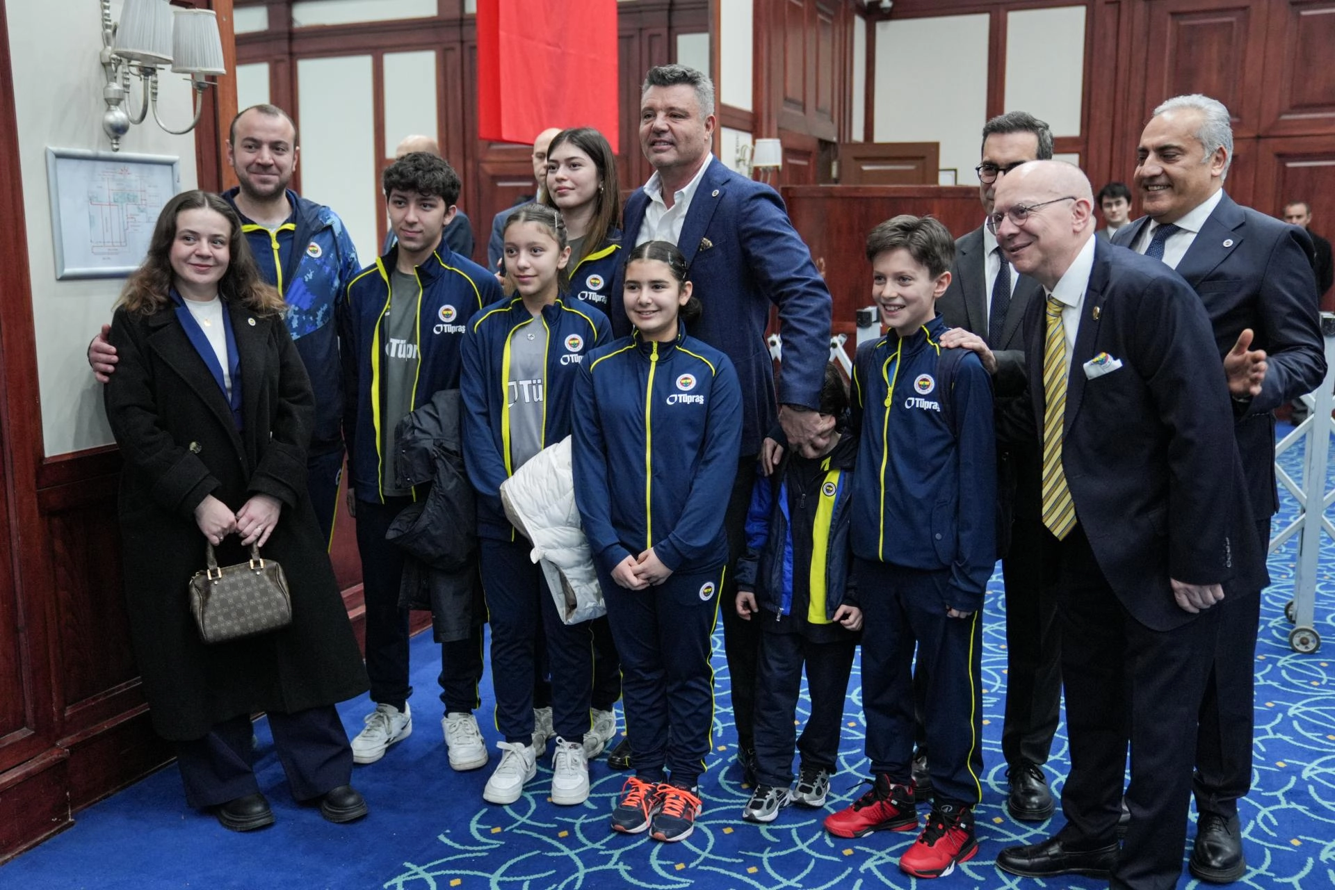 Bayramlaşma töreninde Sadettin Saran'ın görev süresi boyunca sarı-lacivertli kulübün tüm branşlarda kazandığı kupalar da sergilendi.