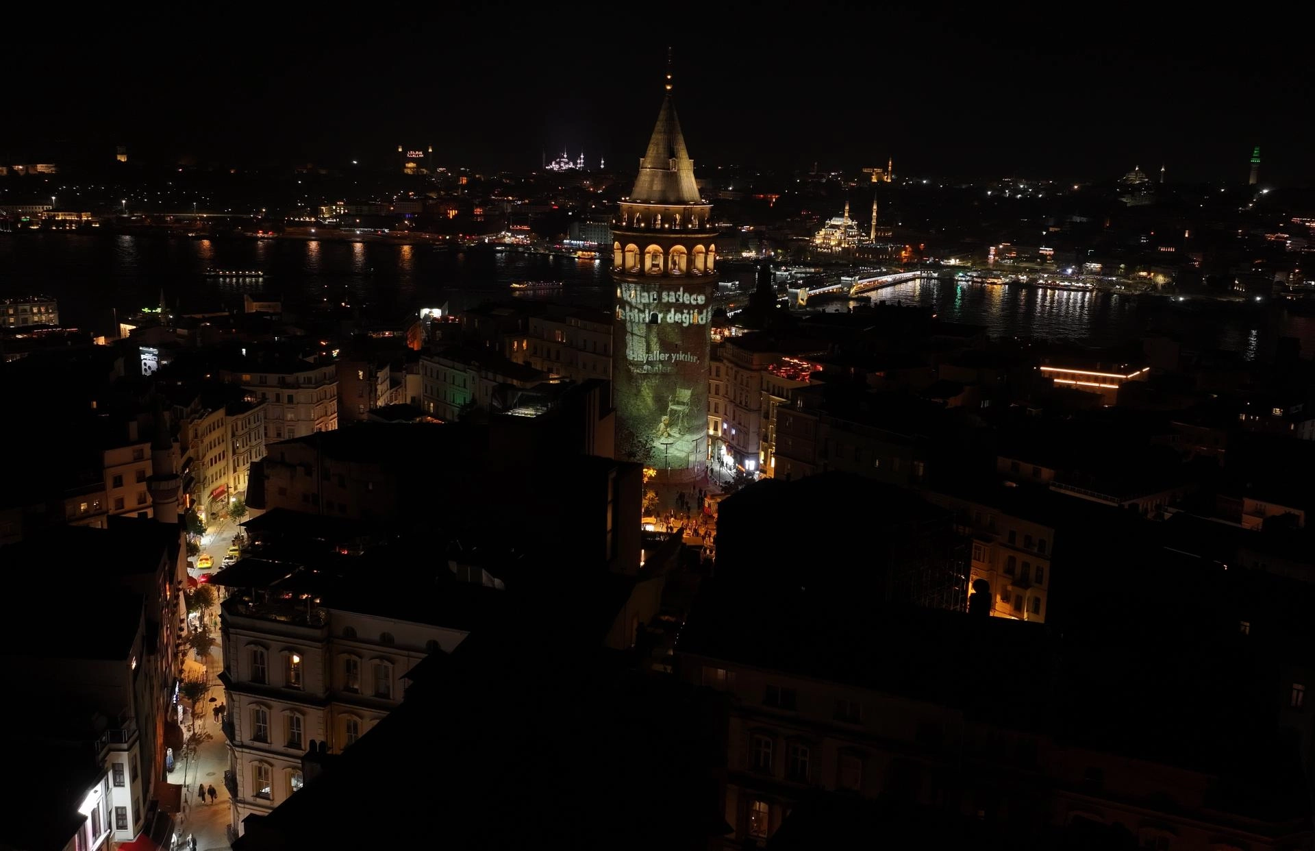 İSTANBUL (AA) - Türkiye Beyazay Derneğince 3 Aralık Dünya Engelliler Günü kapsamında Galata Kulesi'ne, savaşlar sonrasında engelli kalan çocukların ve sivillerin anlatıldığı video yansıtıldı.