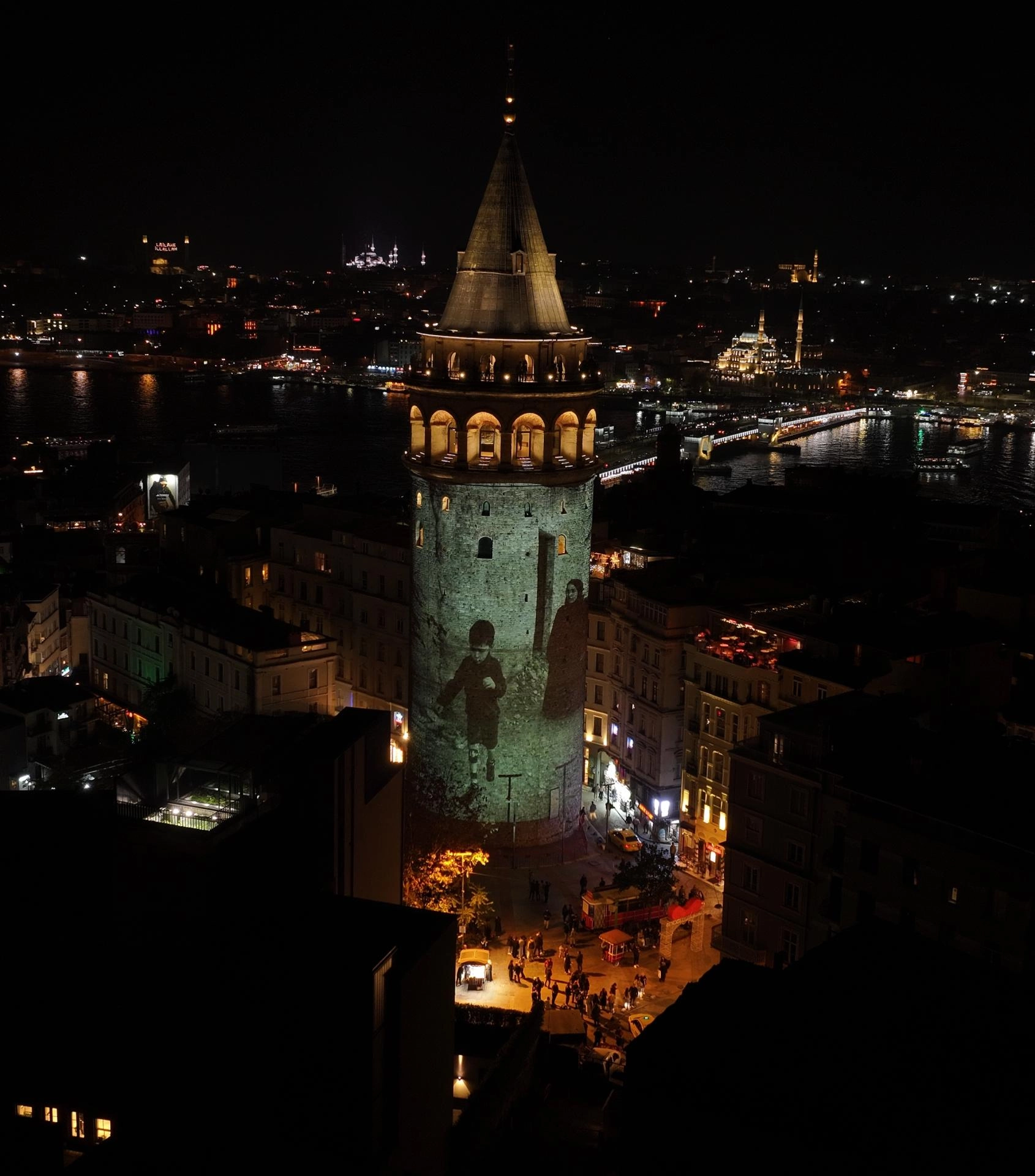 Kuleye, savaşlar sonrasında engelli kalan çocukların ve sivillerin anlatıldığı video ile "Savaş nerede olursa olsun, ardında sadece yıkım bırakır. Yıkılan sadece şehirler değildir. Hayaller yıkılır, bedenler sakatlanır, hayatlar yarım kalır. Her savaş, ardında binlerce engelli bırakır. Biz diyoruz ki savaşları engelleyin, engelli kalmayalım." yazısı yansıtıldı.