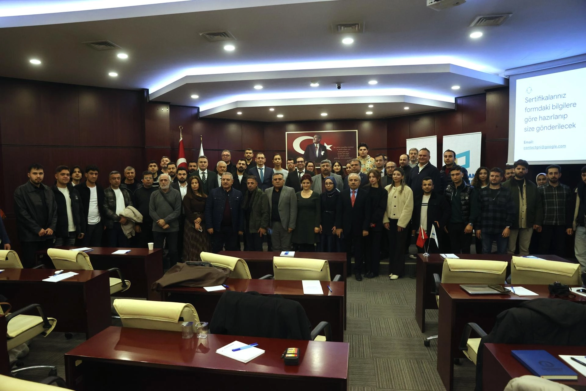 Gaziantep Ticaret Odasının konferans salonunda düzenlenen eğitim programında bölgede görev yapan gazetecilerin yapay zeka destekli araçlarla daha hızlı, güvenilir ve nitelikli içerik üretmesine yönelik teknik bilgi paylaşıldı.