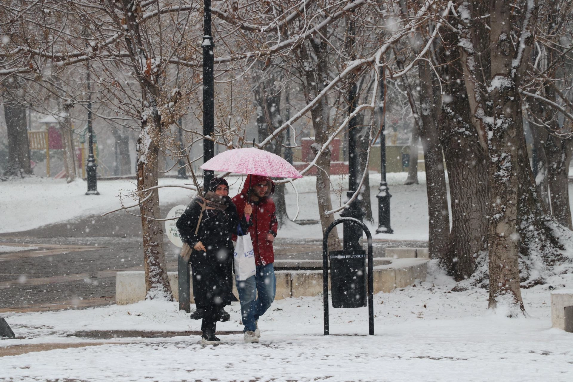 Sabah saatlerinde etkili olmaya başlayan kar nedeniyle kent merkezi ve yüksek kesimler beyaza büründü.