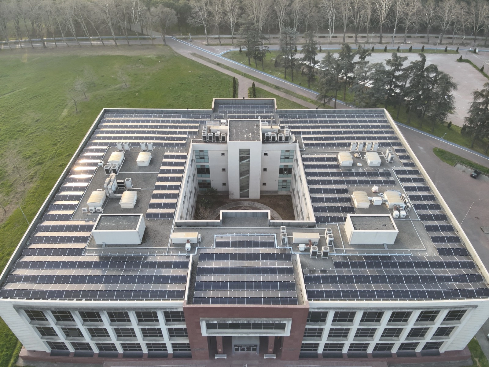 Üniversiteden yapılan açıklamaya göre, "Sürdürülebilir Kampüs" vizyonu doğrultusunda daha önce imzalanan protokol kapsamında, yerleşkesindeki otoparkların ve bina teraslarının üzerine GES'leri kurarak alan kaybı yaşatmadan atıl alanları enerji üreten merkezlere dönüştürüyor.