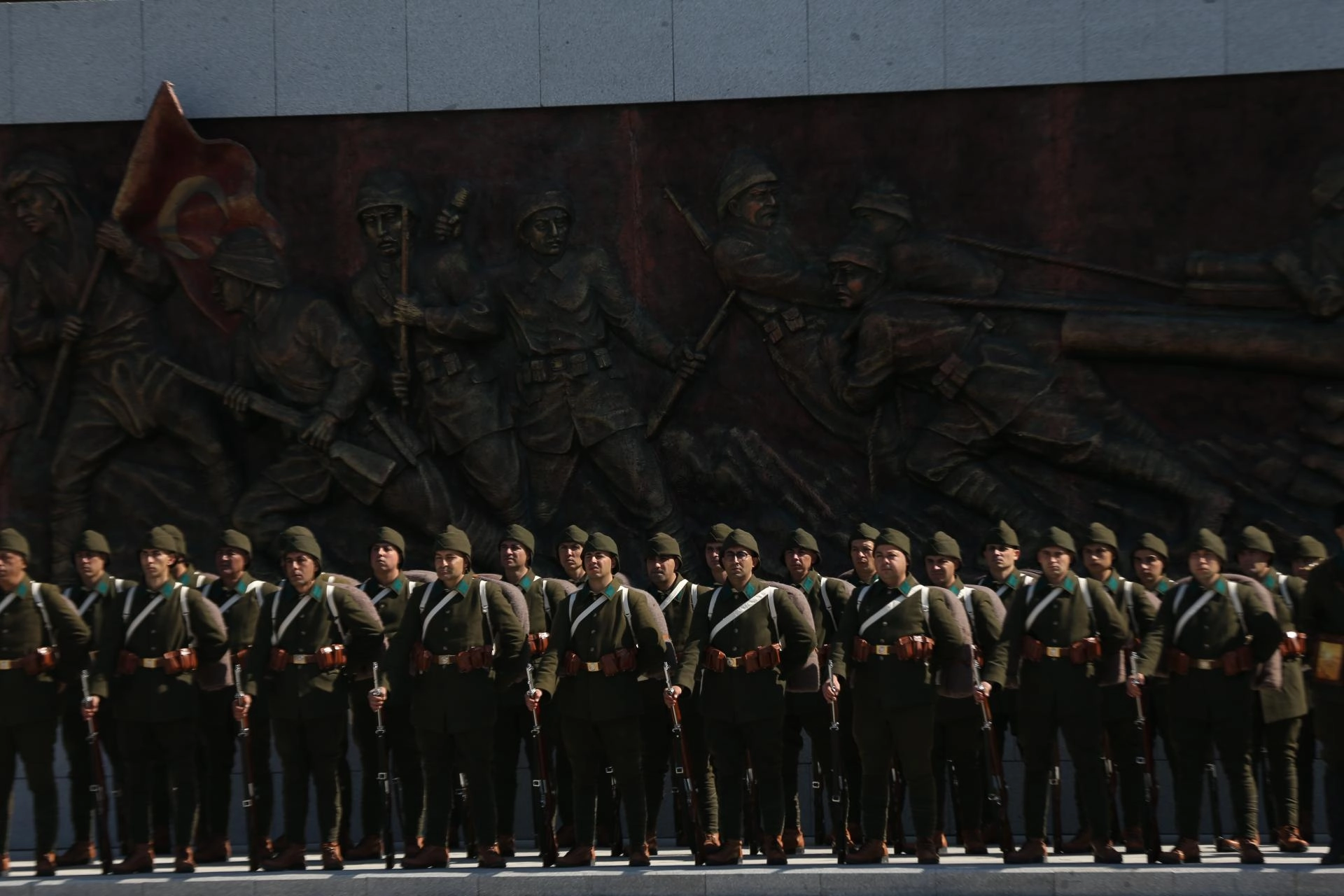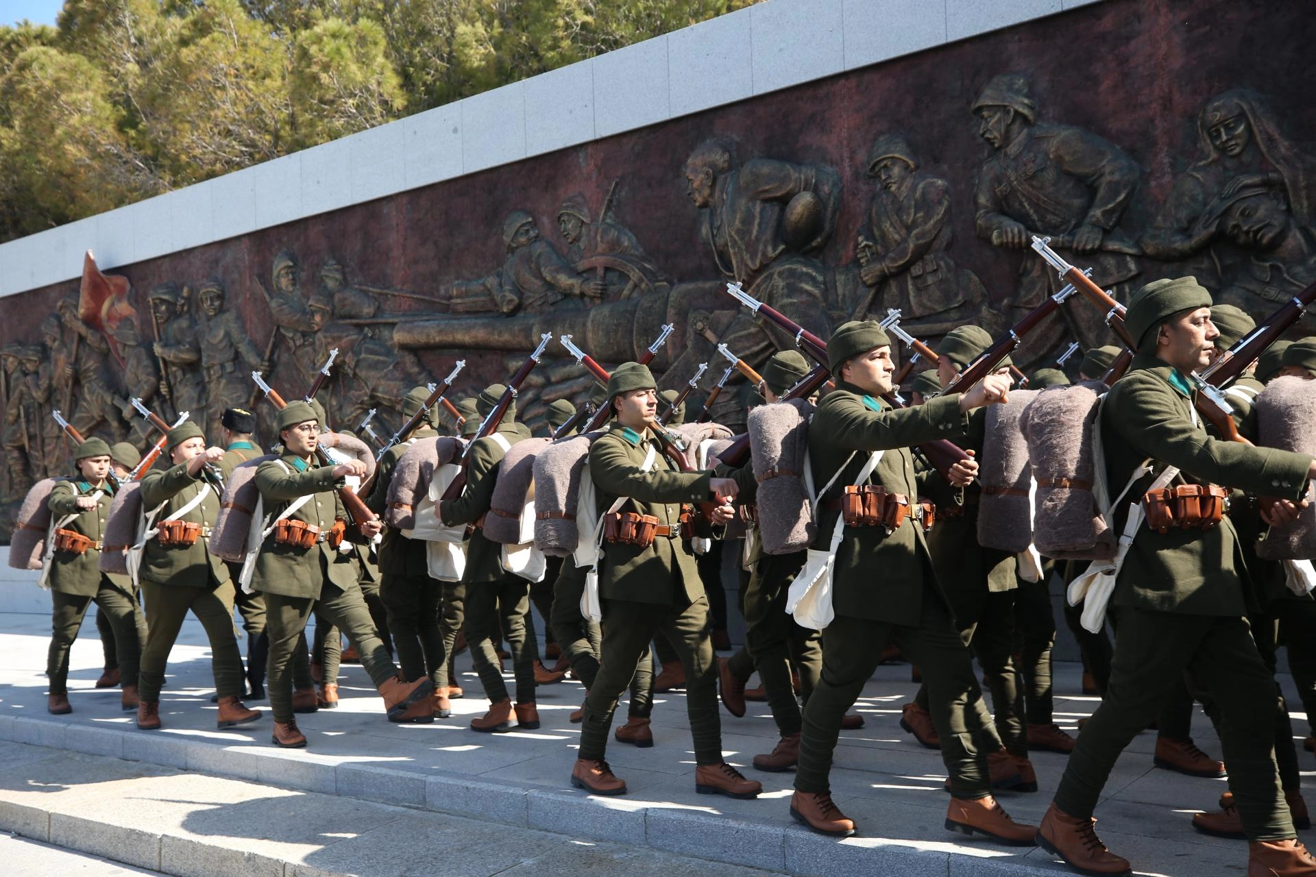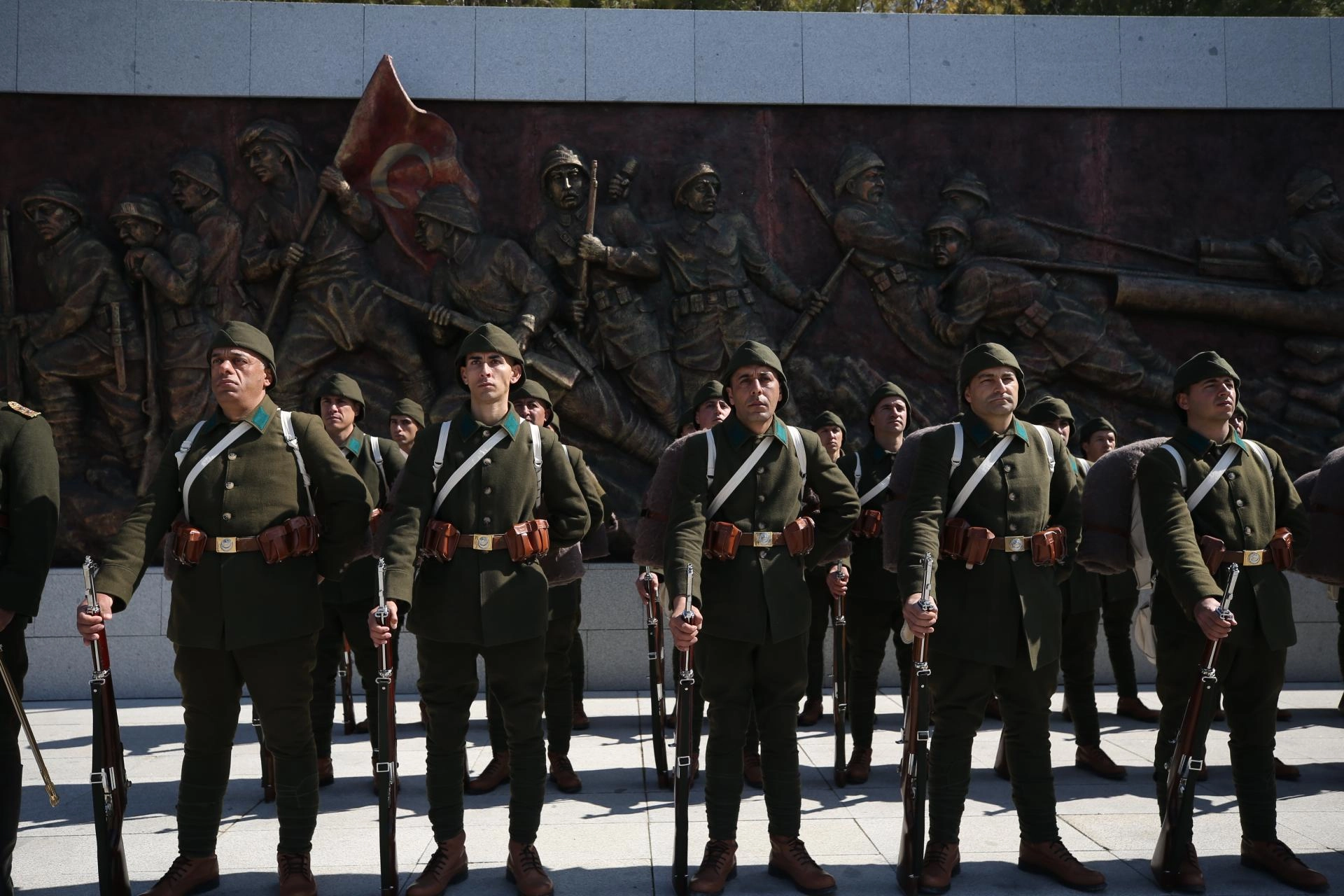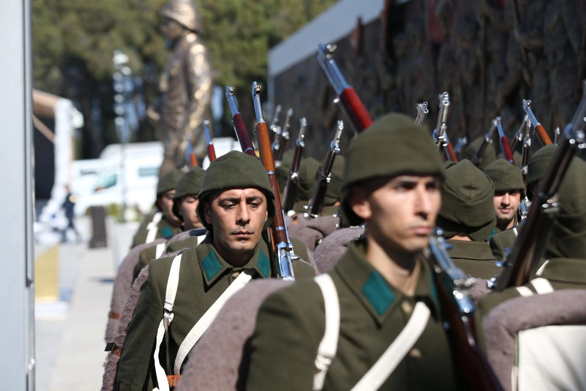 Şehitler Abidesi'nde tören akış programı çerçevesinde gerçekleştirilen provada, 2. Kolordu Komutanlığı'nda görevli askerler bando eşliğinde geçit töreni ve ardından saygı atışı yaptı.
