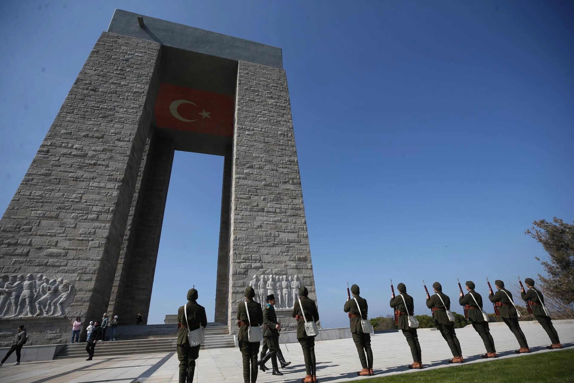 Gelibolu Yarımadası'nı ziyarete gelenler de provayı ilgiyle izledi, askerlerle fotoğraf çektirdi.