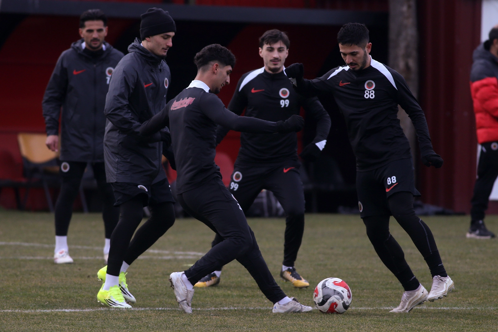 Kırmızı-siyahlılar, Beştepe İlhan Cavcav Tesisleri'ndeki haftanın ilk idmanına ısınmaya yönelik koordinasyon ve çabukluk çalışmasıyla başladı. Futbolcular, 5'e 2 top kapma oyununun ardından saha kenarına kurulu platformlarda çeşitli pas organizasyonları çalıştı.