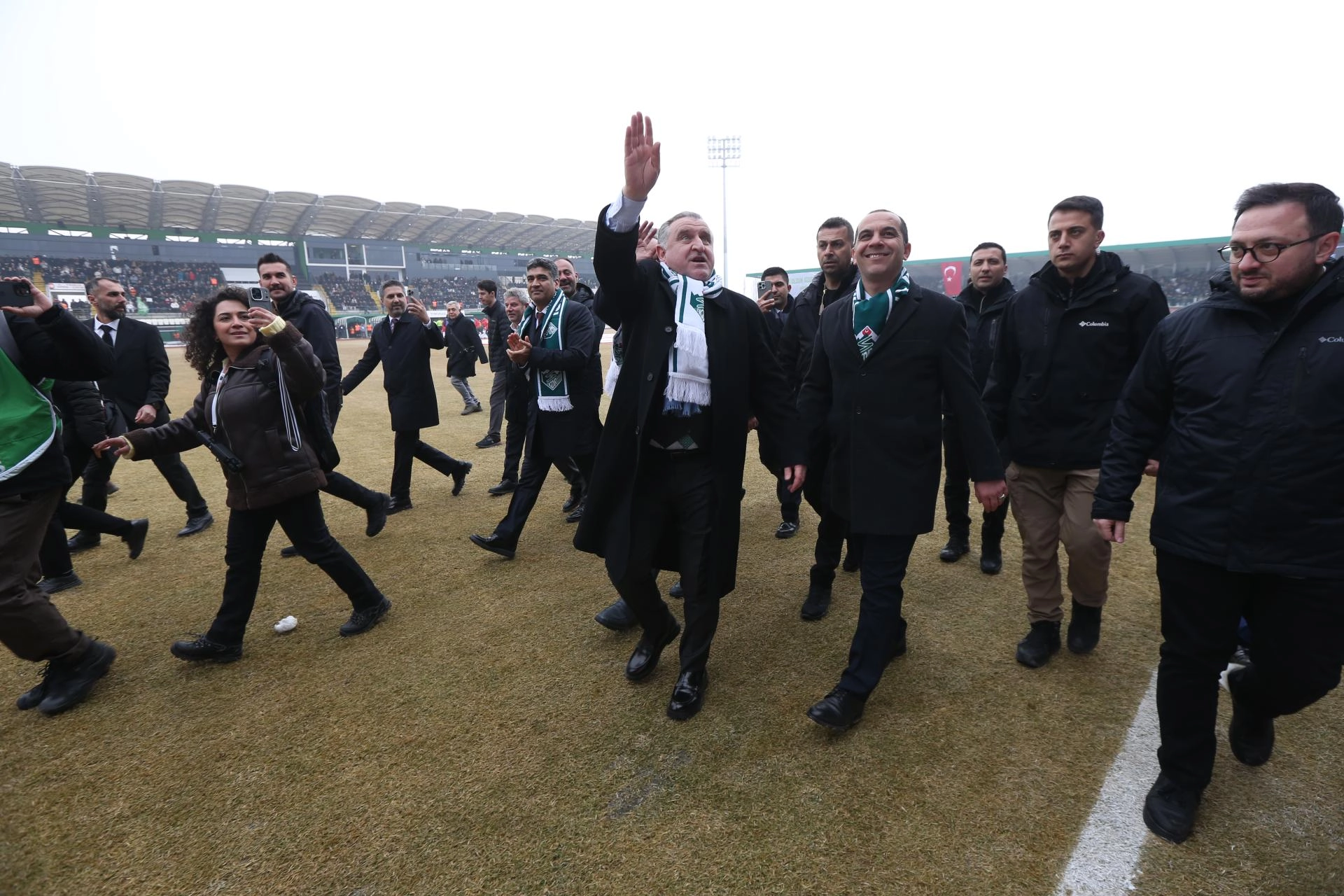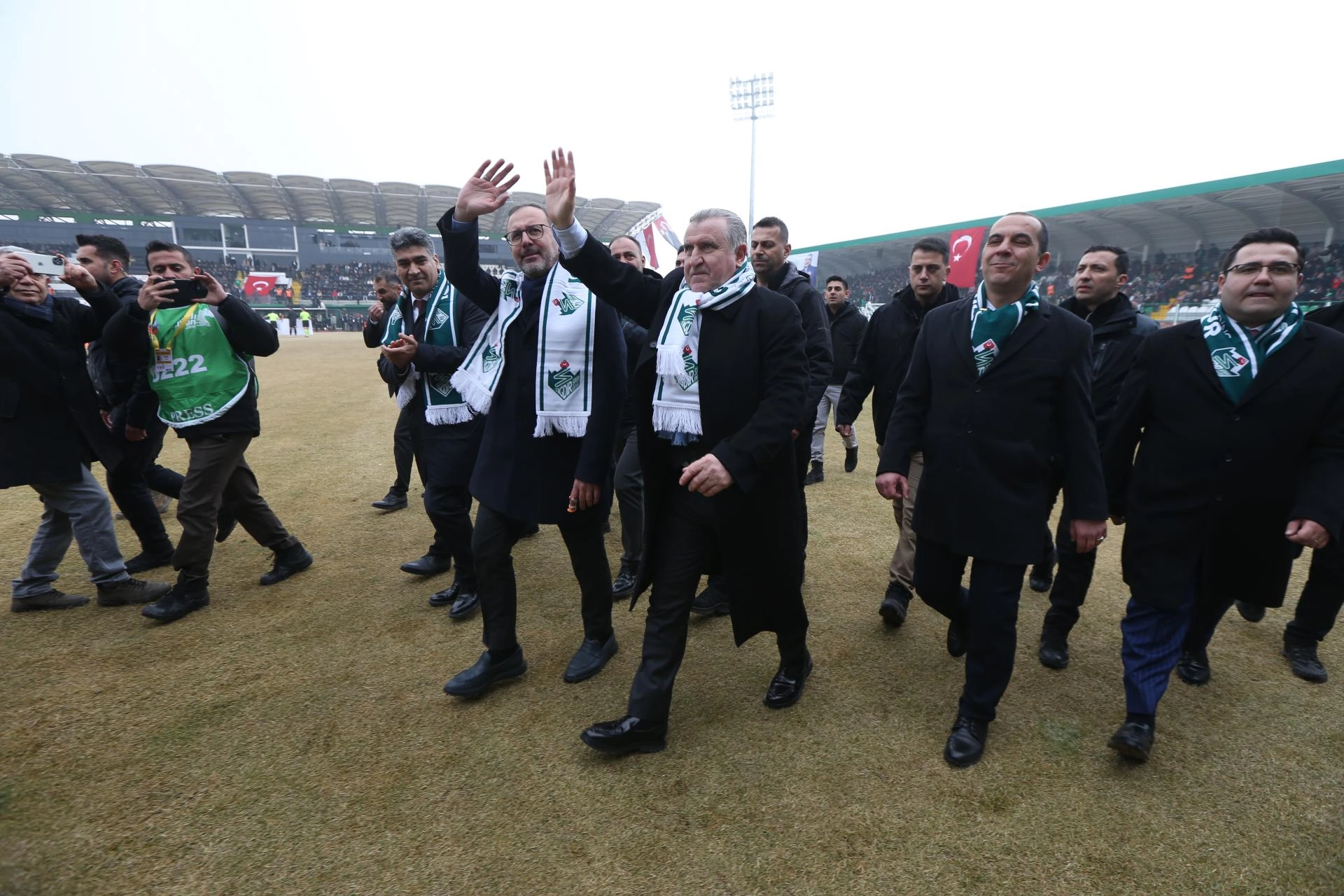 Bakan Bak ve beraberindekiler, stadı gezerek futbolseverleri selamladı, daha sonra Alagöz Holding Iğdır FK-Manisa FK maçını izledi.
