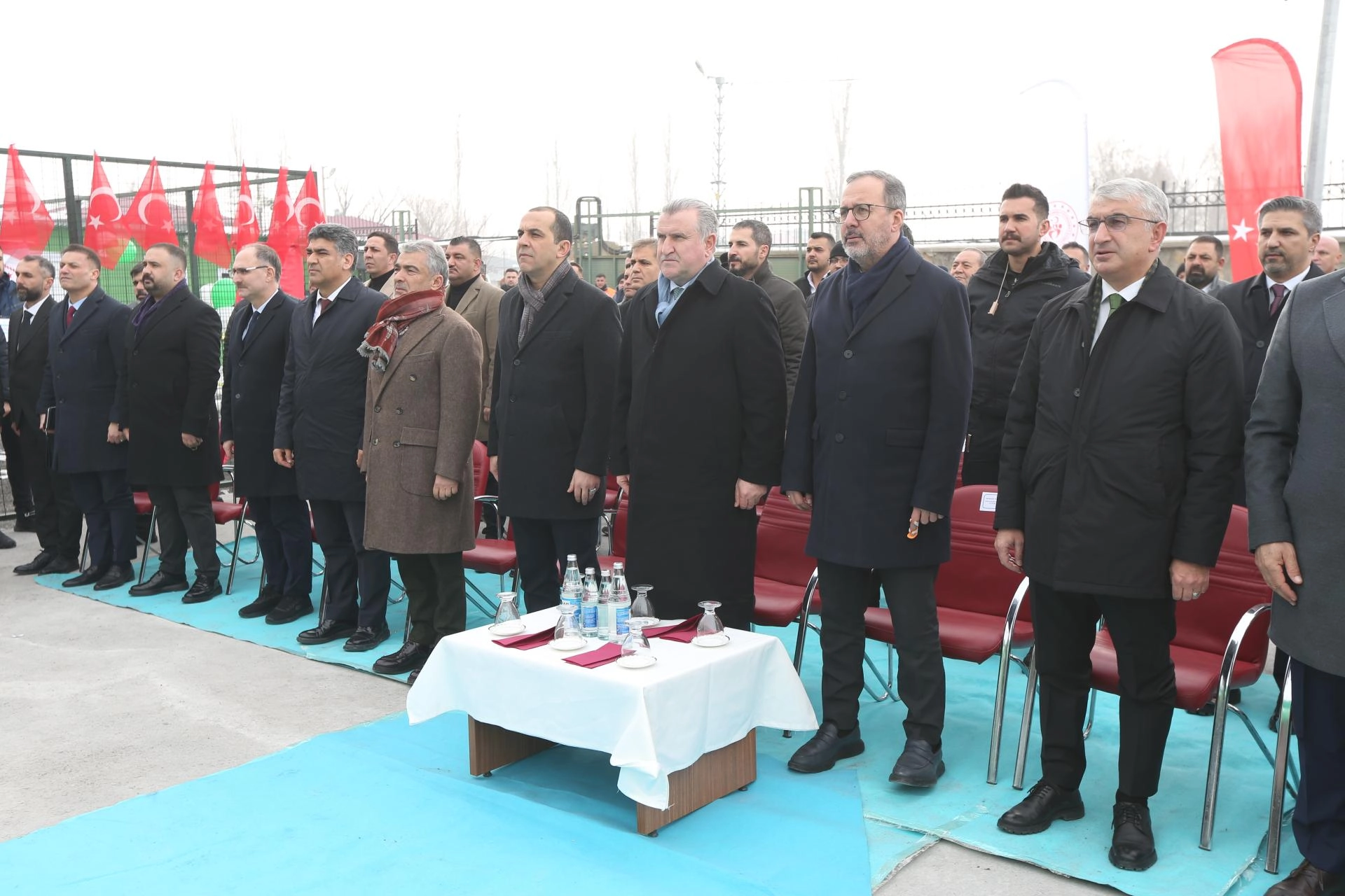 Konuşmaların ardından Bakan Bak, Iğdır Valisi Fırat Taşolar, AK Parti İzmir Milletvekili Mehmet Muharrem Kasapoğlu, AK Parti Iğdır Milletvekili ve Alagöz Holding Iğdır FK Başkanı Cantürk Alagöz, siyasi parti temsicileri, kurum müdüleri ve sporcular stadın açılışını gerçekleştirdi.