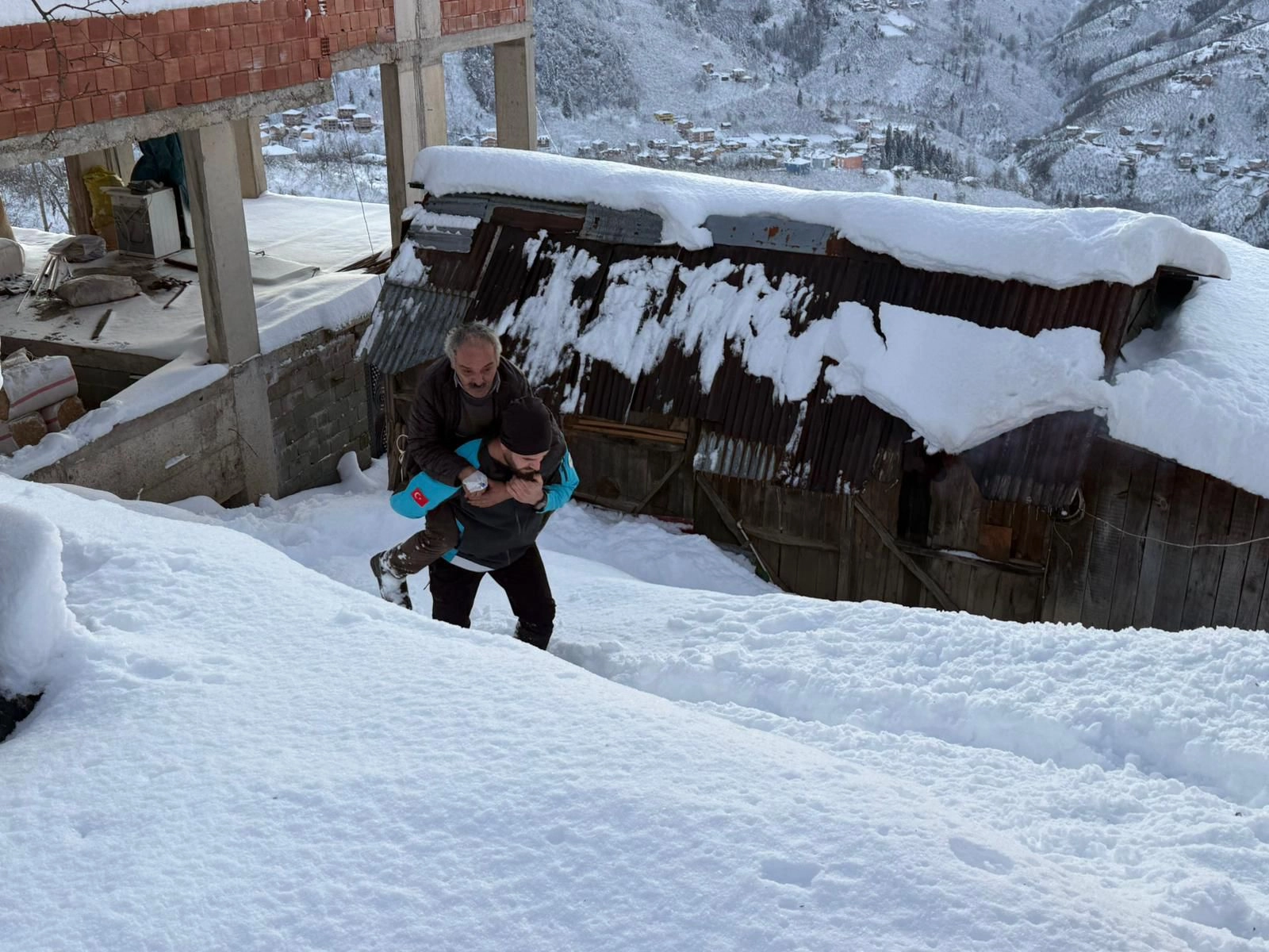 Ekipler, İl Özel İdaresine ait iş makinesinin de yardımıyla hastalanan kişinin evine ulaştı.