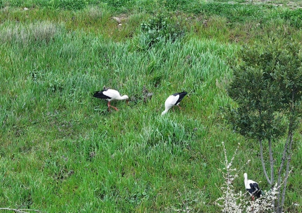 Bahar aylarının gelmesi ve sıcaklıkların artmasıyla güneydeki ülkelerden kuzeye göç eden leylekler, kentin bazı noktalarında mola veriyor.
