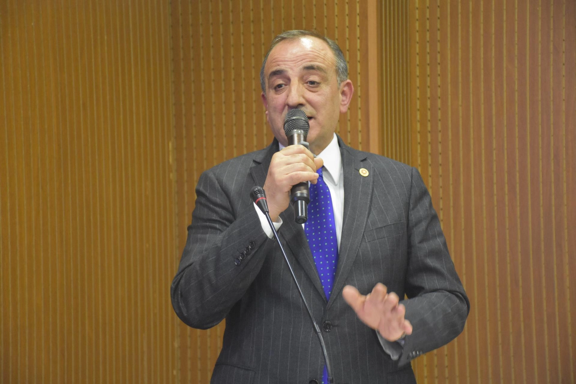 Gümüşhane Belediyesi Toplantı Salonu'nda düzenlenen program, saygı duruşu ve İstiklal Marşı'nın okunmasıyla başladı.