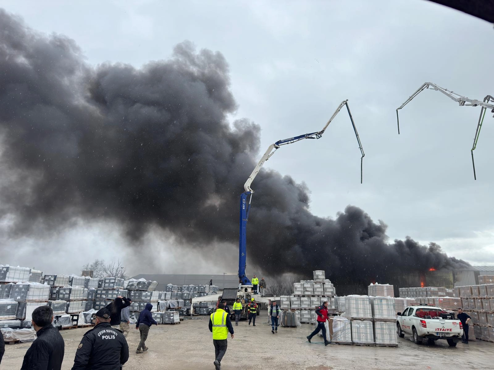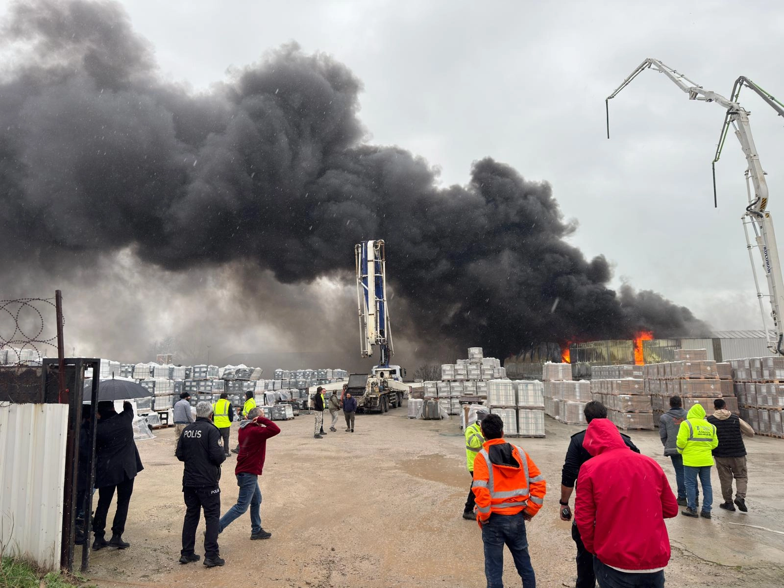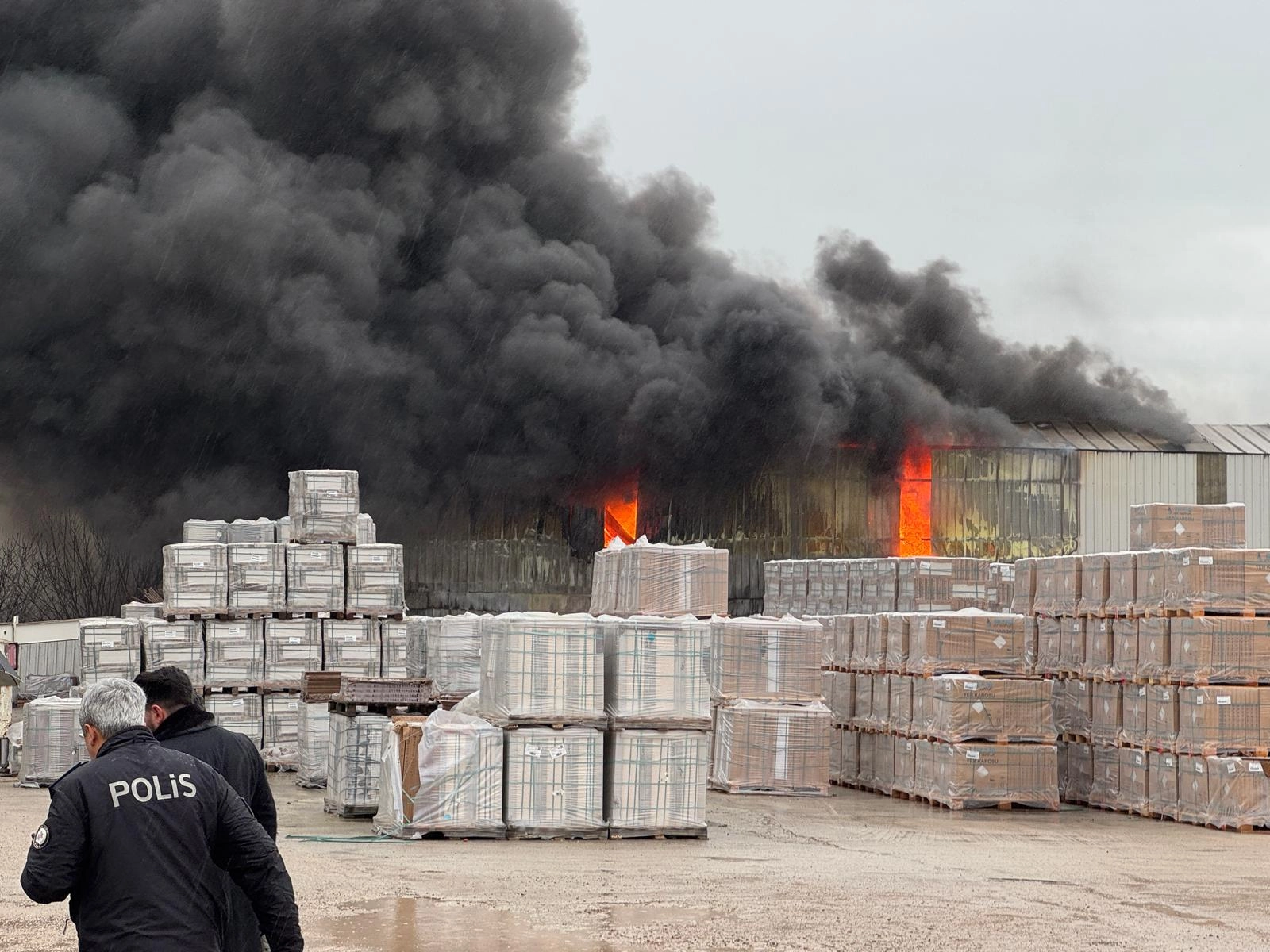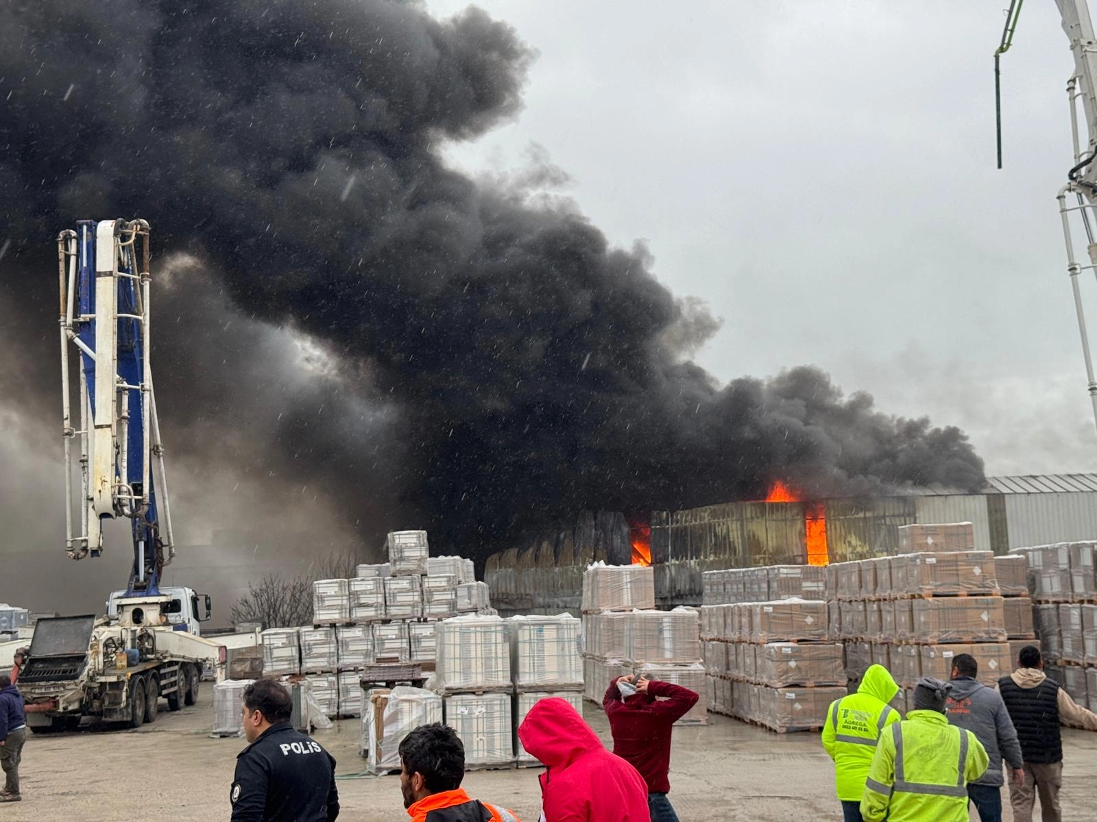 Ağır Sanayi Bölgesi Gümüşçeşme Mahallesi'ndeki bir yapı malzemesi firmasına ait depoda henüz bilinmeyen nedenle yangın çıktı.
