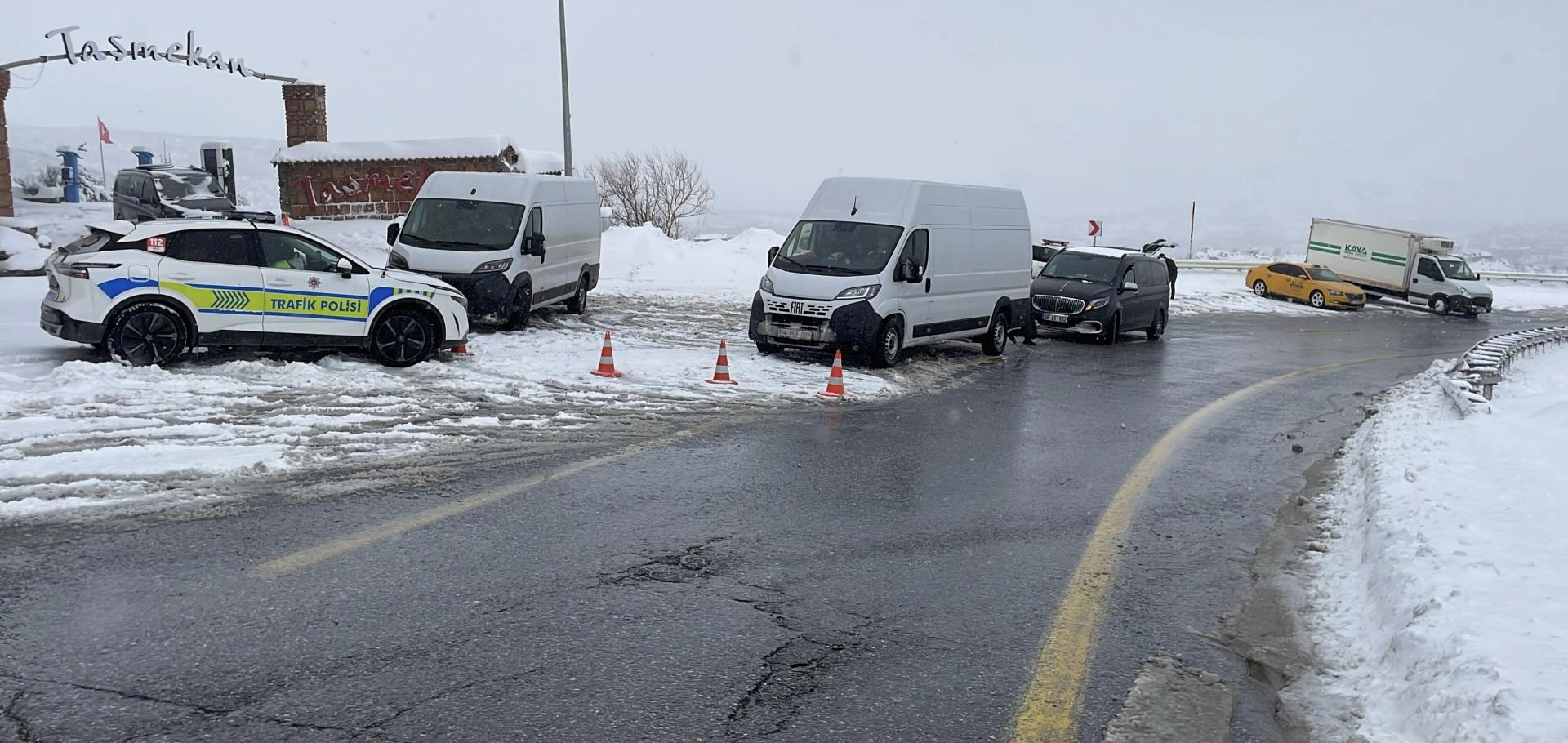 Ekipler, tır ve çekici gibi araçların geçişine izin vermiyor. Karayolları ekipleri de yollarda temizlik çalışmalarını sürdürüyor.