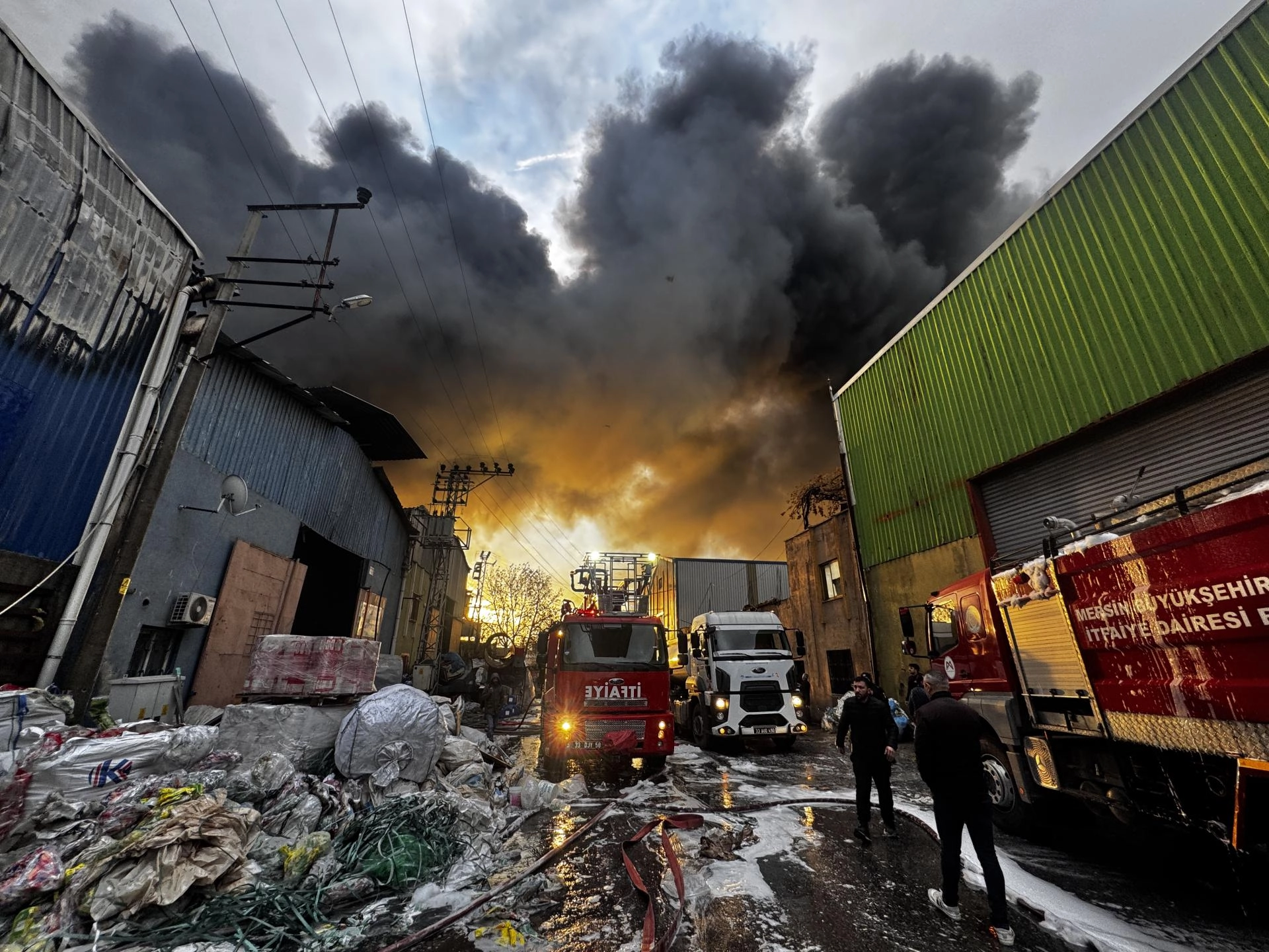 Yalınayak Mahallesi Hurdacılar Sitesi'nde kağıt ve plastik malzemelerin bulunduğu geri dönüşüm fabrikasının deposundan duman yükseldiğini görenler, durumu 112 Acil Çağrı Merkezine bildirdi.