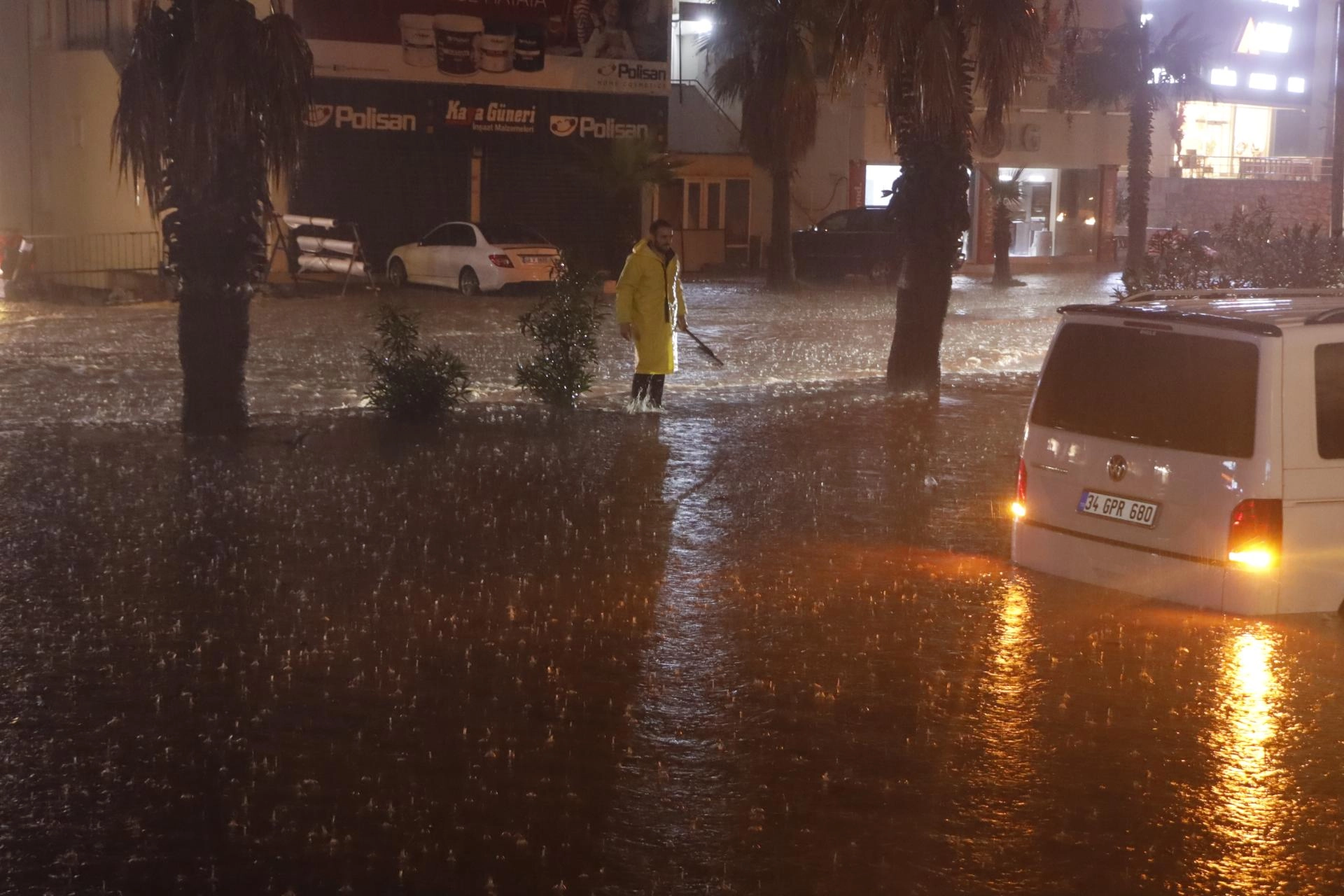 Bodrum'da akşam saatlerinde başlayan sağanak zaman zaman şiddetini artırdı.