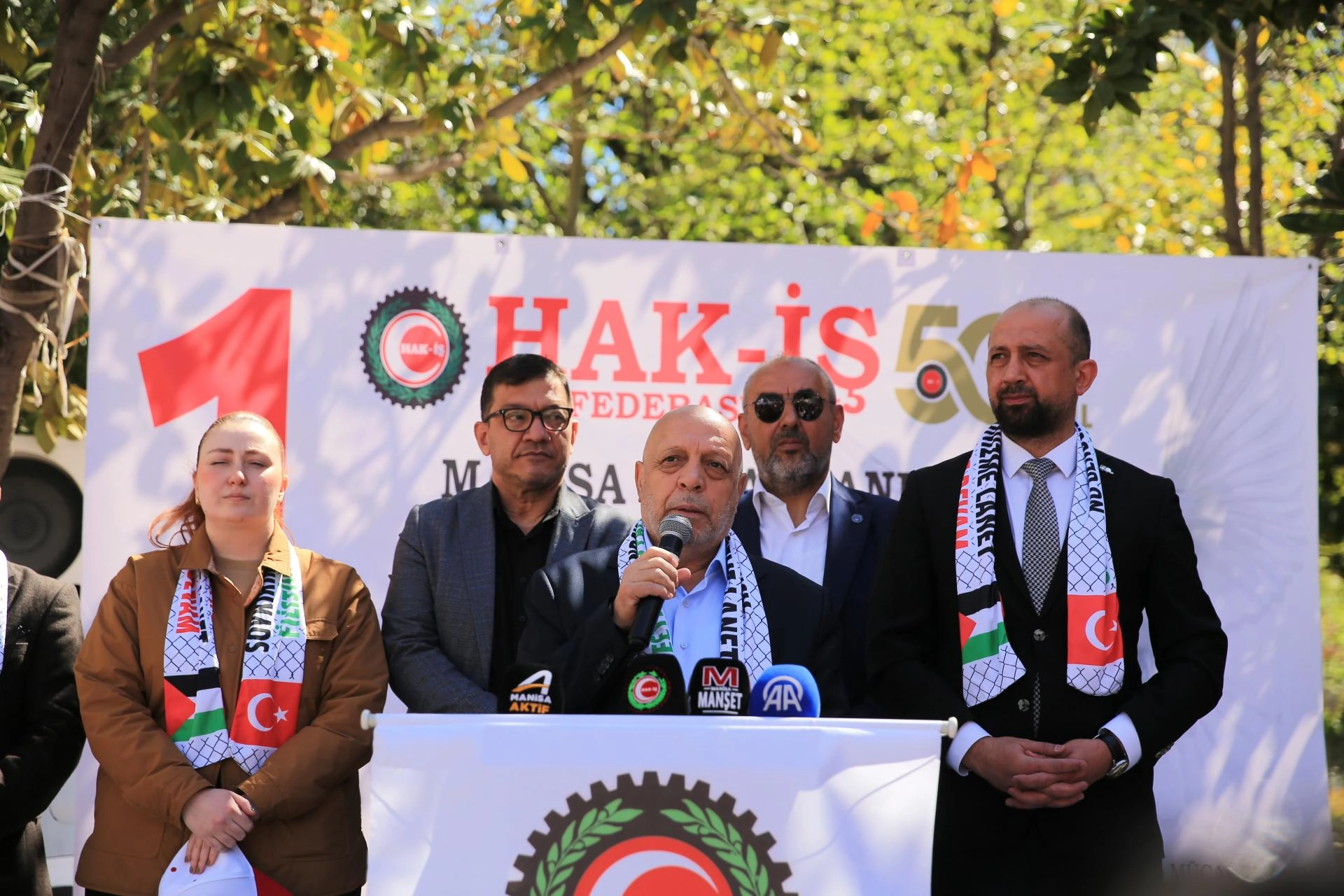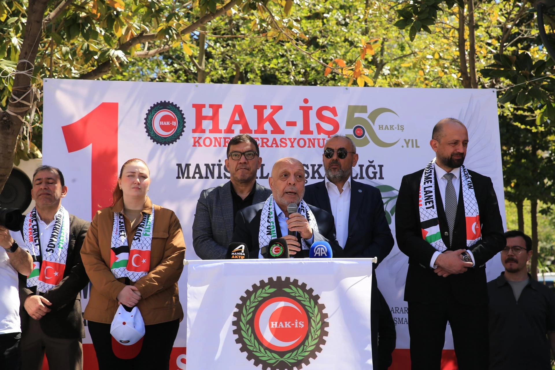 "HAK-İŞ olarak 1 Mayıs etkinliklerini yalnızca bir güne sığdırmıyoruz. 1 Mayıs'ı bir haftaya yayarak ülkemizin farklı bölgelerinde çalışanlarımızın sorunlarını gündeme taşıyacağız. 1 Mayıs'ı anlamına uygun şekilde kaos, kargaşa, provokasyonlara fırsat vermeden dualarla, halaylarla ve mehterlerle kutlayacağız. Halay çekerek, türkü söyleyerek ama aynı zamanda birliğimizi, beraberliğimizi de asla unutmadan alanlarda olacağız."