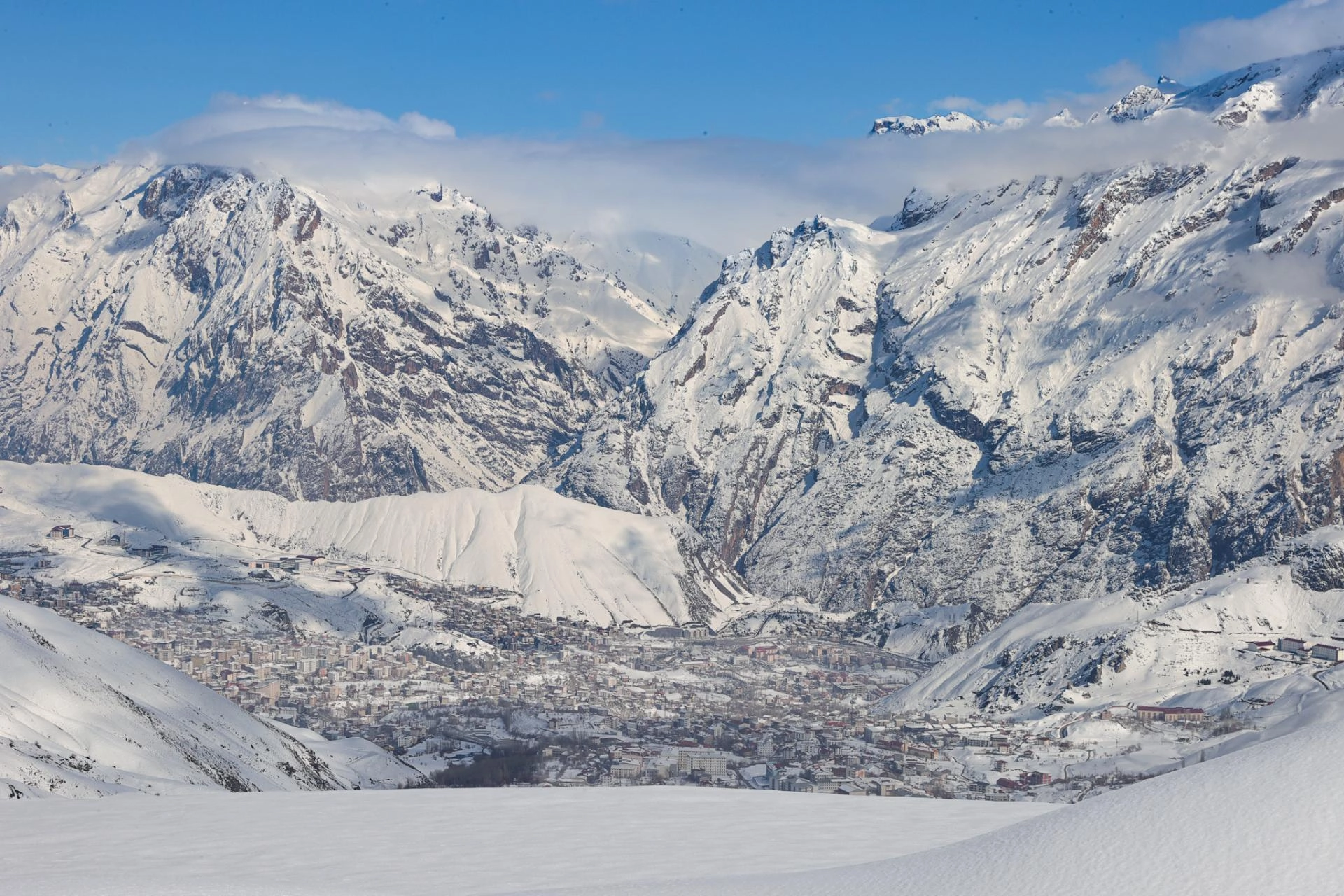 Büyük bölümü dağlık ve engebeli arazi yapısına sahip kentte son yağışların ardından yüksek kesimlerde kar kalınlığı yer yer 5-6 metreyi buldu.