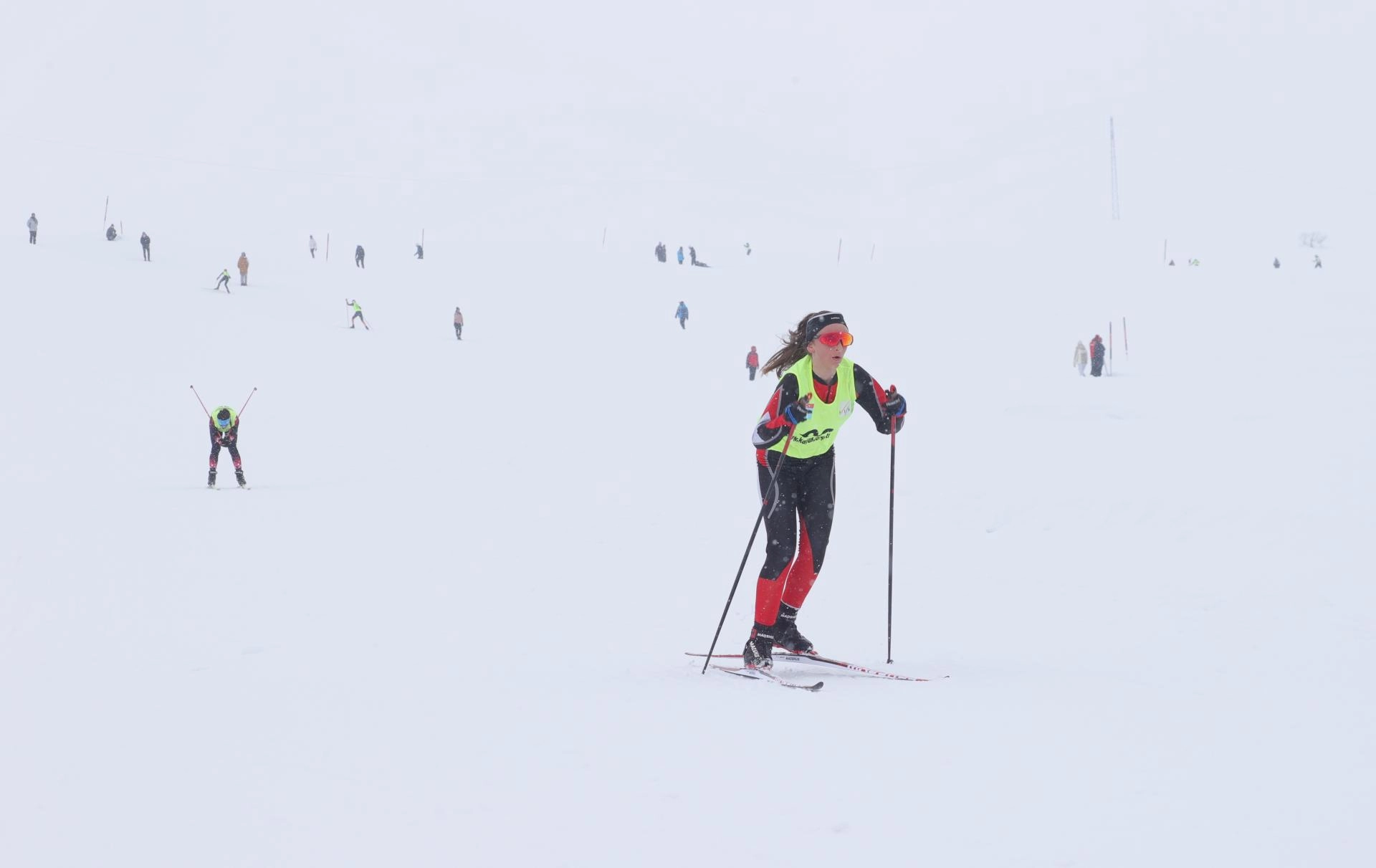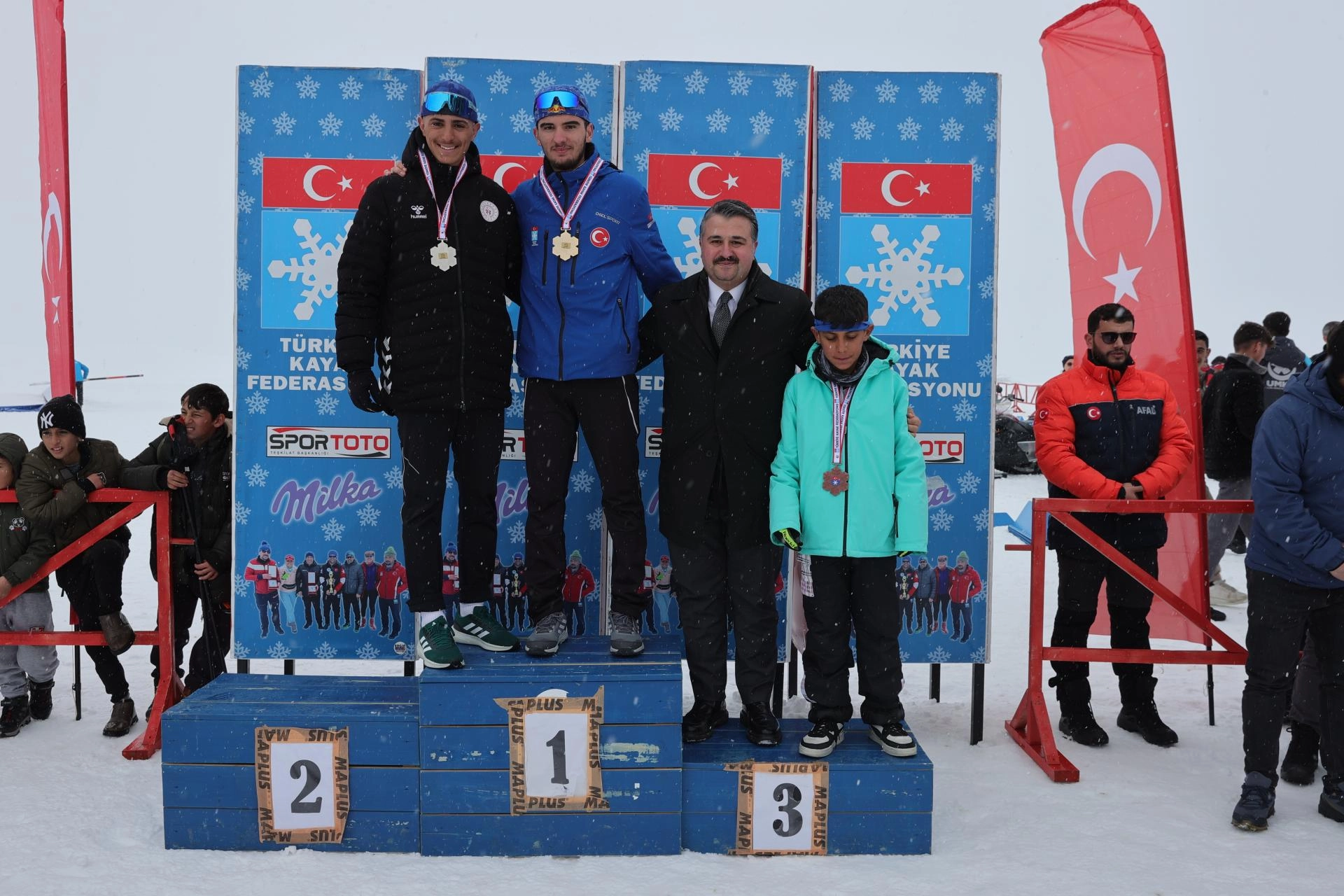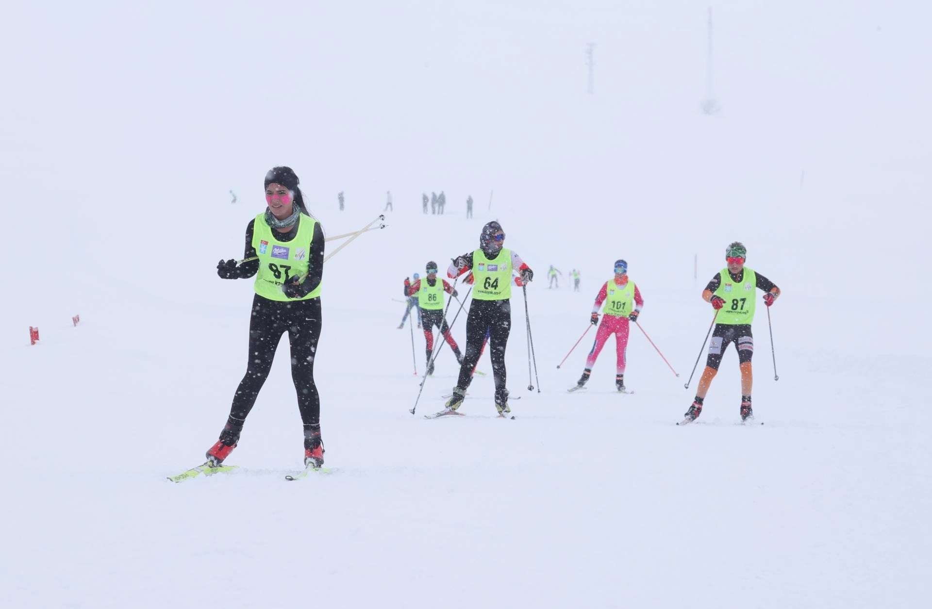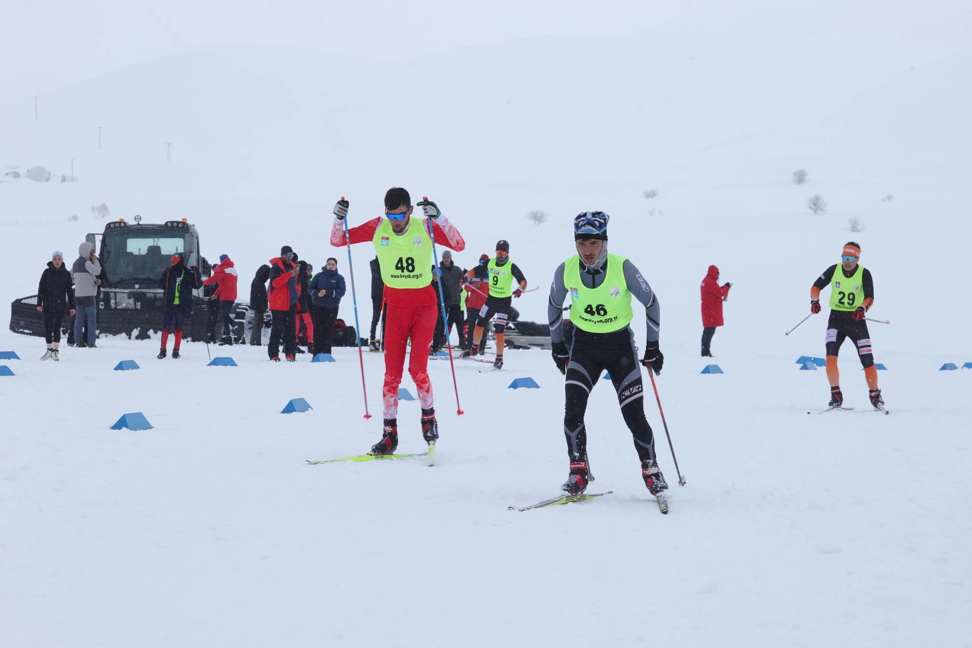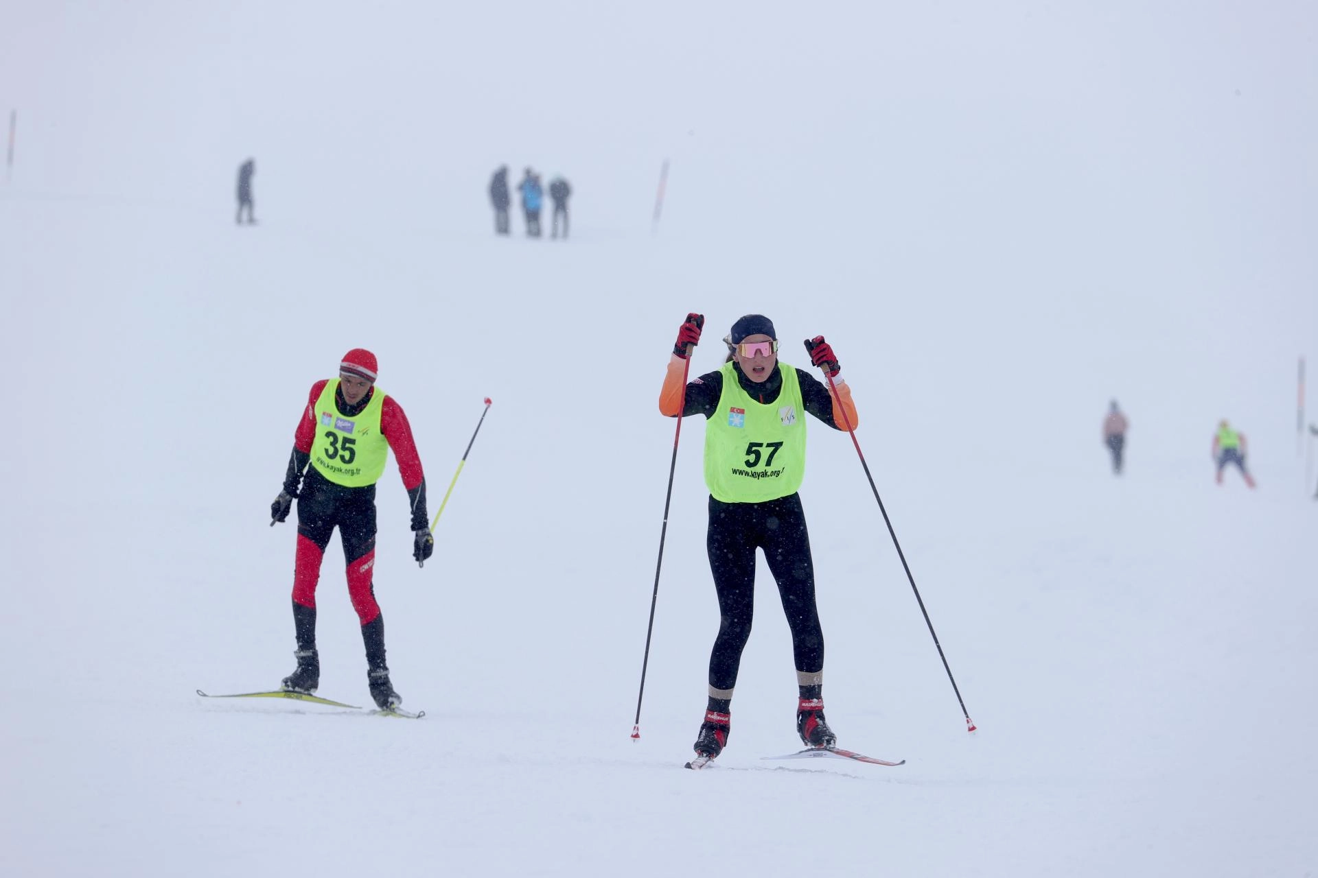 İkinci gün kar yağışı altında yapılan müsabakalarda serbest stilde yarışan sporcular, dereceye girmek için kıyasıya mücadele etti.