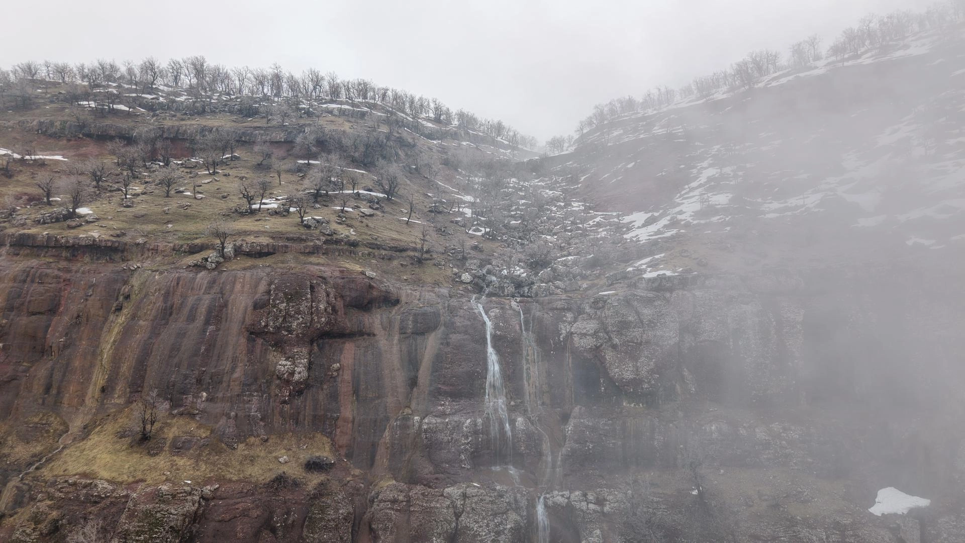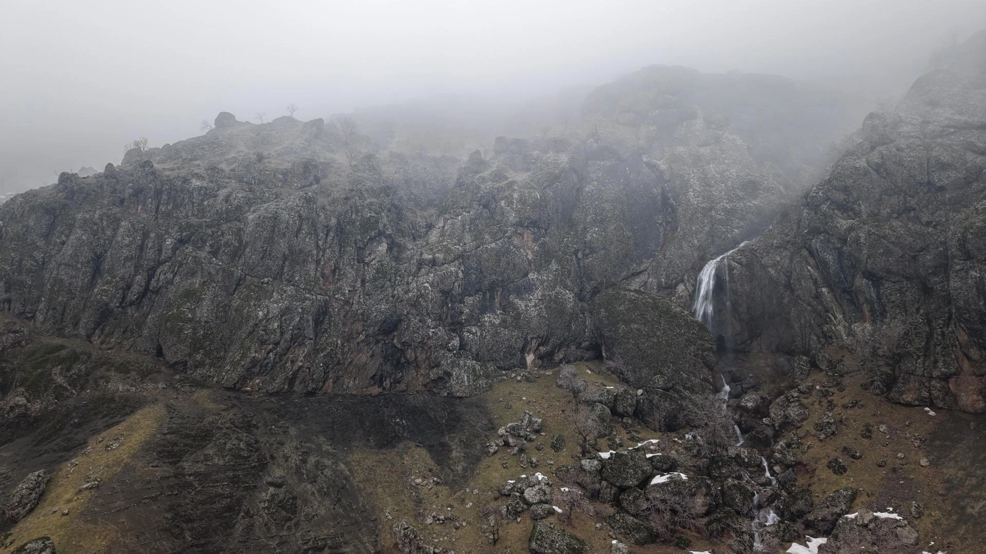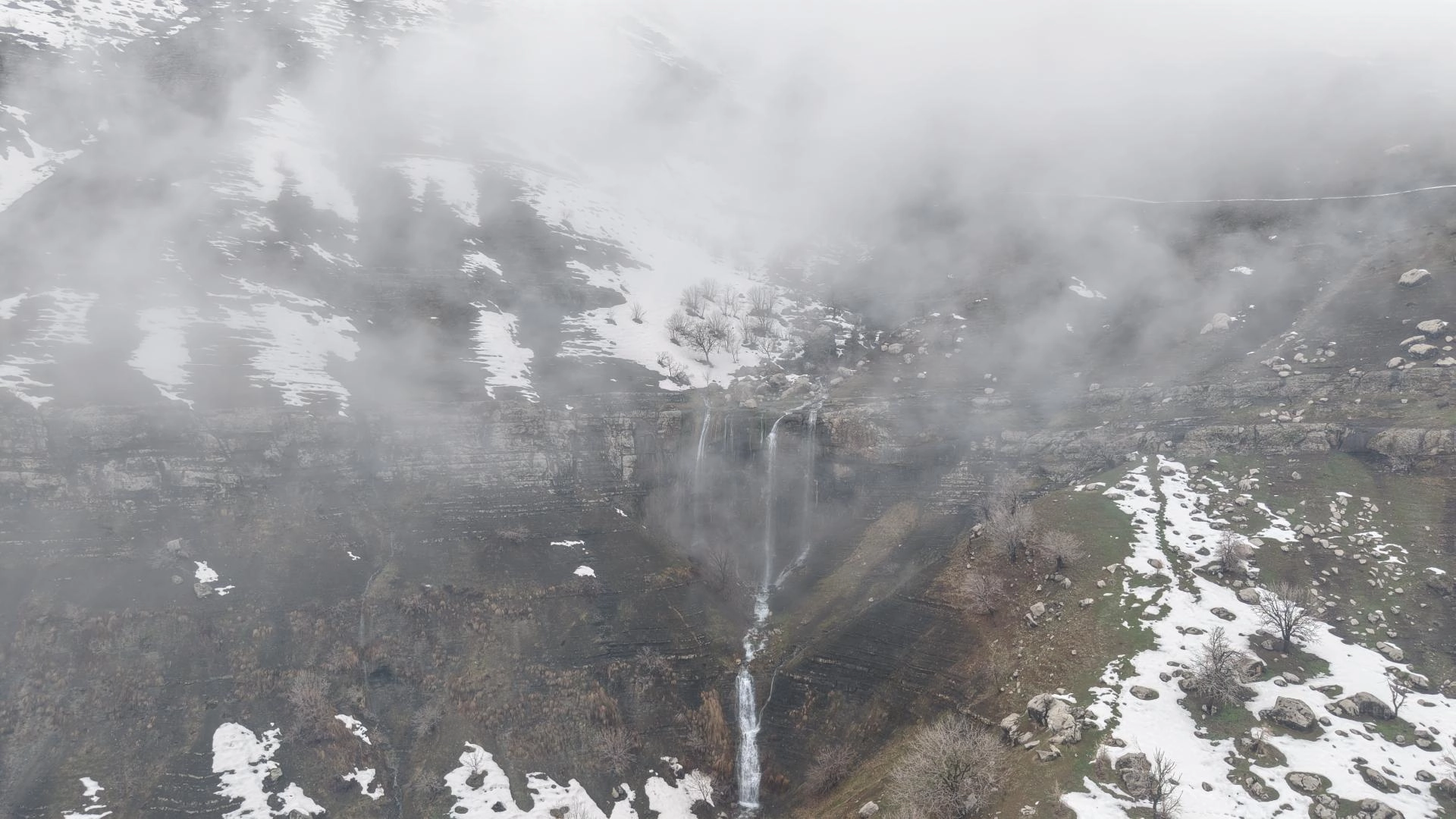HAKKARİ (AA) - Hakkari'nin Derecik ilçesinde, karların erimesiyle yeniden akmaya başlayan şelaleler ile yüksek kesimlerde oluşan sis tabakası dronla görüntülendi.