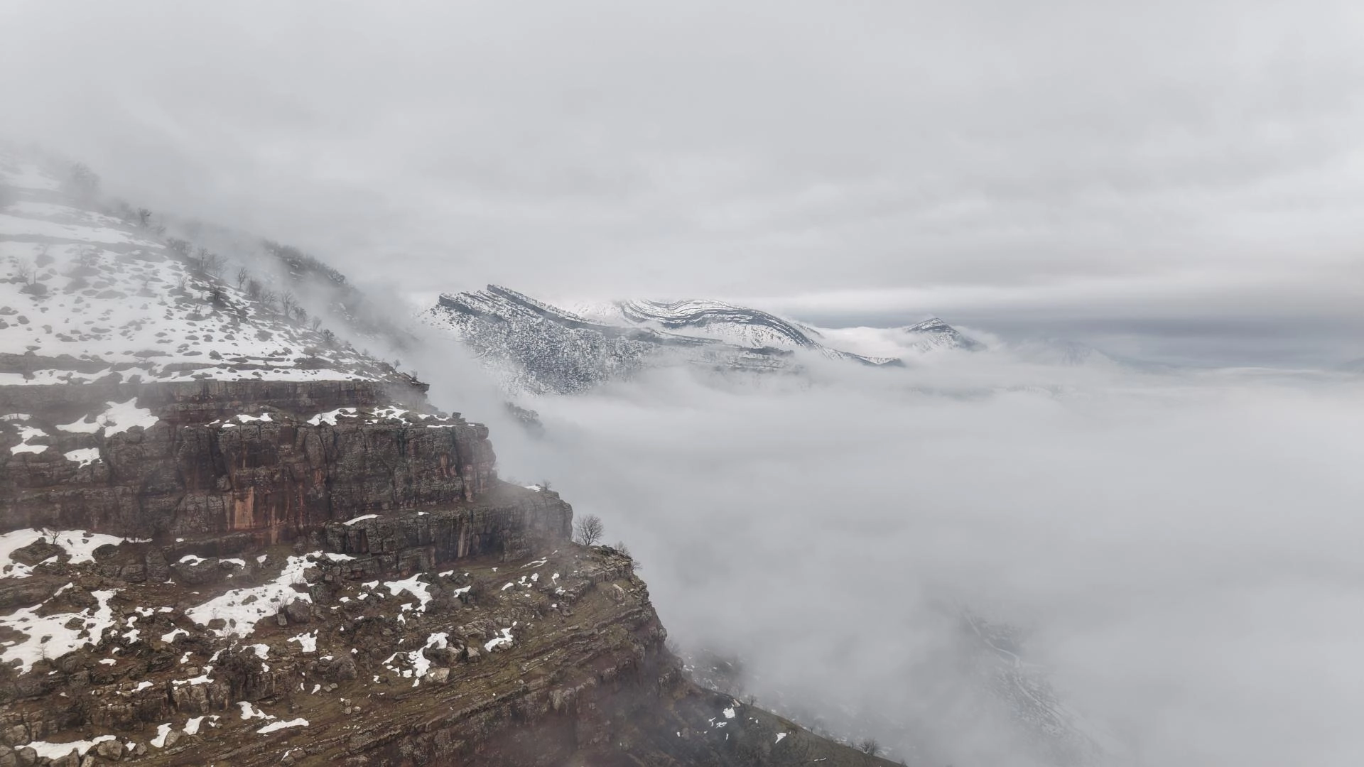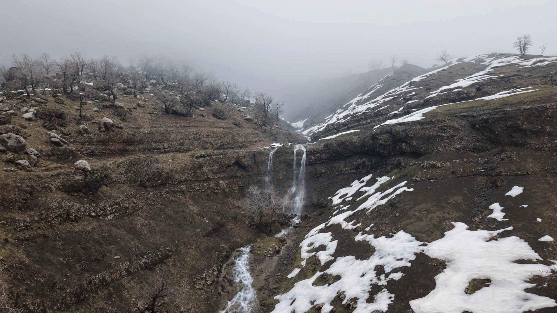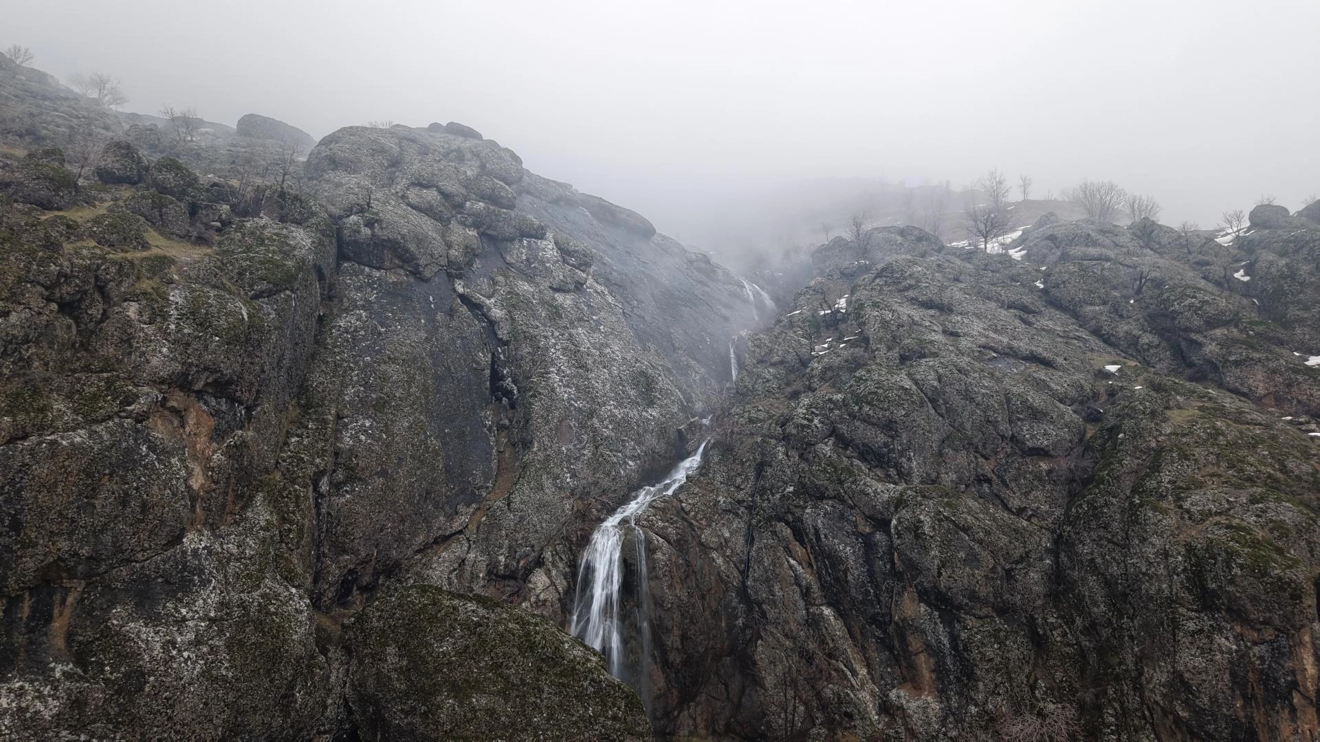 HAKKARİ (AA) - Hakkari'nin Derecik ilçesinde, karların erimesiyle yeniden akmaya başlayan şelaleler ile yüksek kesimlerde oluşan sis tabakası dronla görüntülendi.