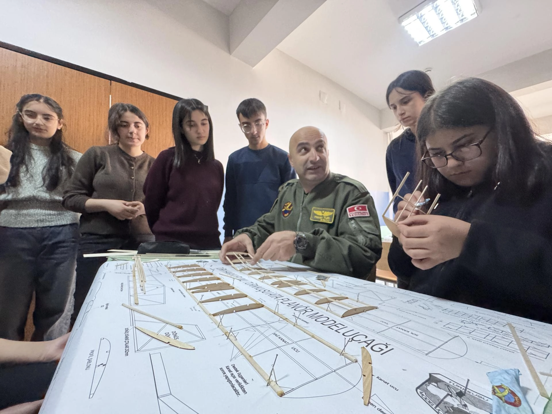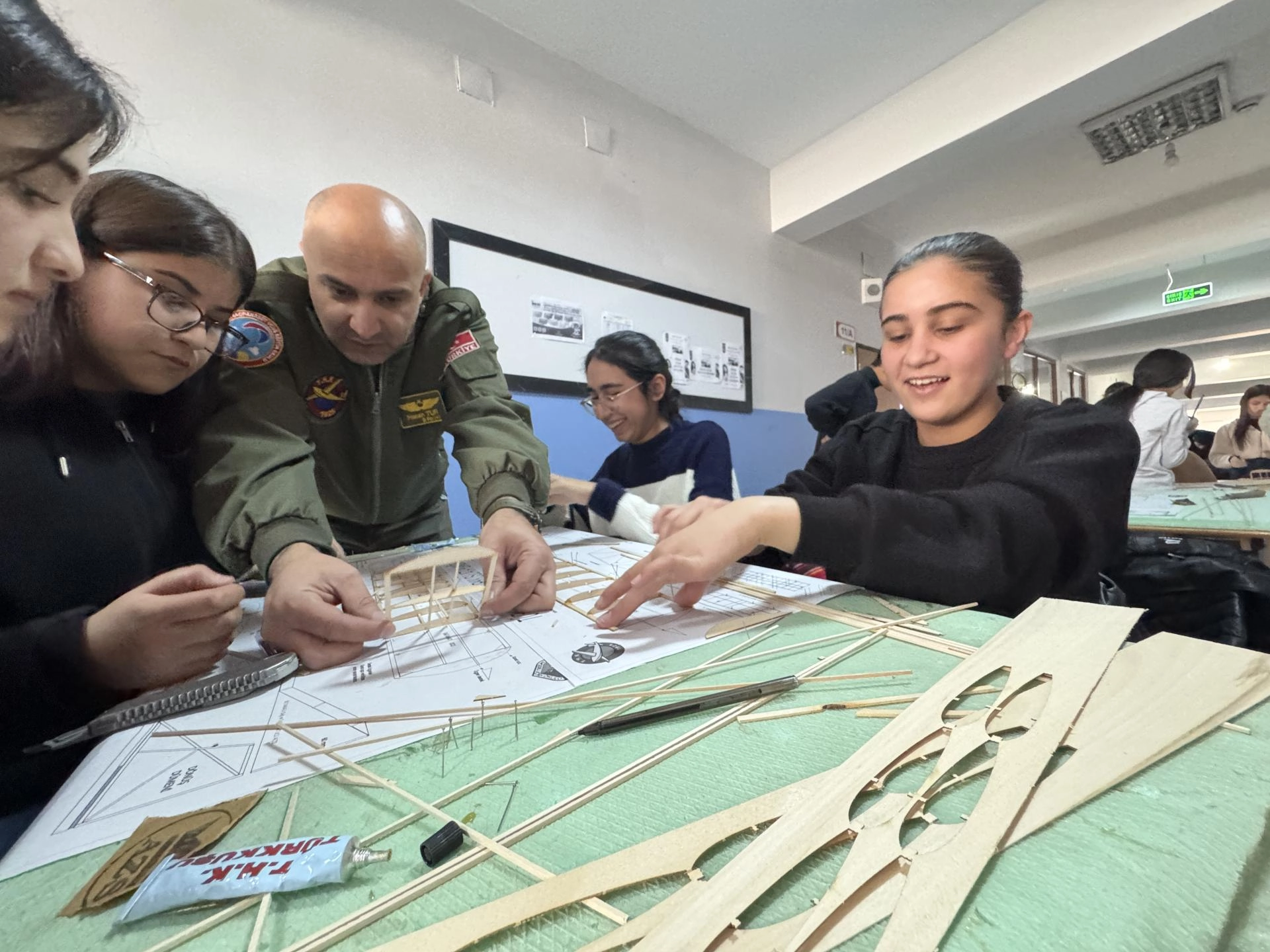 THK tarafından temin edilen ahşap malzemelerle iki gün süren eğitimde model uçak yapan, aerodinamik yapı, uçuş prensipleri ve uçağın havada kalma dinamiklerini öğrenen öğrenciler, yaptıkları uçakları uçurdu.