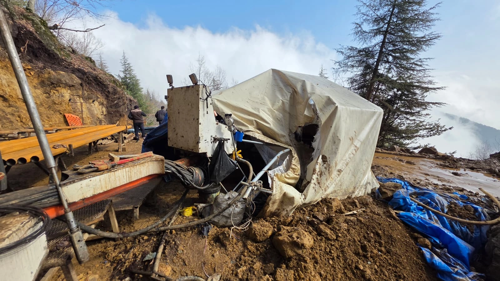 Zeytinoba Mahallesi'ndeki dağlık alanda sondaj çalışması yapan firmanın bekçisi Ubeyd Dinçbaş'ın konakladığı çadıra kaya parçası isabet etti.