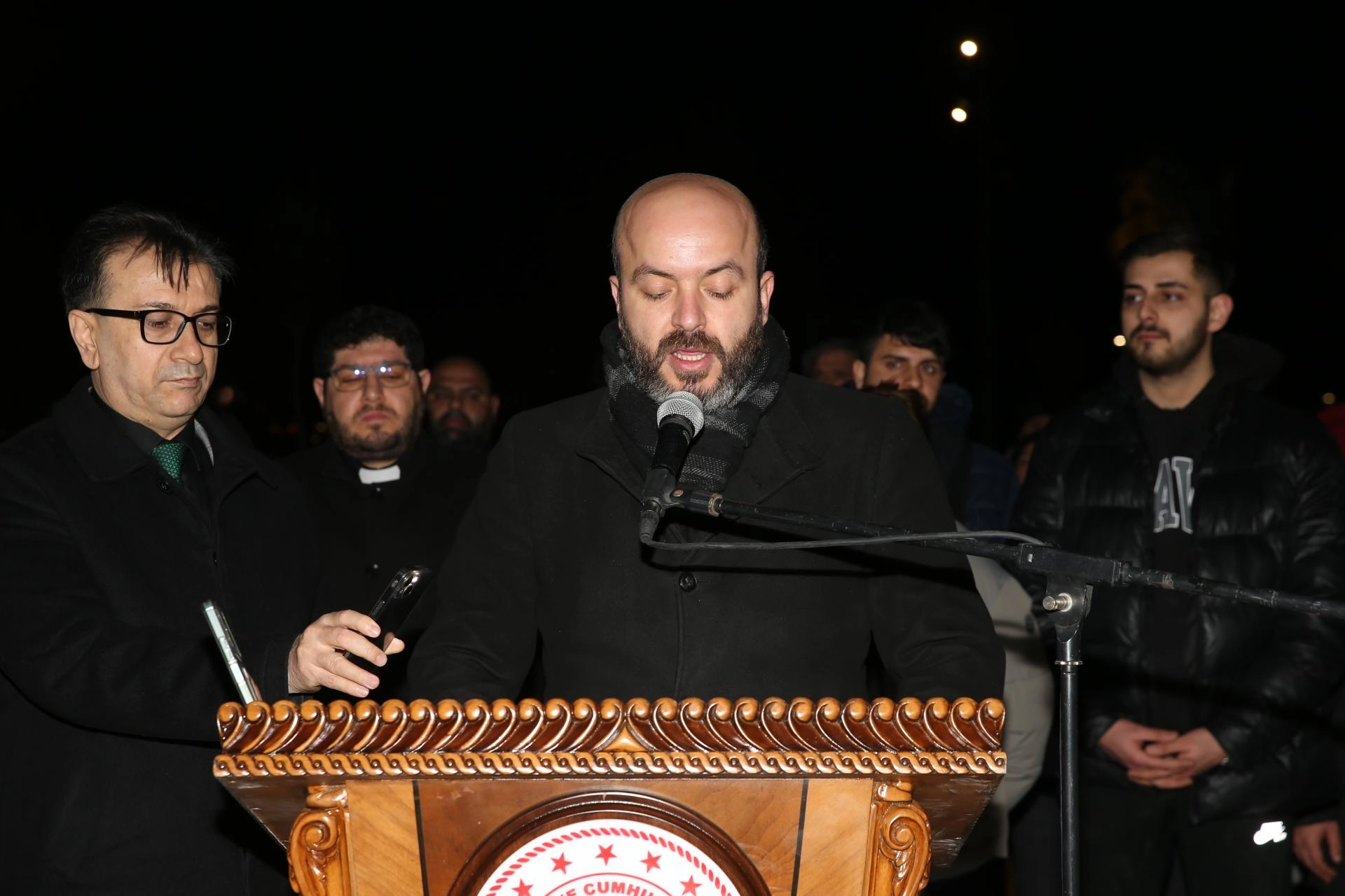 Programda, AK Parti Genel Başkan Yardımcısı Hüseyin Yayman, Vali Mustafa Masatlı, Zafer Partisi Genel Başkanı Ümit Özdağ, AK Parti Hatay Milletvekili Adem Yeşildal, MHP Hatay Milletvekili Lütfi Kaşıkçı, CHP Hatay Milletvekilleri Nermin Yıldırım Kara ve Mehmet Güzelmansur, Yeni Yol Partisi Hatay Milletvekili Necmettin Çalışkan, Büyükşehir Belediye Başkanı Mehmet Öntürk, Hatayspor Başkanı Ethem Çakır ve teknik direktörü Bekir İrtegün, sivil toplum kuruluşlarının temsilcileri ile vatandaşlar bir araya geldi.