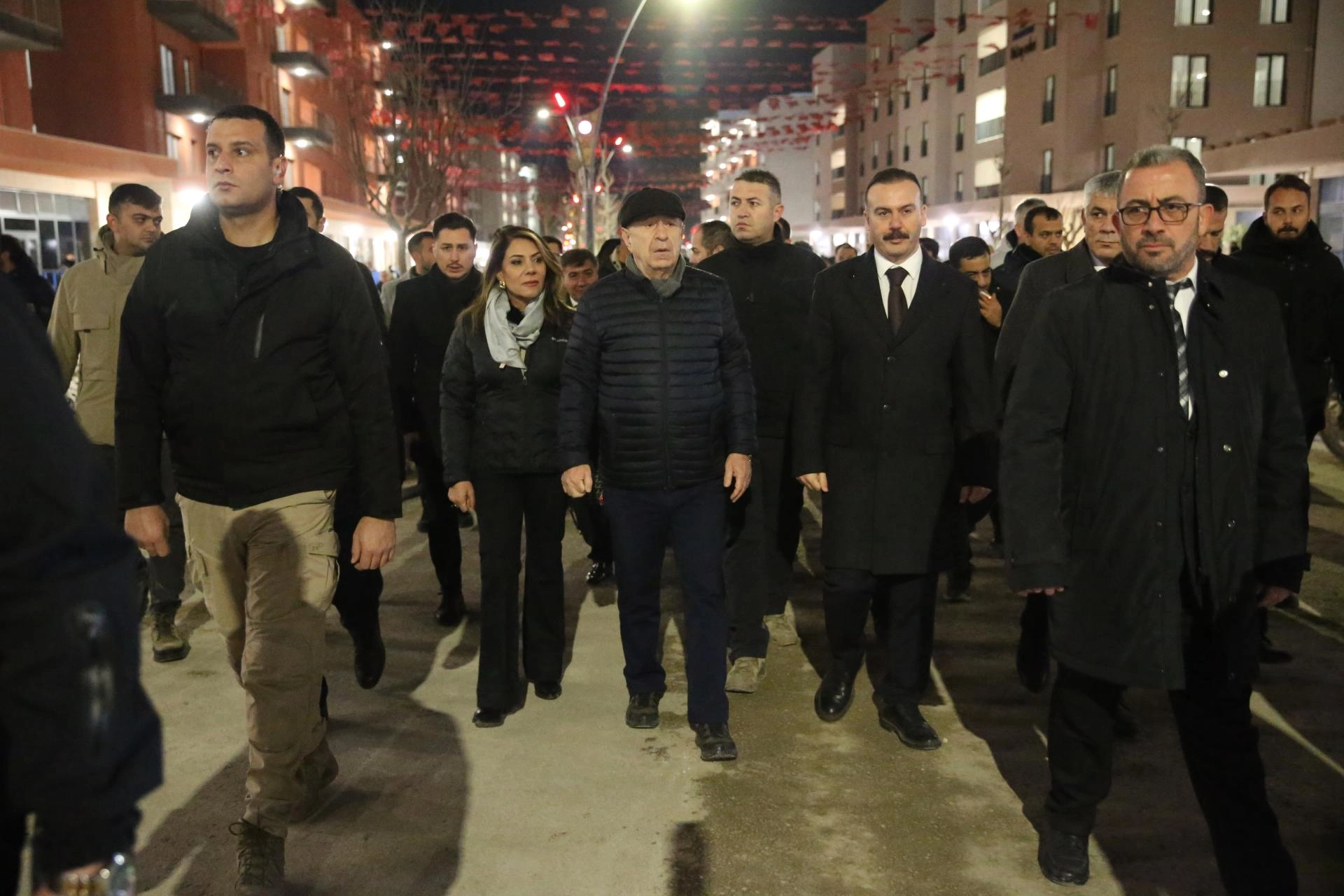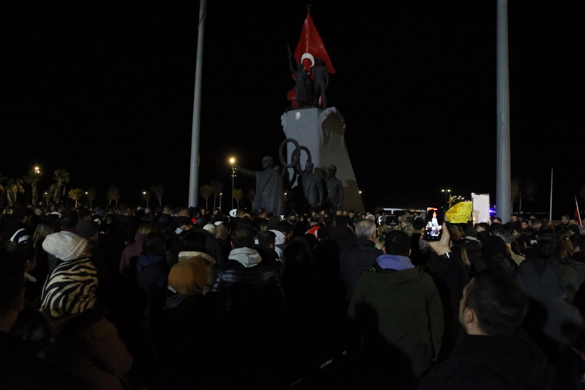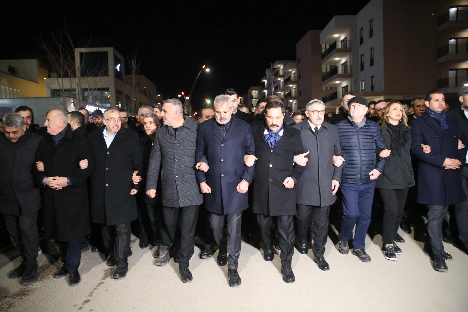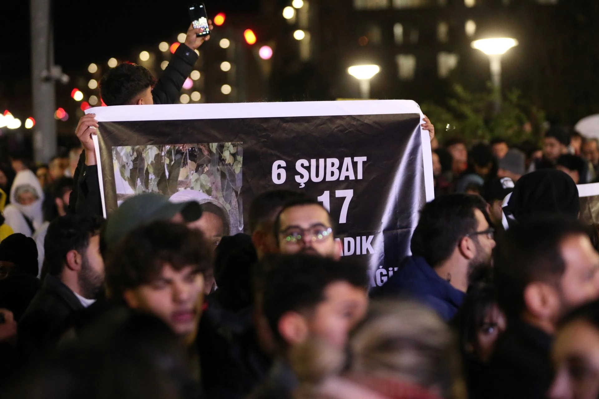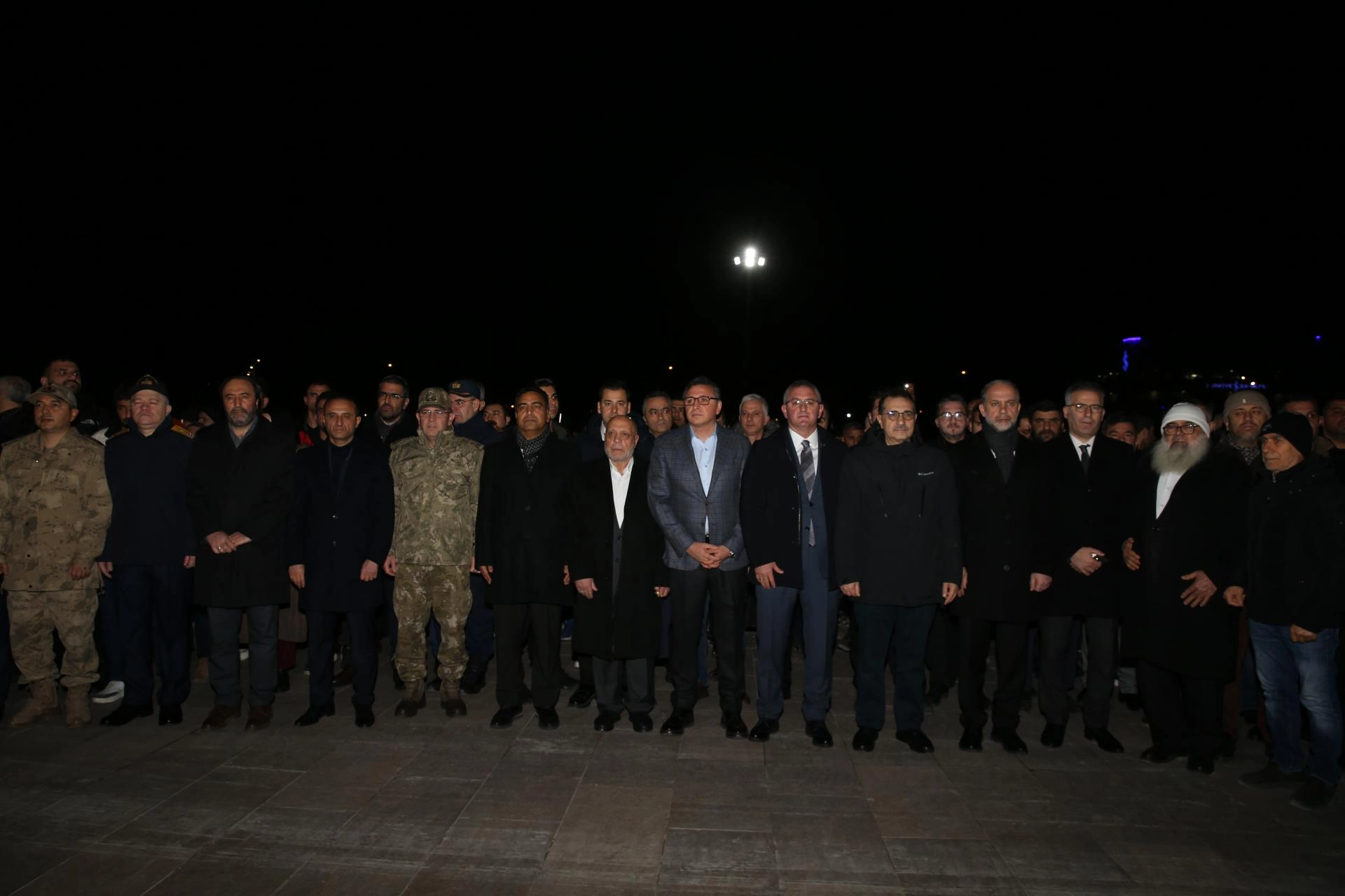 Kahramanmaraş merkezli ilk depremin meydana geldiği saat 04.17'de afette yaşamını yitirenler için 65 saniye saygı duruşunda bulunan katılımcılar, ardından İstiklal Marşı'nı okudu.