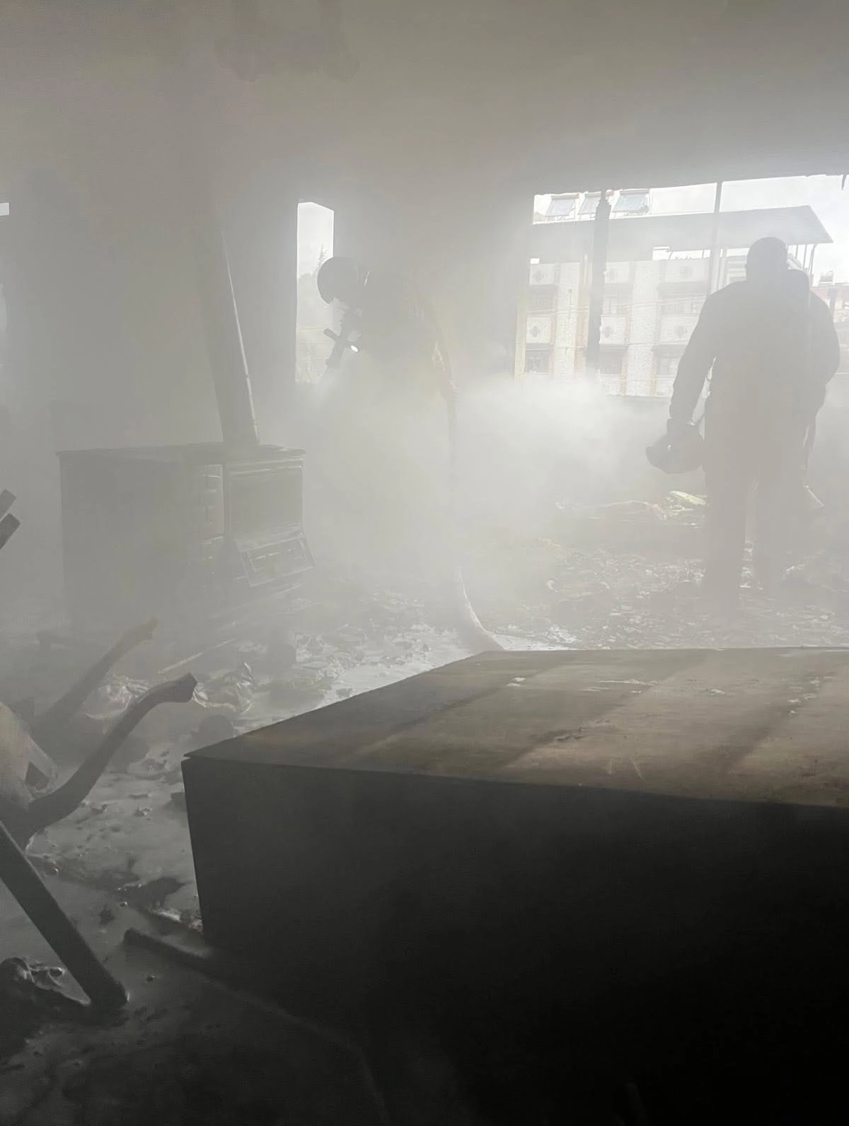 Harbiye Mahallesi'nde iki katlı binanın birinci katında bilinmeyen nedenle yangın çıktı.