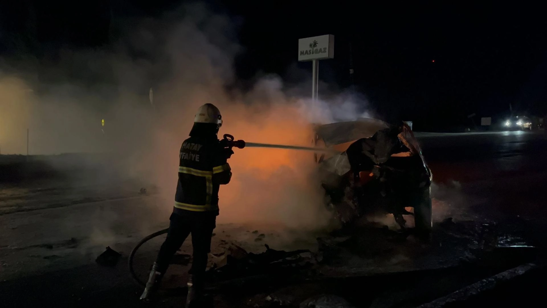 HATAY (AA) - Hatay'ın Kırıkhan ilçesinde kaza yapan otomobilde çıkan yangın itfaiye ekiplerince söndürüldü.