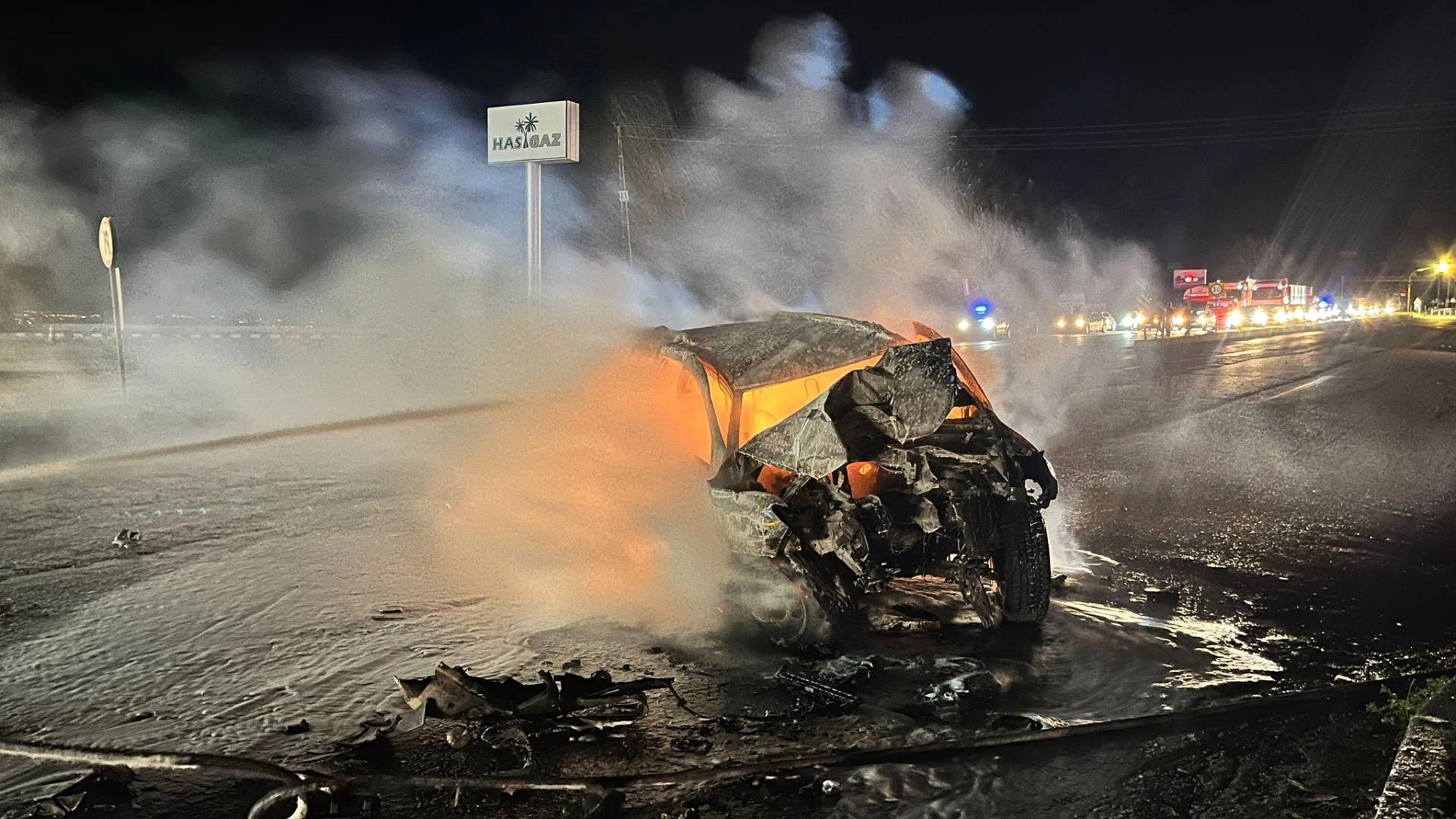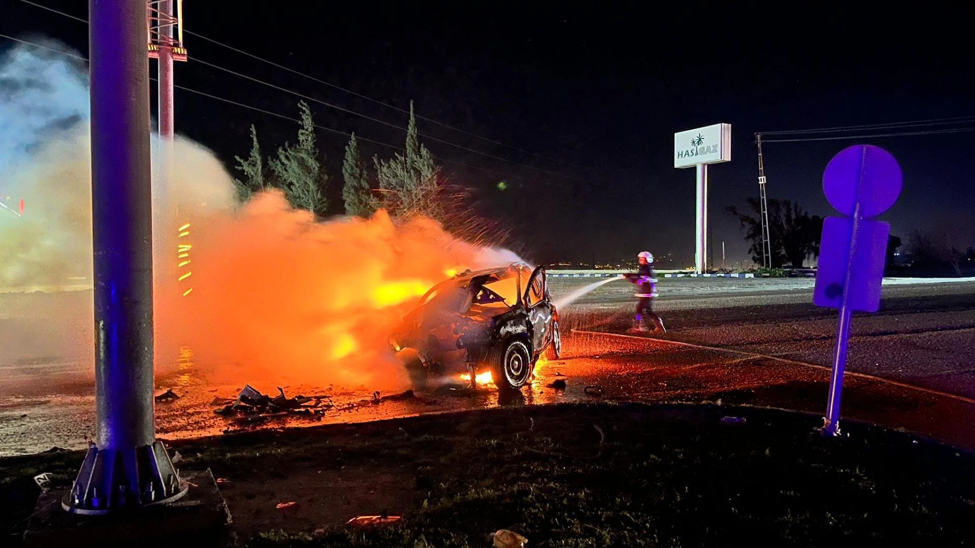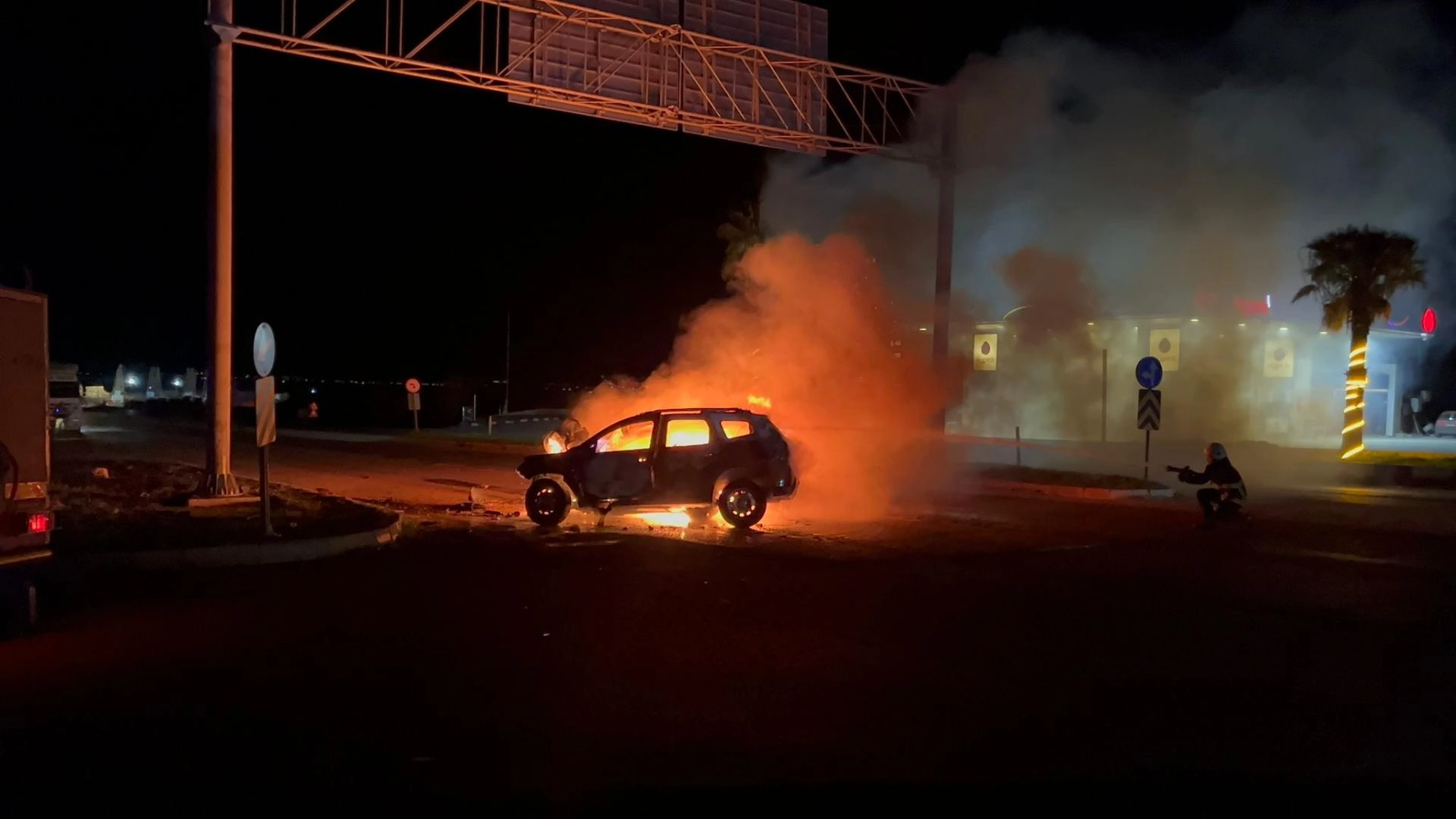 Çarpmanın etkisiyle otomobil alev alırken, Y.B. çevredekilerin yardımıyla araçtan çıkarıldı.