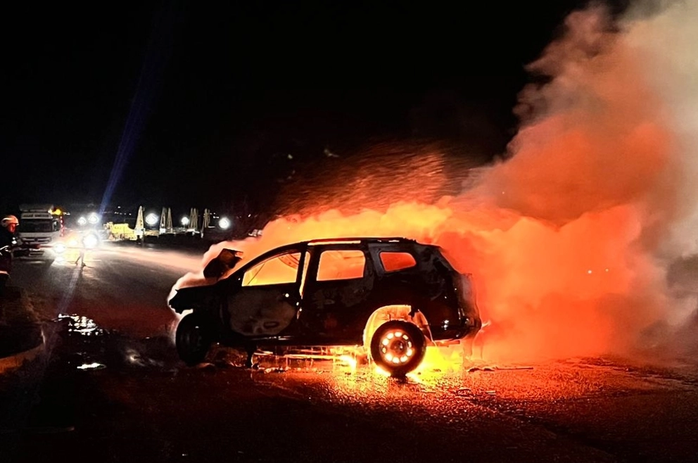 Ekiplerin müdahalesiyle söndürülen yangında, araç kullanılamaz hale geldi.