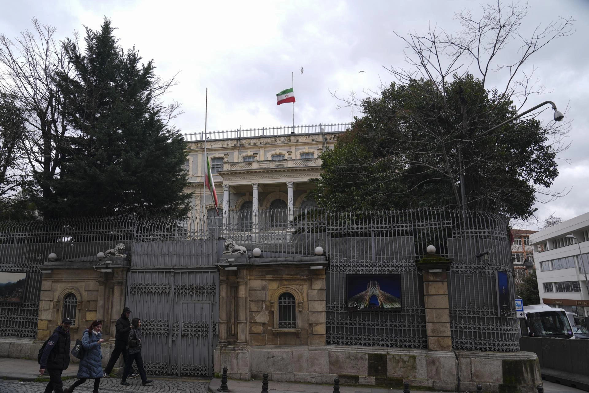 Bu kapsamda, İstanbul'daki İran İslam Cumhuriyeti Başkonsolosluğu'nda da bayraklar yarıya indirildi.
