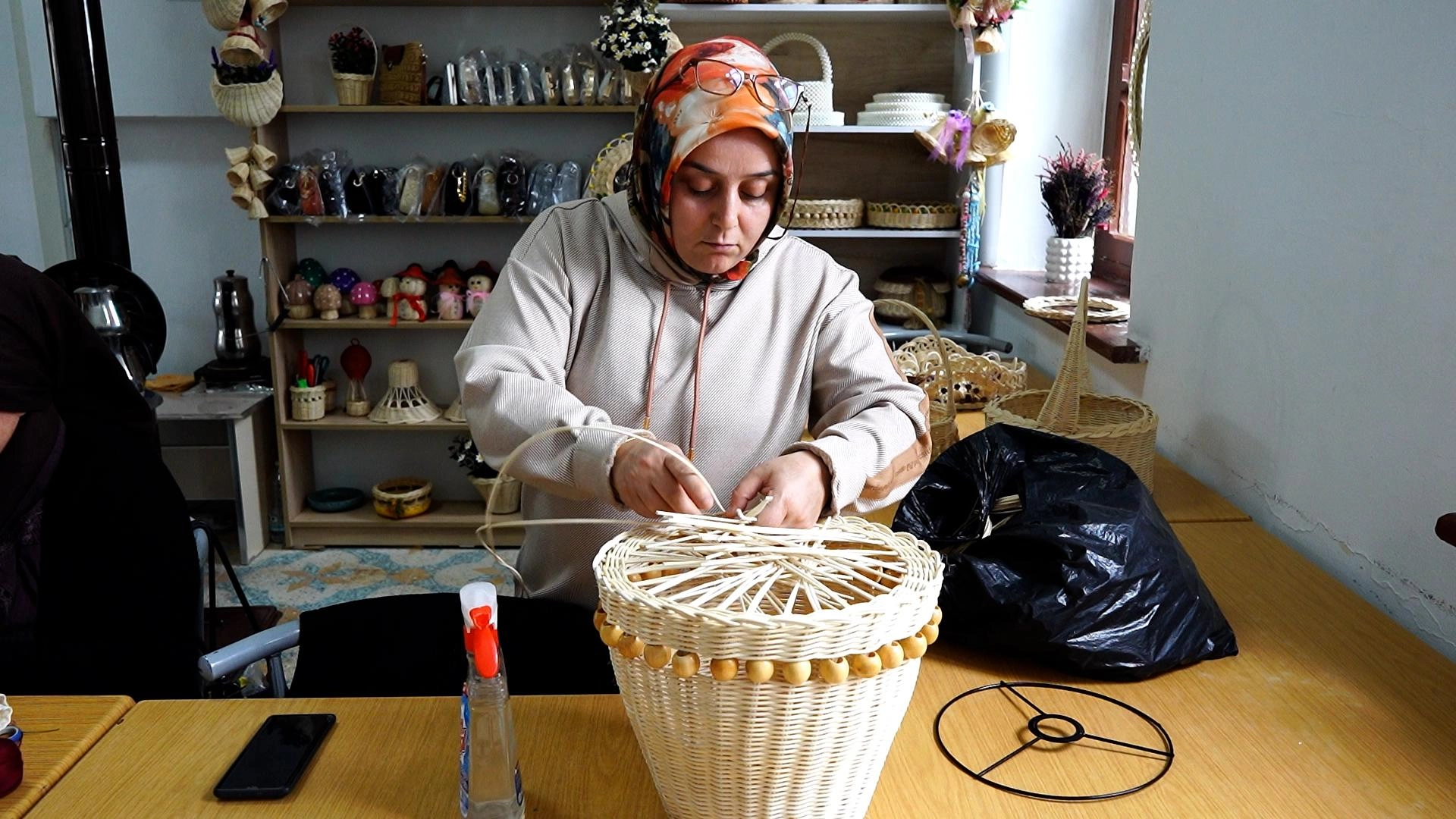 Seramik, halı ve rattan sepet yapma atölyelerinde eğitim verilen merkezde 45 kursiyer bulunuyor. Kadınlar, burada öğrendikleri el sanatlarını üretime dönüştürerek ev ekonomilerine destek oluyor.