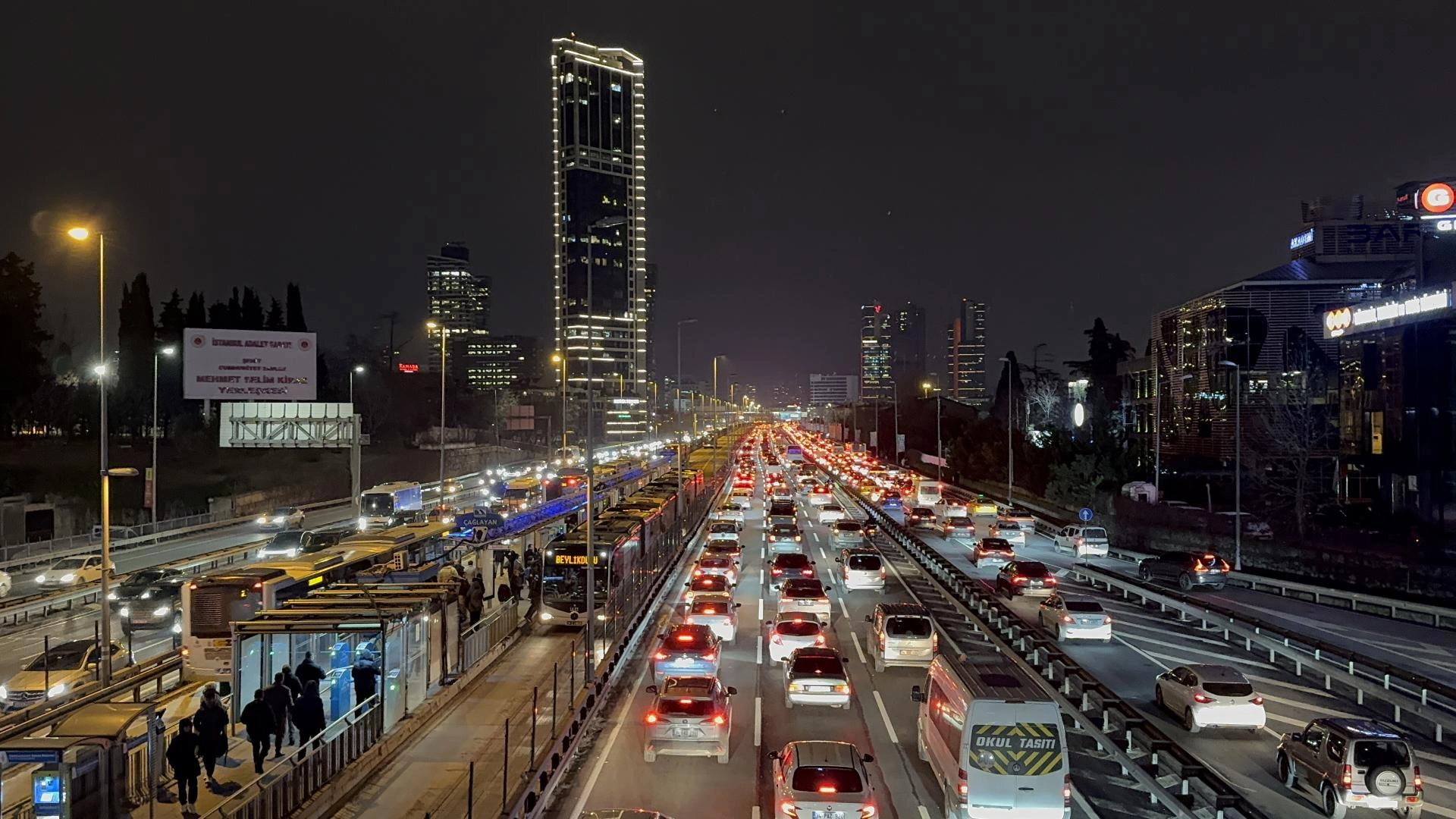 İSTANBUL (AA) - İstanbul'da haftanın üçüncü günü mesai bitiminin ardından akşam saatlerinde ana arter, cadde ve yollardaki trafik yoğunluğu yüzde 85'e ulaştı.