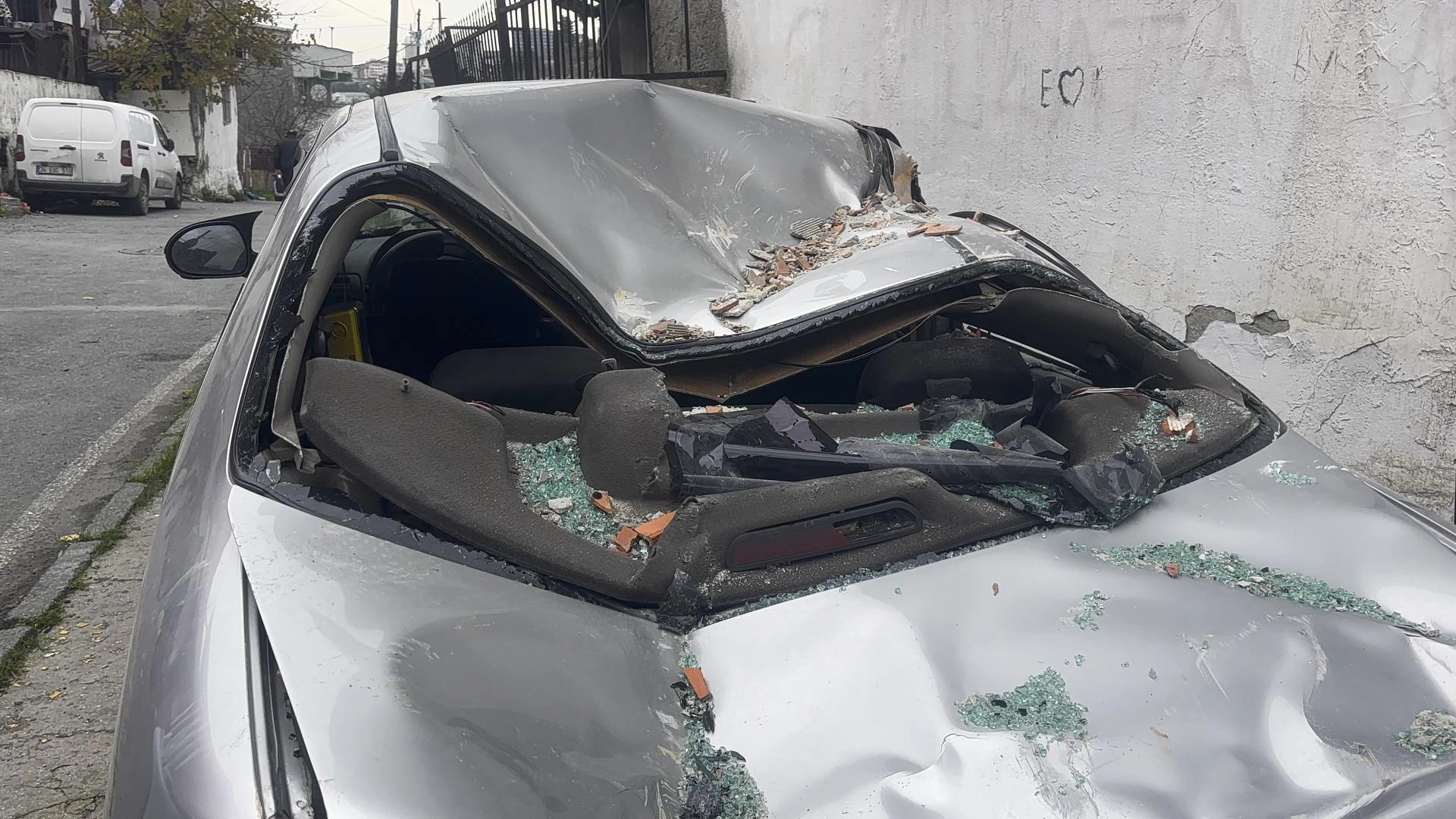Lodos nedeniyle Gaziosmanpaşa Yenidoğan Mahallesi'ndeki 2 katlı binanın çatısı koptu. Çatıdan kopan parçaların bir kısmı, sokakta park halindeki 2 aracın üzerine düştü.