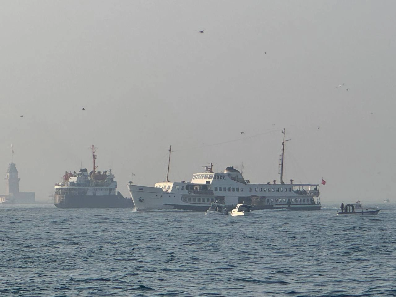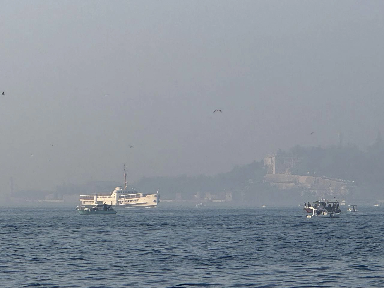 Boğaz hattındaki bazı yüksek binalar ile tarihi yapılar da sis altında kaldı.