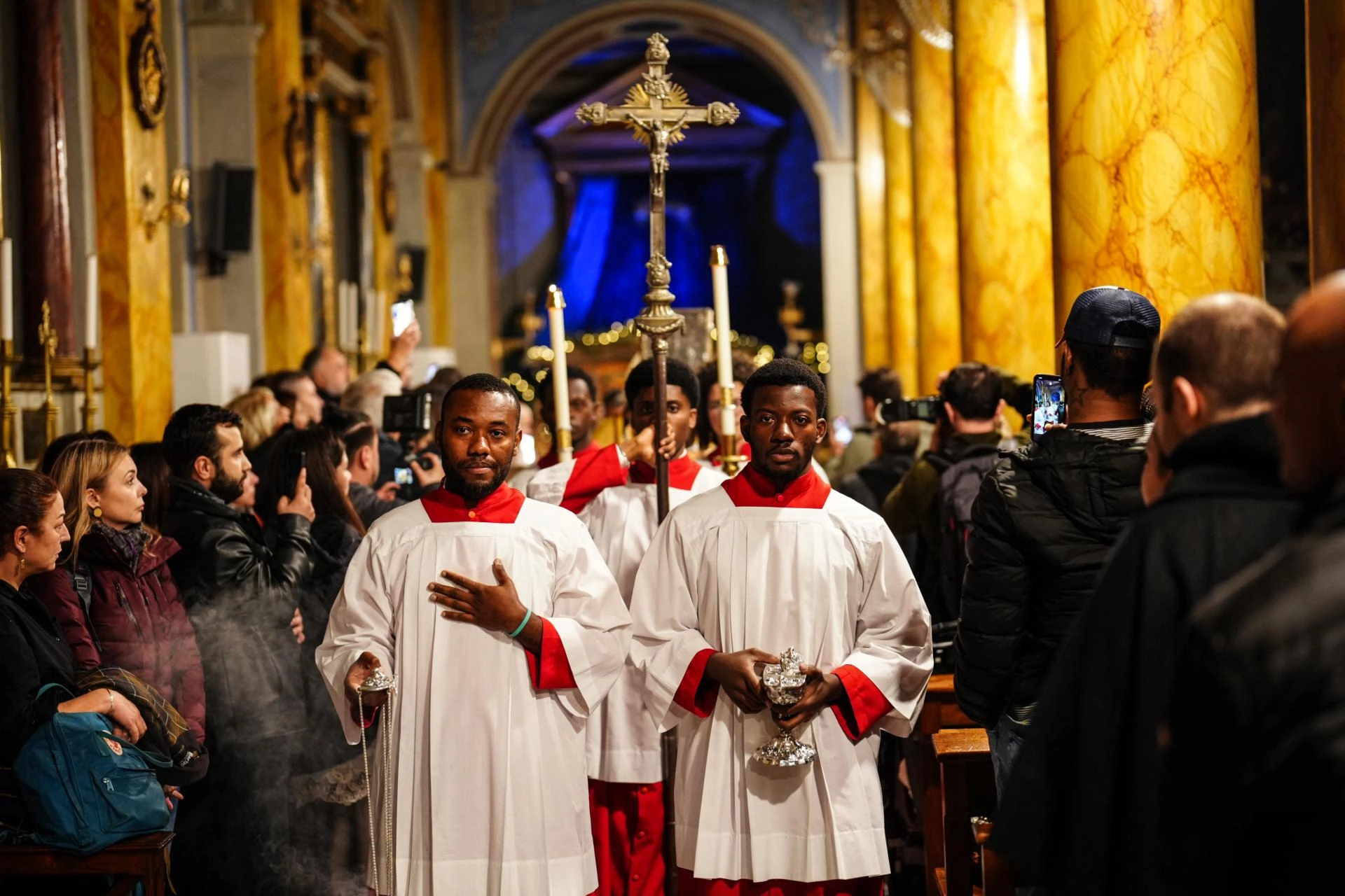Beyoğlu'ndaki St. Antuan Kilisesi'nde yapılan ayinde ilahiler söylendi, İncil'den bölümler okundu.